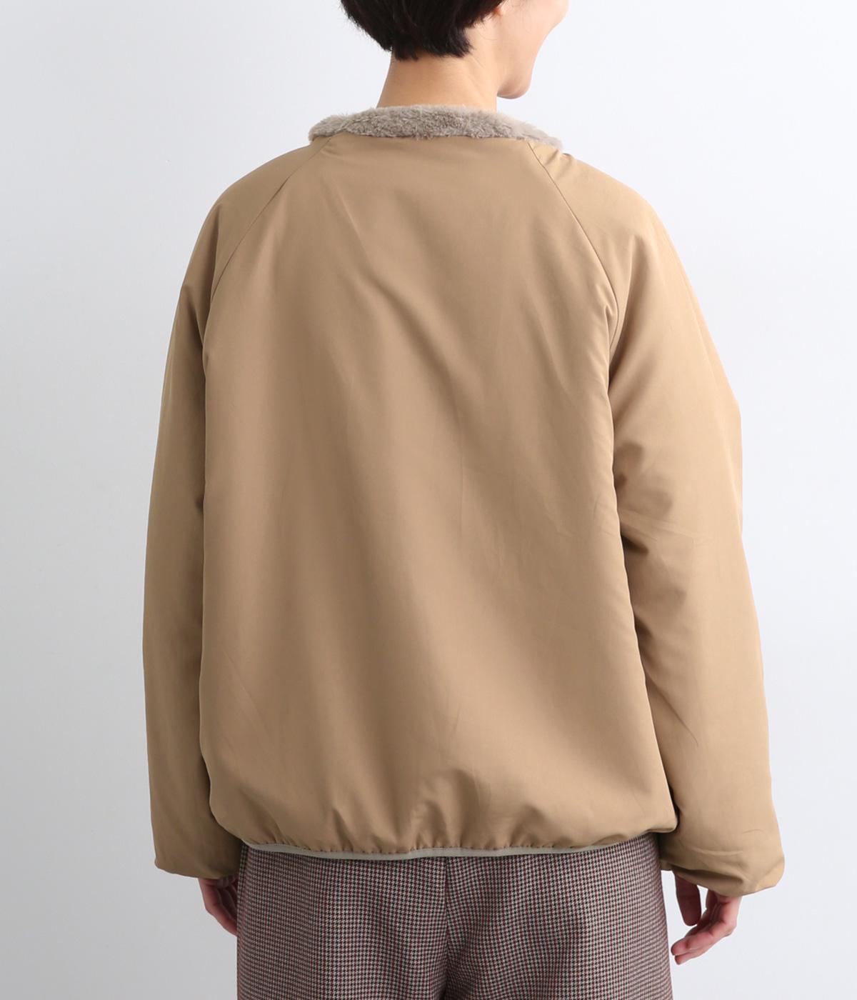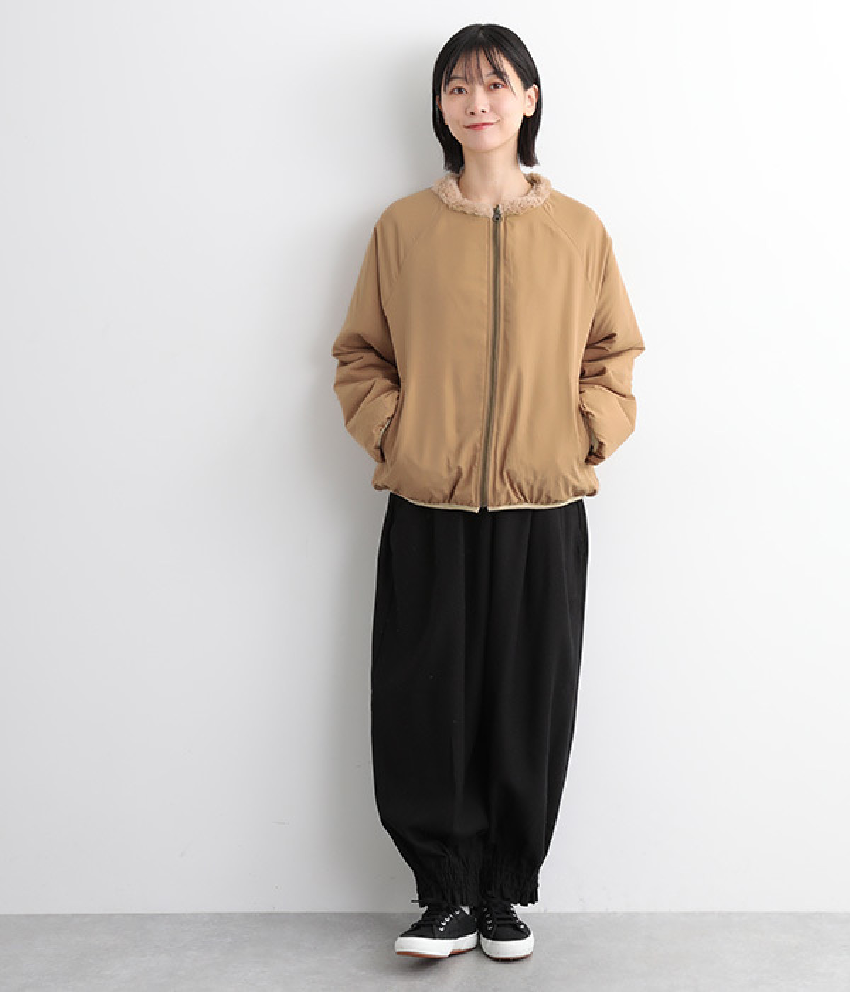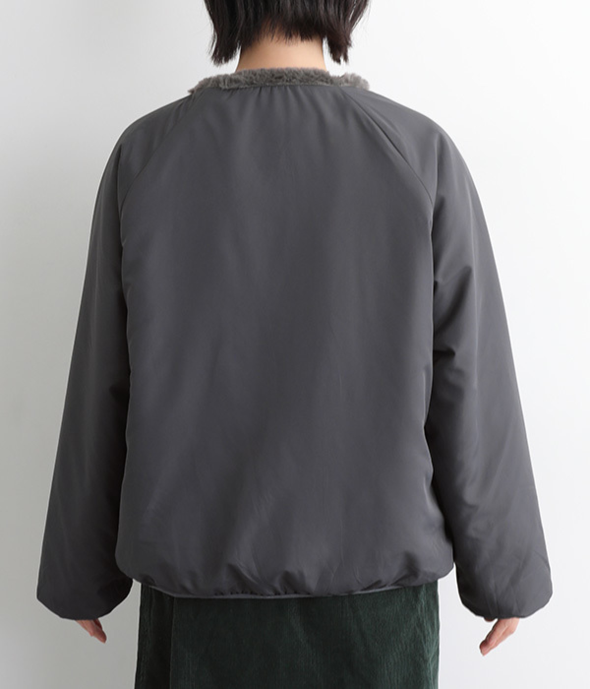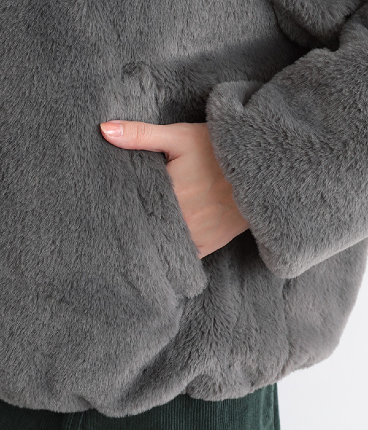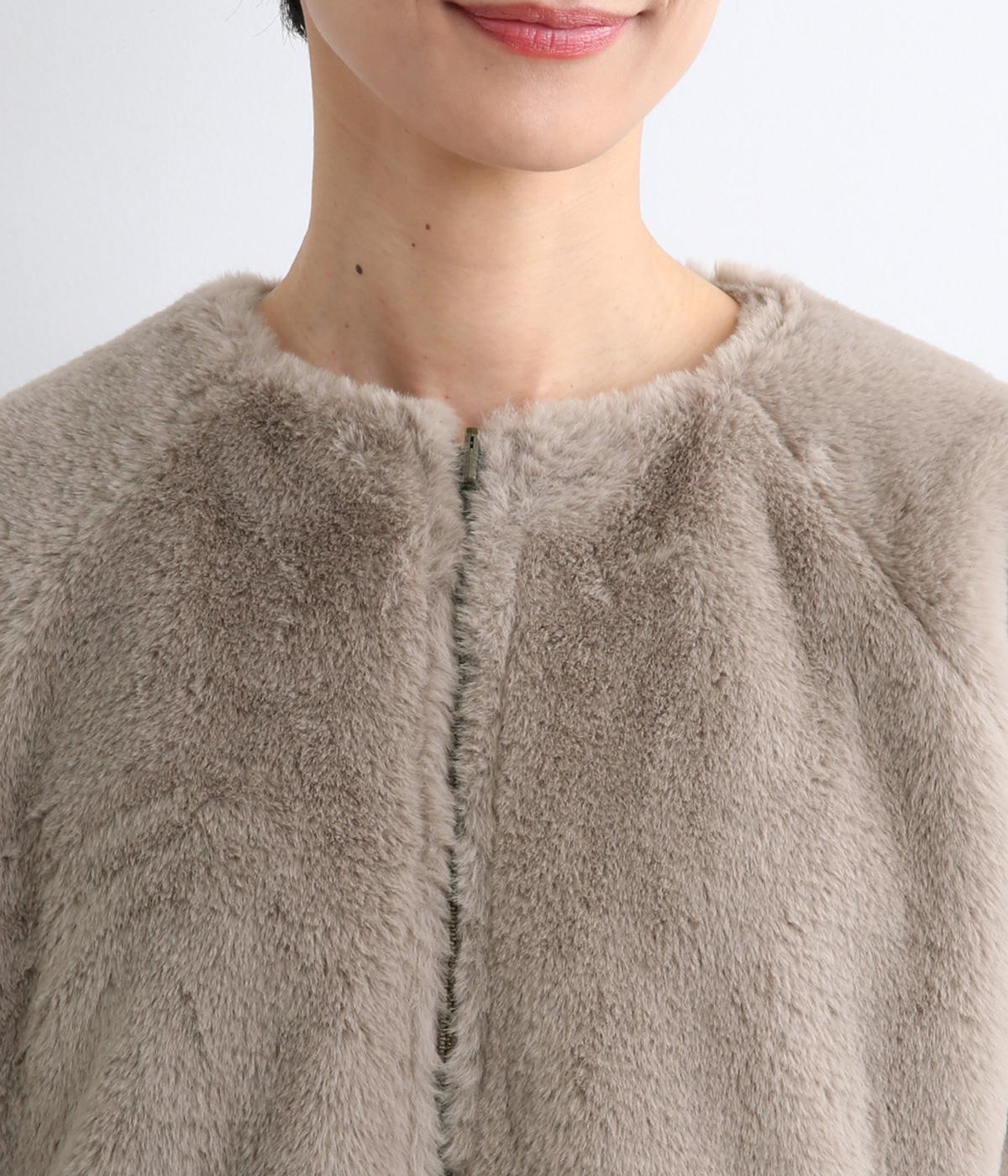 あたたかみのあるファー素材と、大人らしいフラットな生地を気分に合わせてたのしめるリバーシブル仕様のブルゾン。さらりとした生地面を表にして着用するとネックからファーが覗きます。どちらの面にも便利なポケットをつけました。