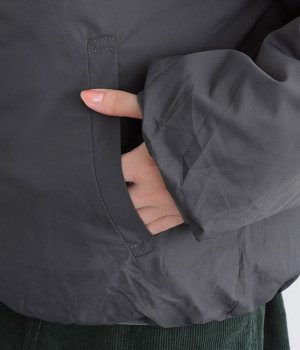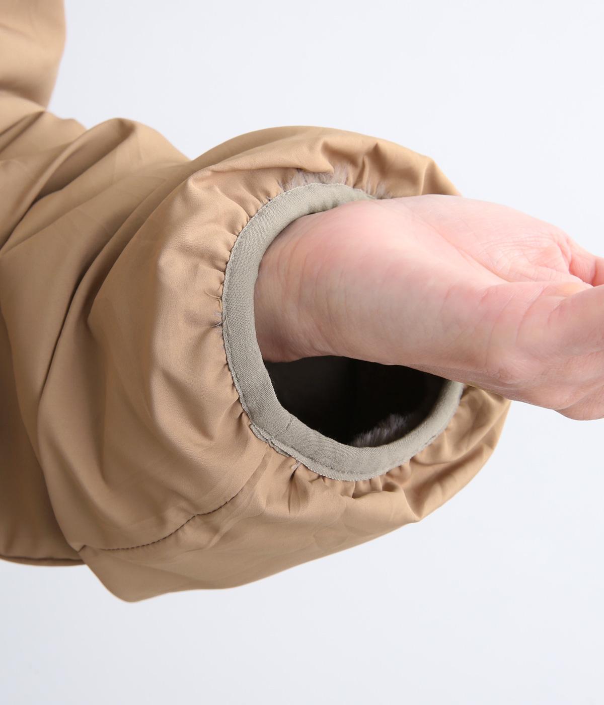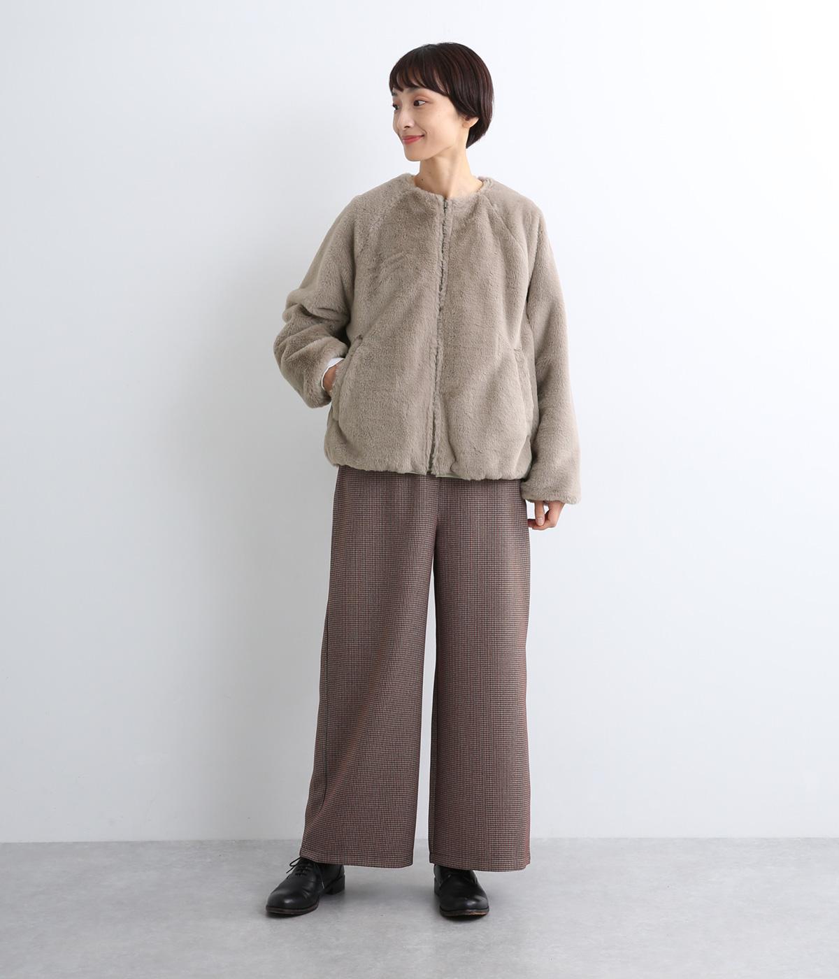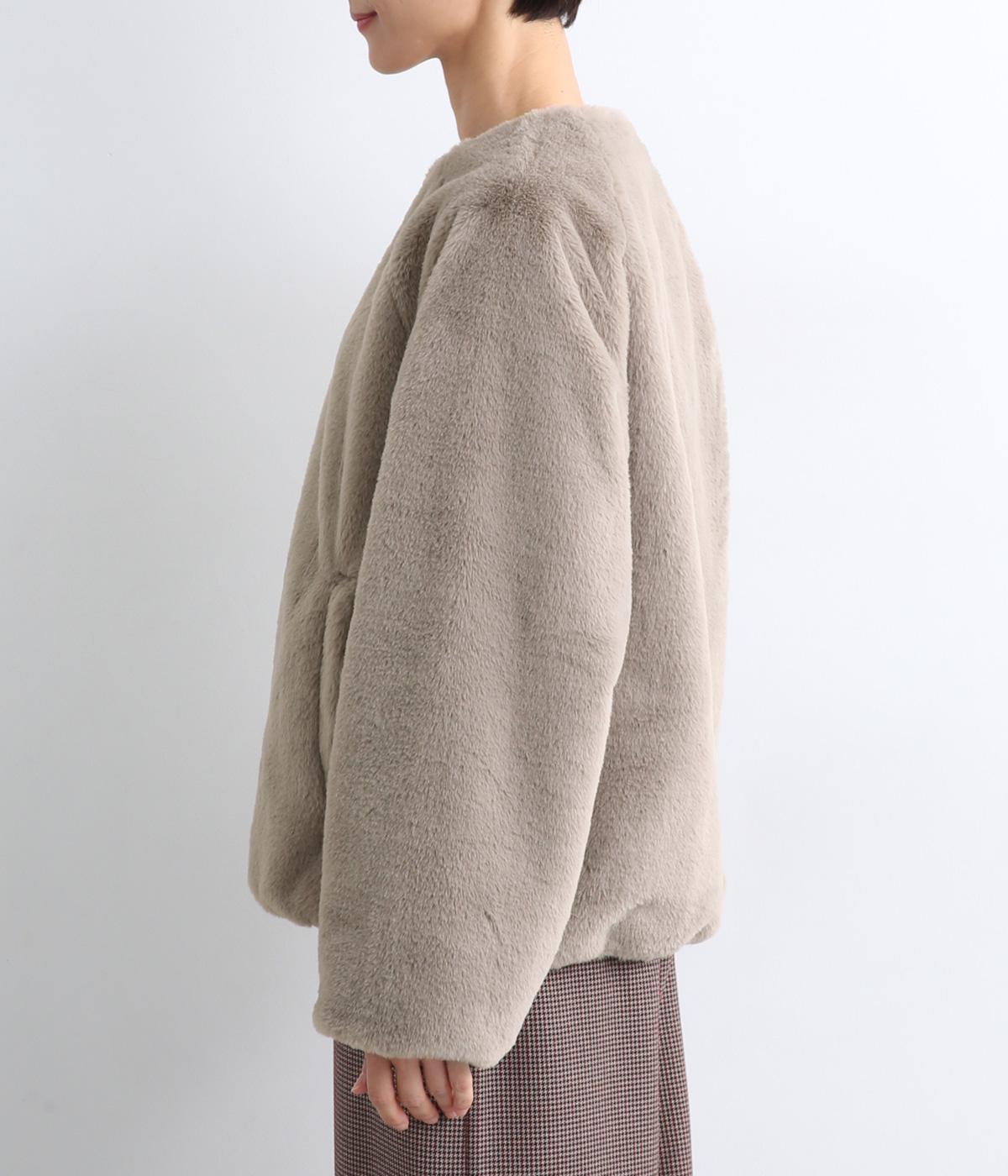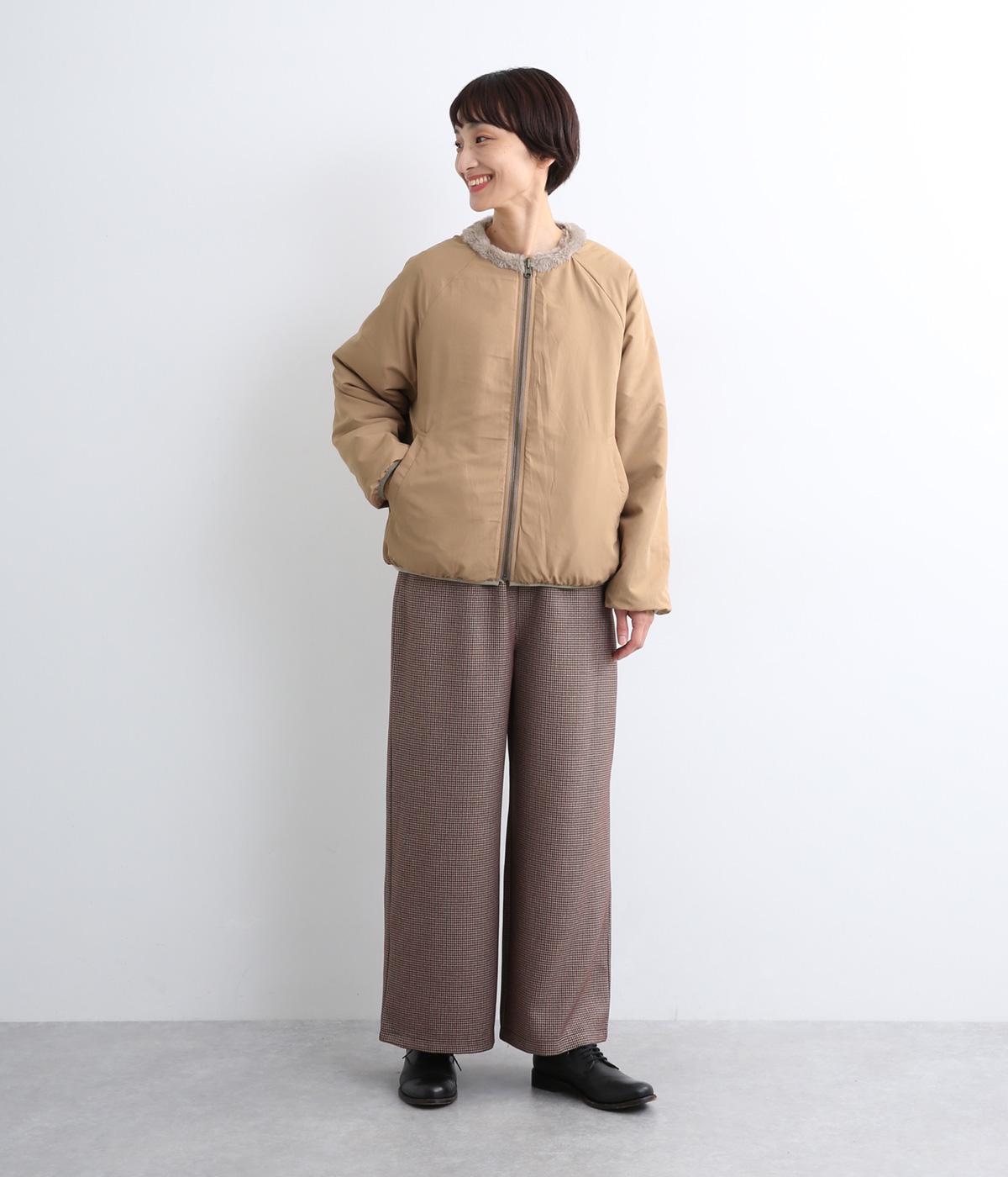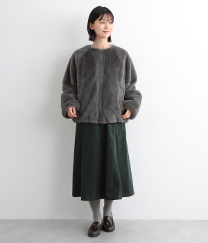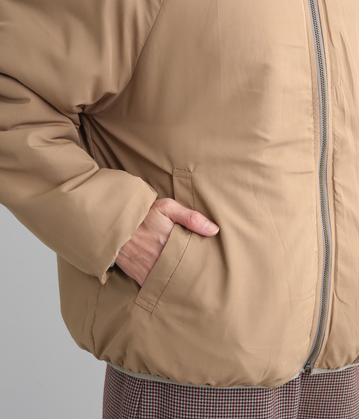 あたたかみのあるファー素材と、大人らしいフラットな生地を気分に合わせてたのしめるリバーシブル仕様のブルゾン。さらりとした生地面を表にして着用するとネックからファーが覗きます。どちらの面にも便利なポケットをつけました。