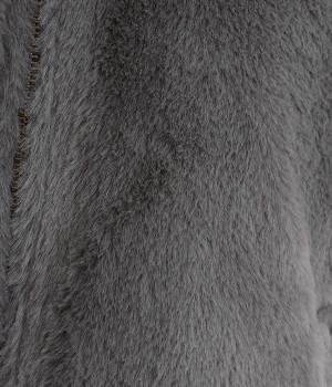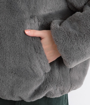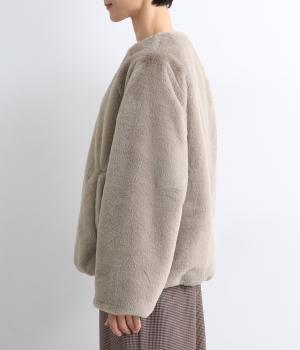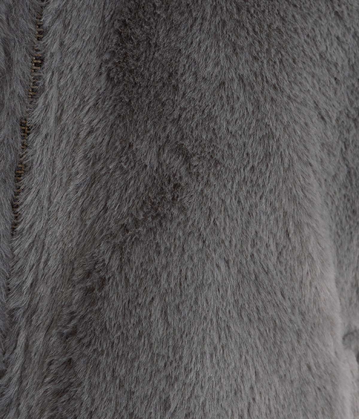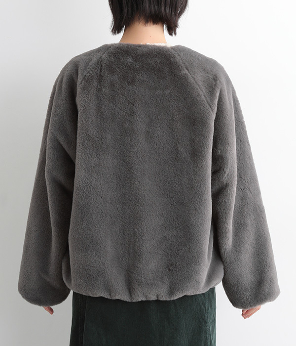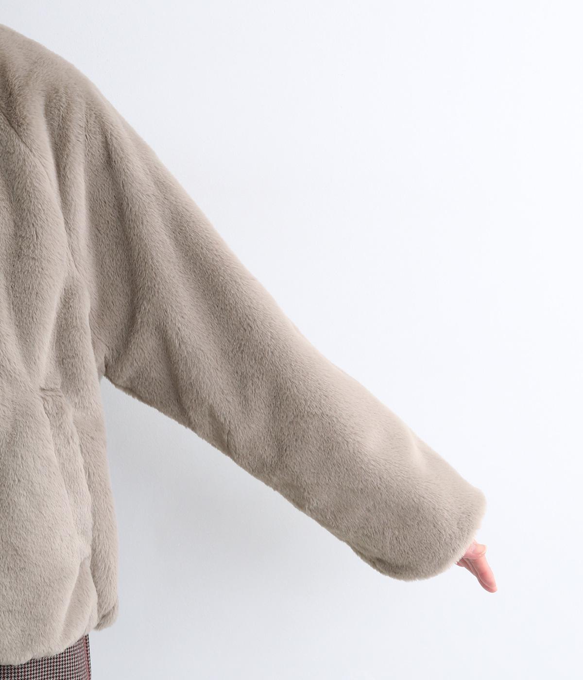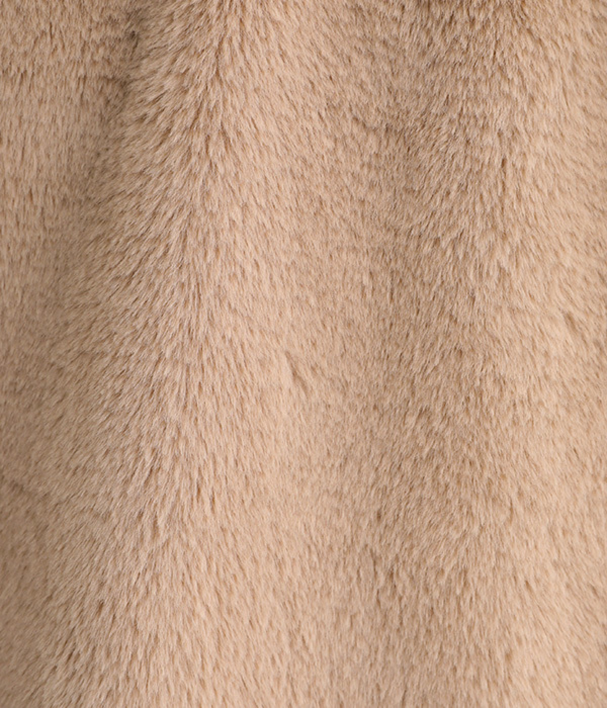 つい表面を撫でたくなるようなフワフワとしたフェイクファー素材。内側はさらりとしたポリエステル生地を使用したリバーシブル仕様です。