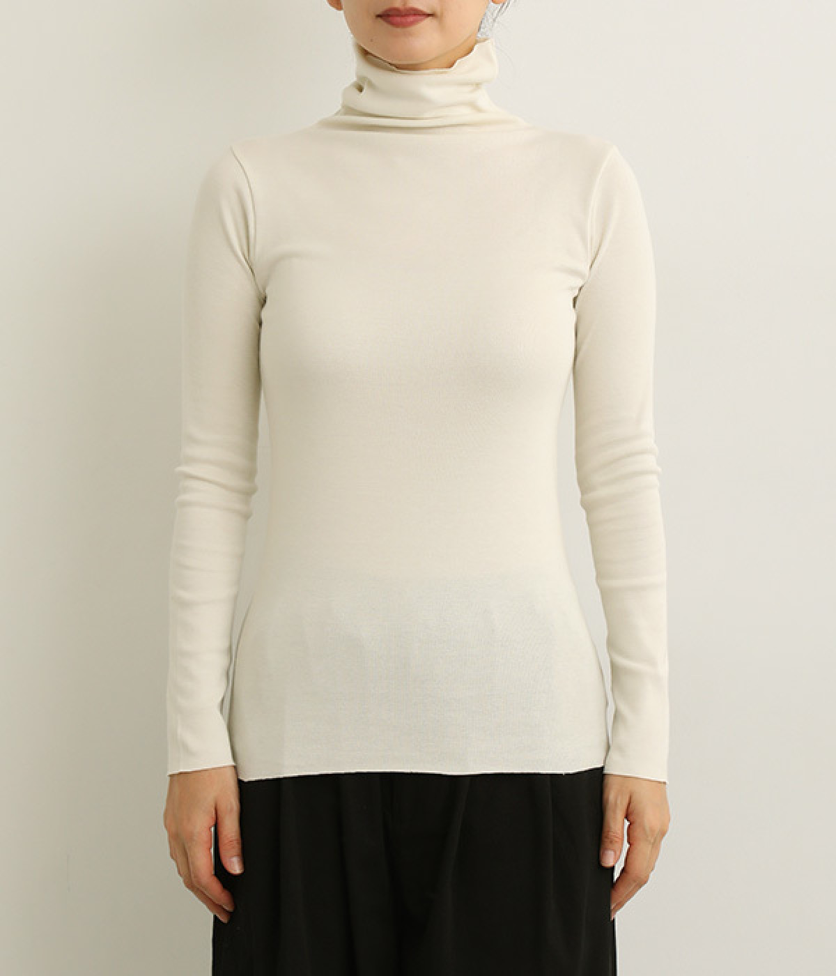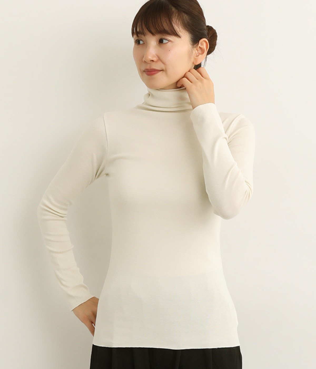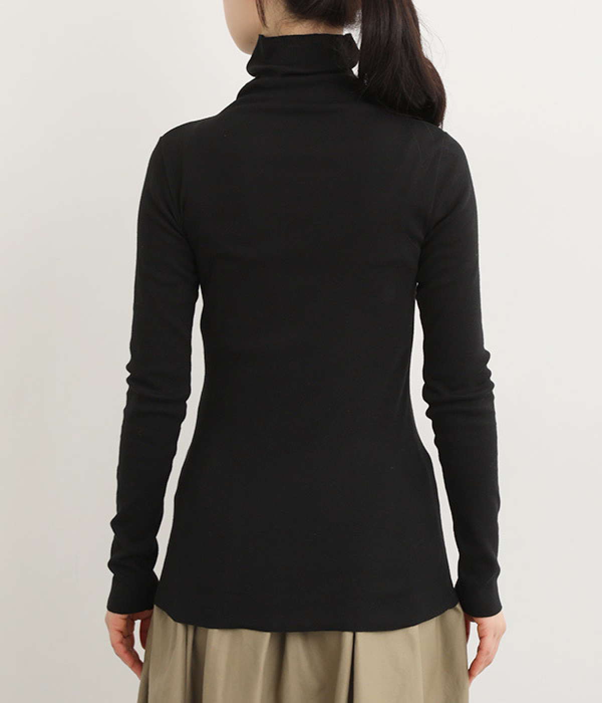 首元に切り替えのない、すっきりとした仕立てのボトルネック