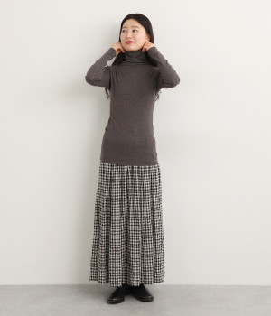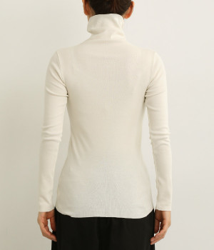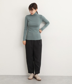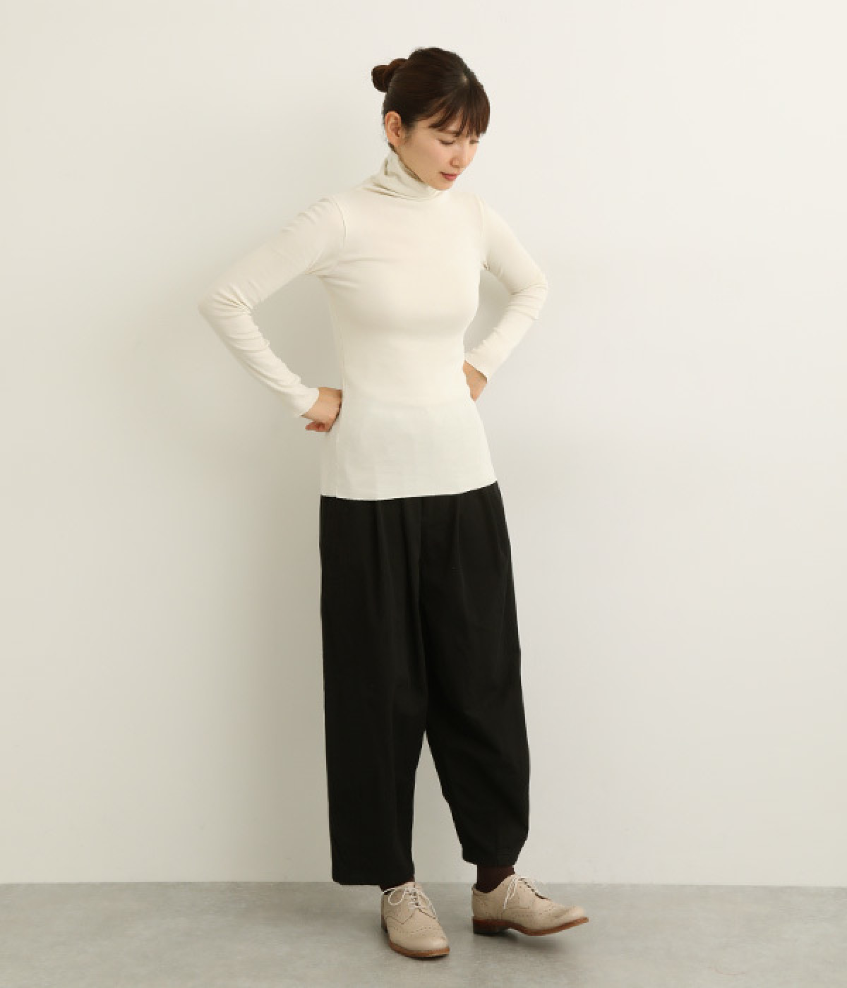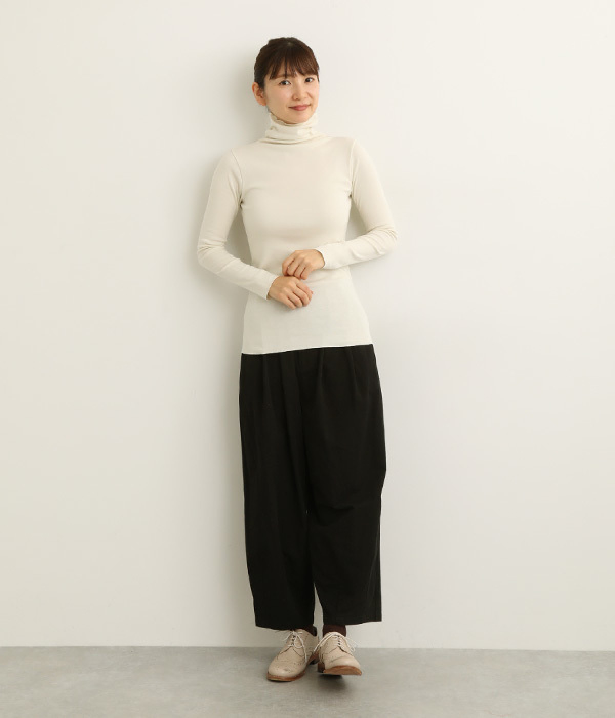 首元に切り替えのない、すっきりとした仕立てのボトルネック