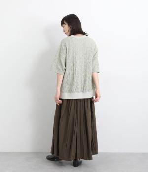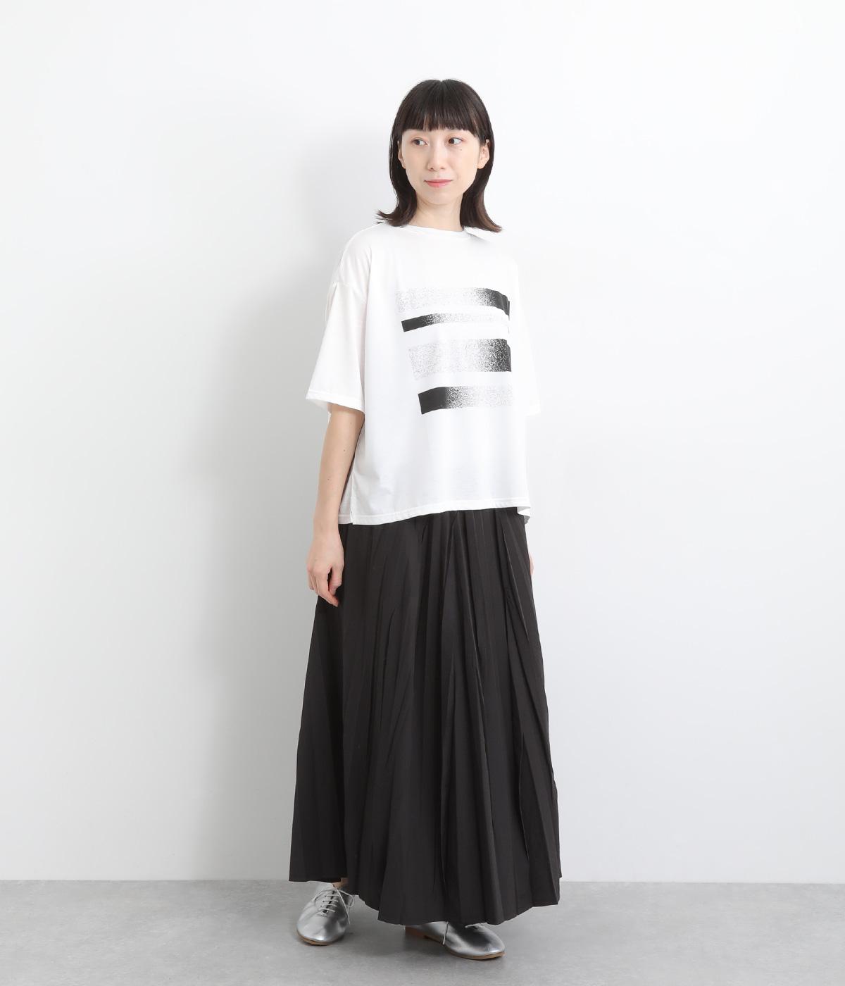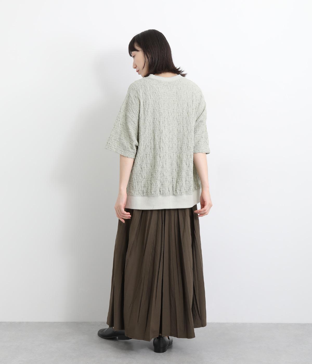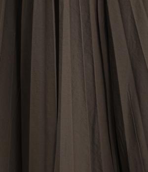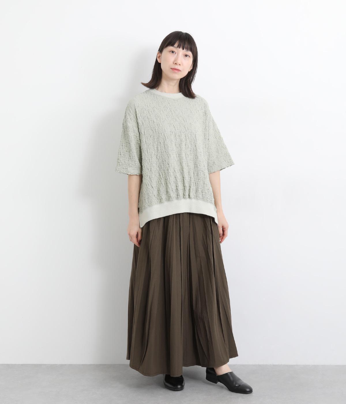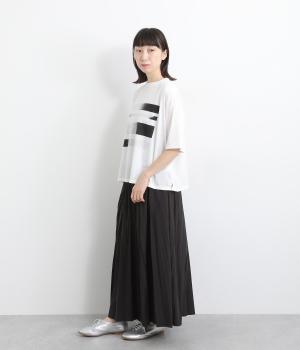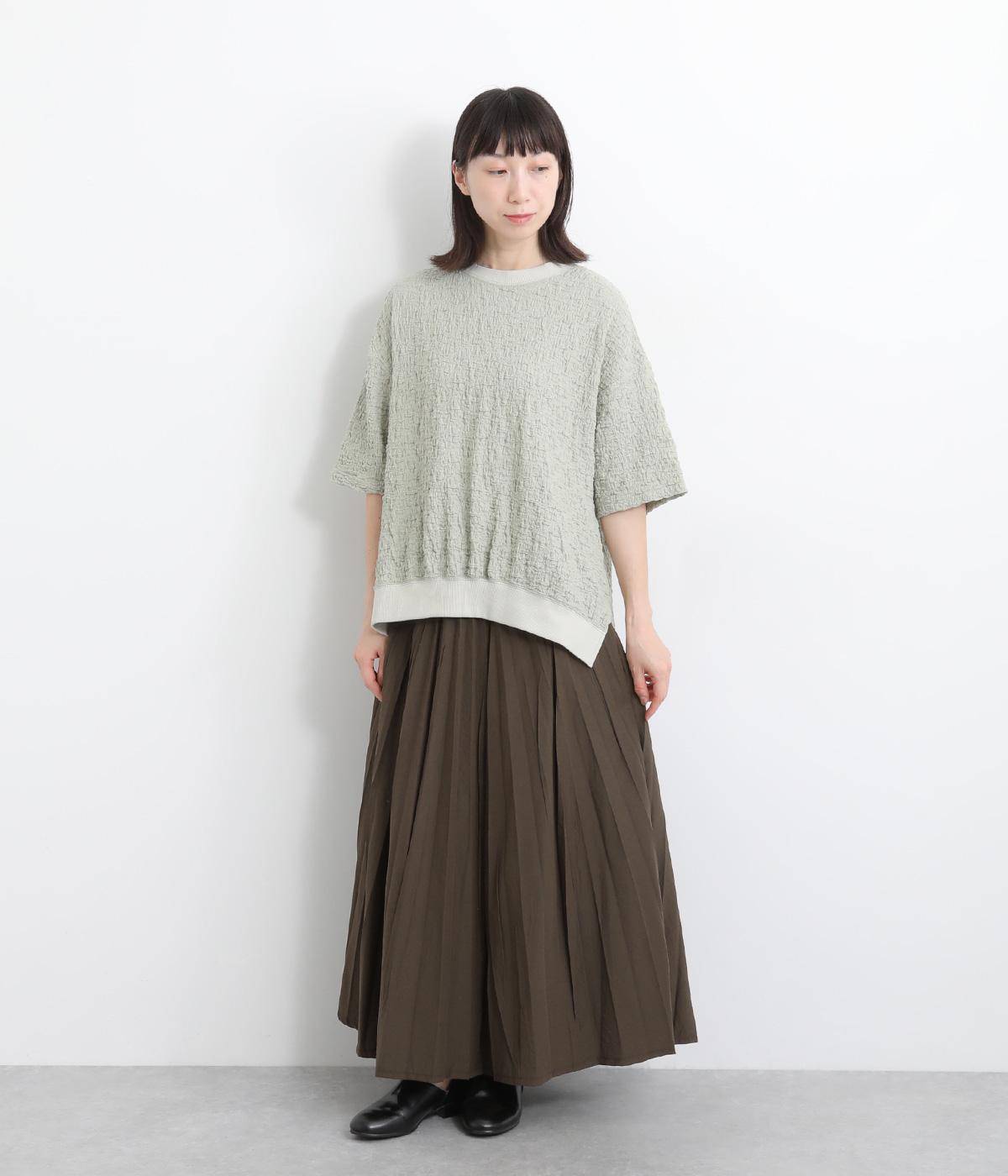 タックをランダムに縫ってからプリーツをかけることで、動きがよりでて存在感を増しています。ウエストはすっきりまとめているので、トップスインでタックディテールを強調するのもおすすめ。サイドファスナーで脱ぎはきしやすく、後ろはゴムを入れてフィット感も◎。