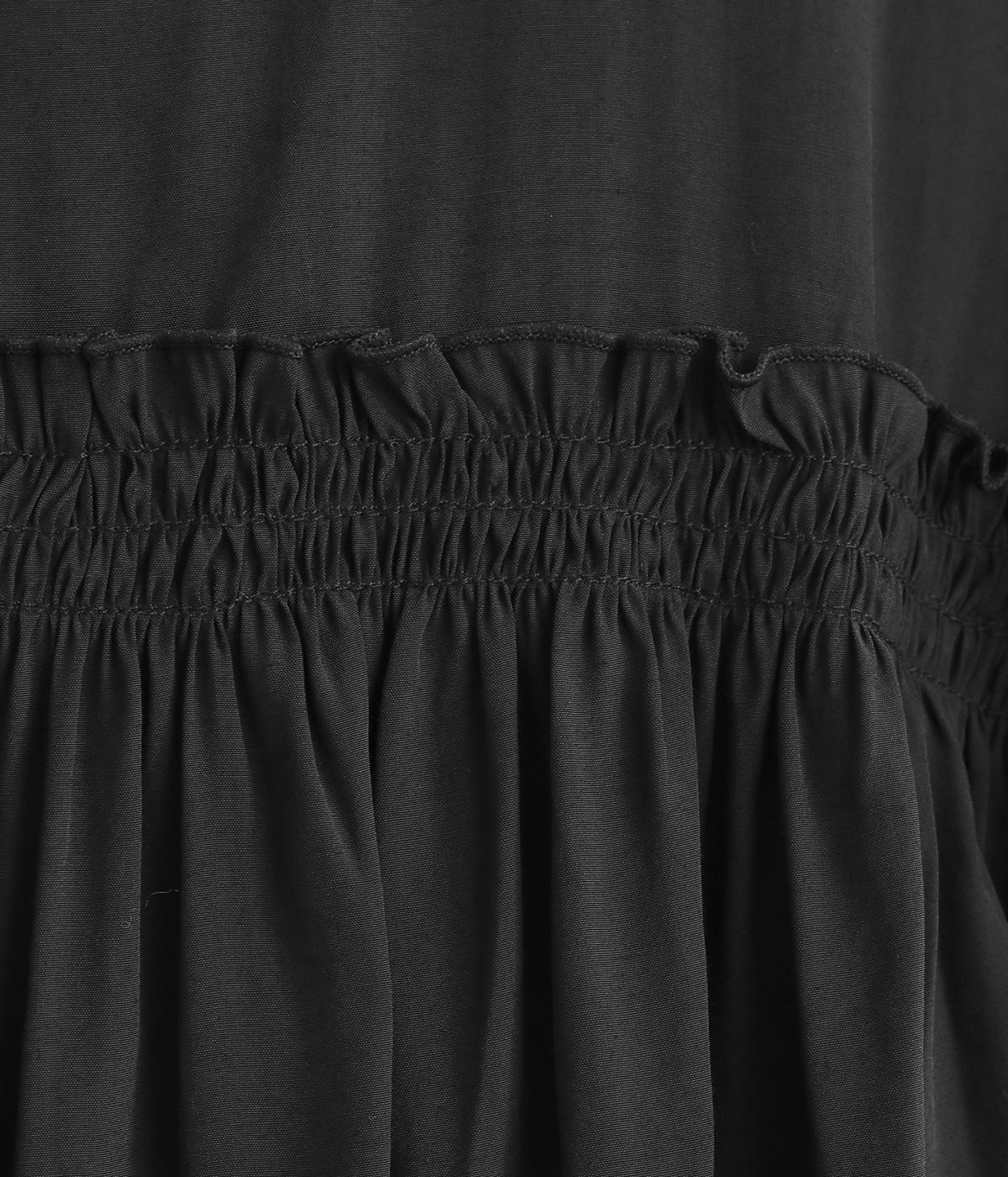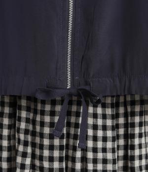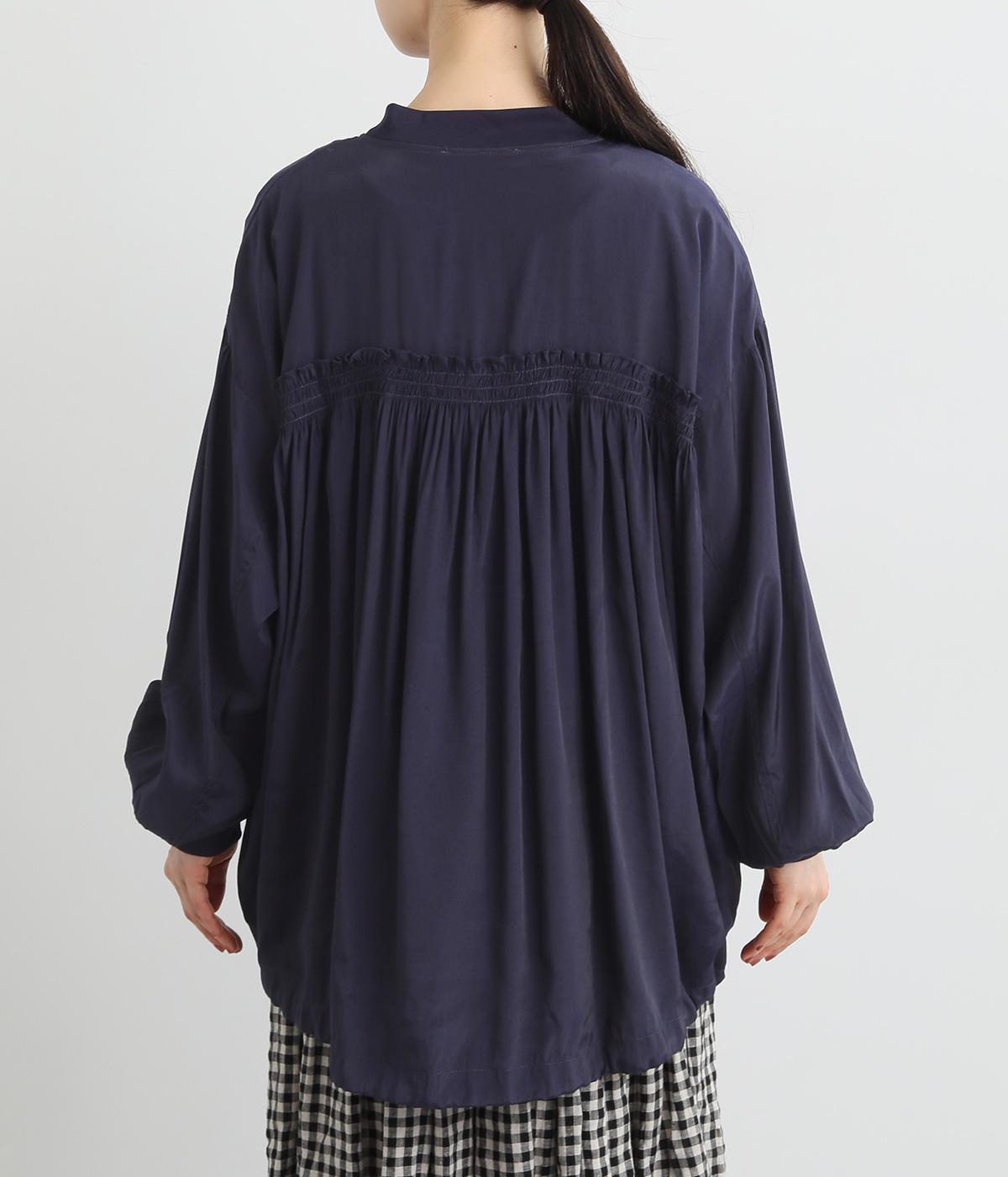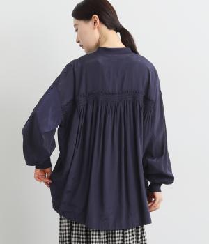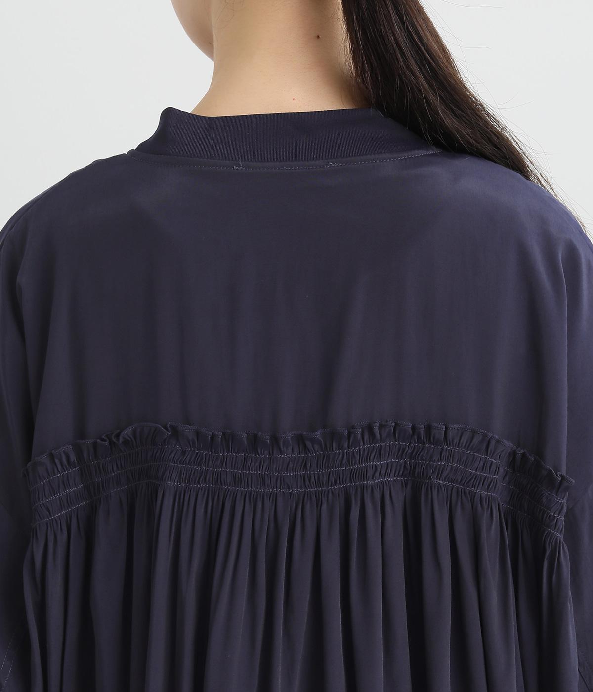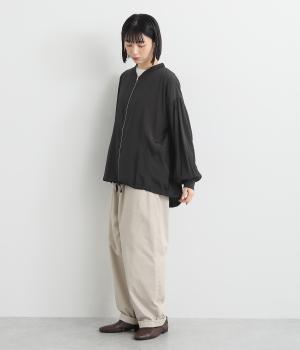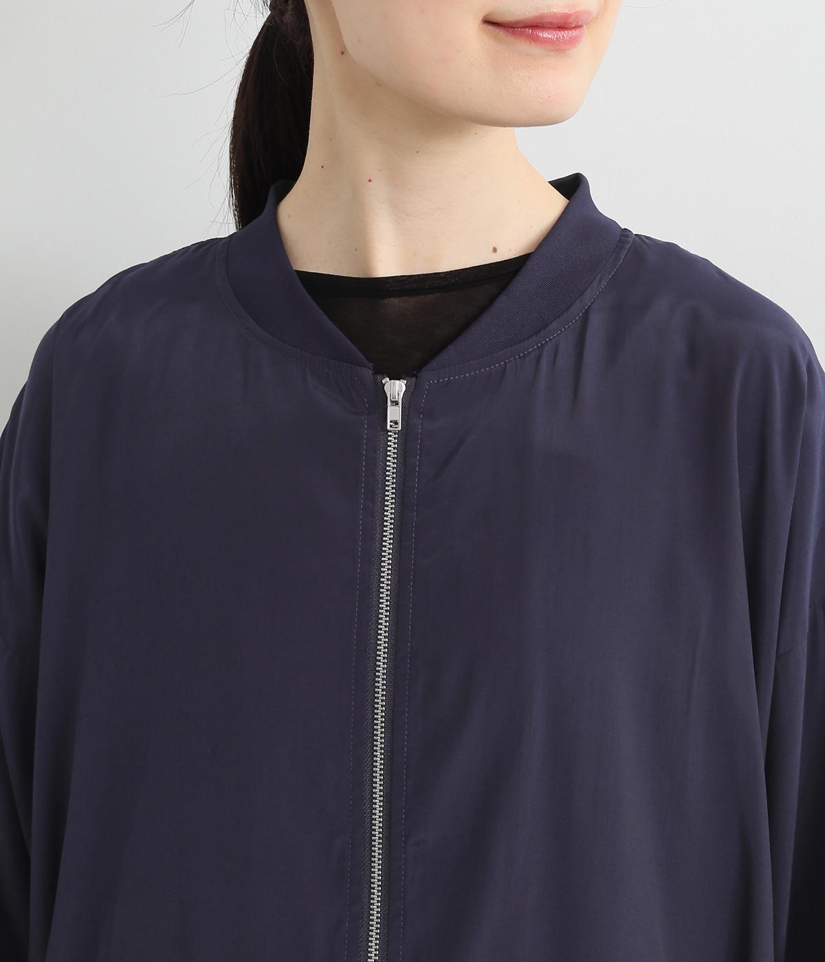 バックスタイルにたっぷりと入れたギャザーとなめらかな生地の質感が、カジュアルな中にフェミニンなムードを運ぶブルゾン。前はシンプルなデザインで、さまざまな装いに合わせやすいのが◎です。裾に通した紐を絞ればシルエットや丈感を調整できます。