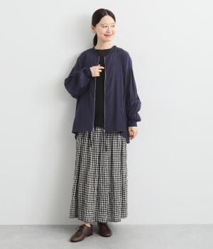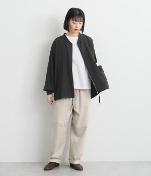 着こなしを上品なムードに導くシルクのようななめらかな質感と光沢感が魅力のレーヨンポリエステル生地。薄手で軽いので、寒暖差が激しい時期にも重宝します。