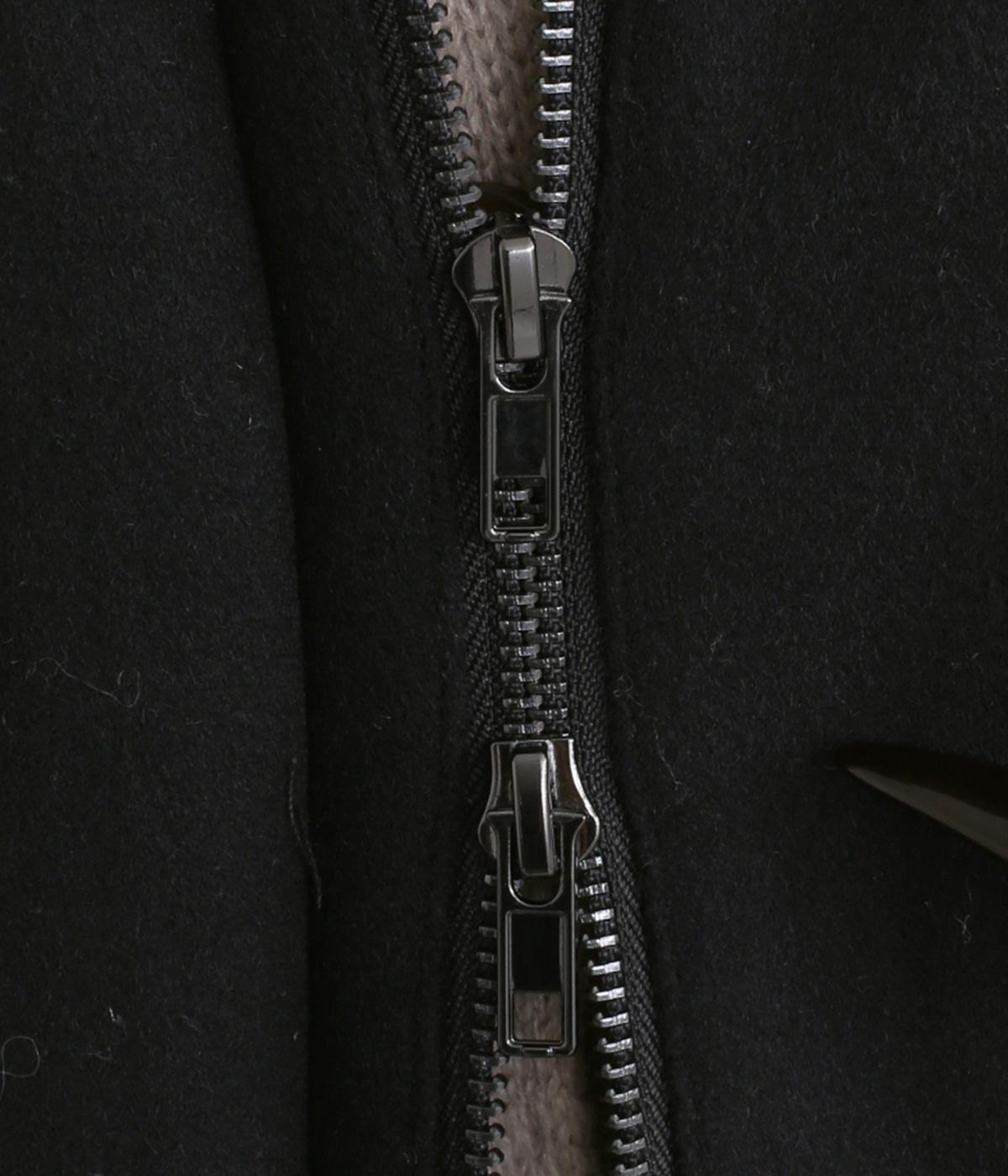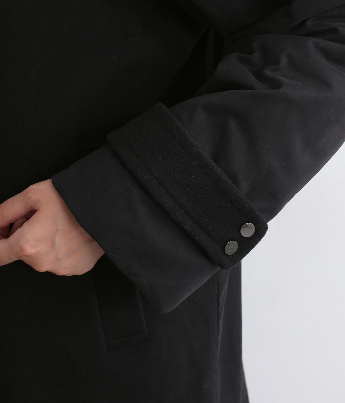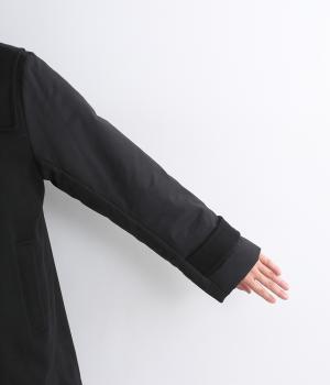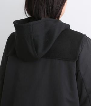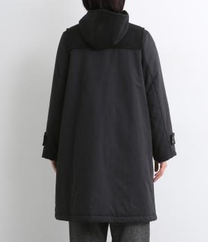 ウールと少し起毛がかったポリエステル地を切り替えた異素材ミックス。少し起毛がかかった生地の切替部分には、薄手の中綿を入れてあたたかさをアップしています。