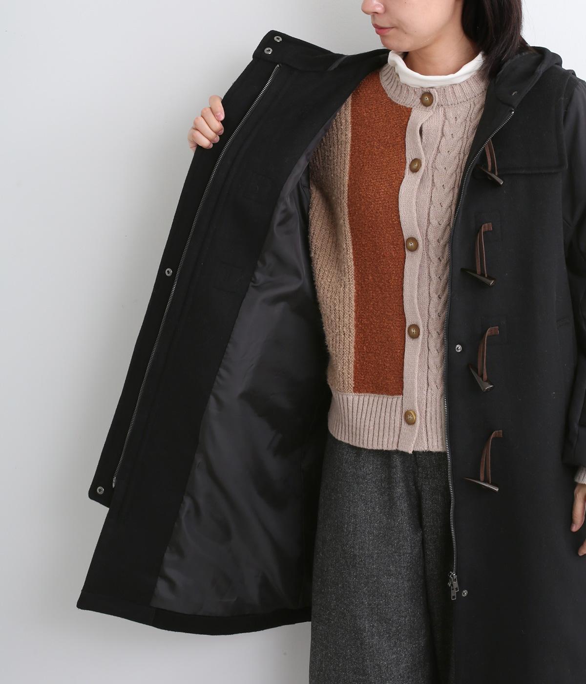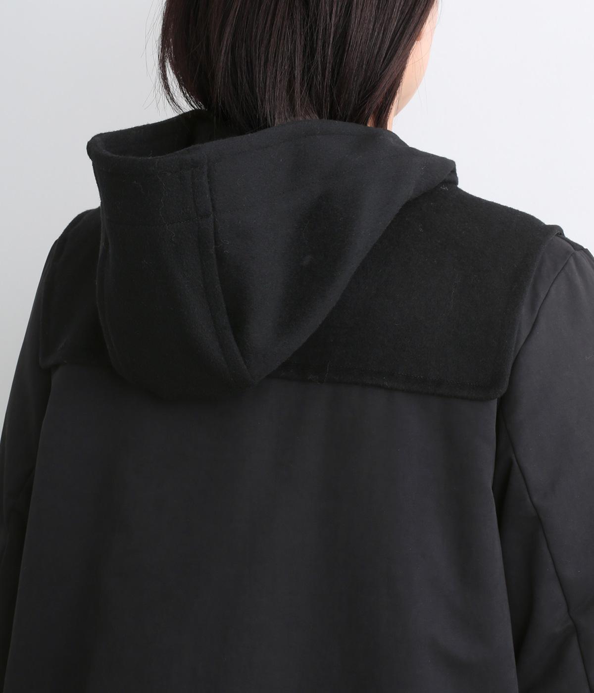 別地を切り替えることで、デザイン性とオリジナリティをプラスしたダッフルコートです。シルエットはベーシックながらカジュアル要素があるので、幅広いスタイルにマッチ。すっきりとしたミドル丈で足元の着こなしも楽しめます。