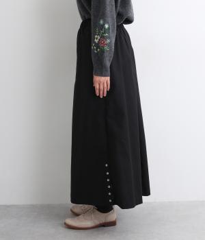 スカート見えするボリューミーなキュロットです。ウエストは総ゴム&内ひもつきでフィット感を調節できます。サイドのボタンを開けるとスリット風になり、抜け感を演出。足首が少し見える丈感で足もとの合わせも楽しめます。