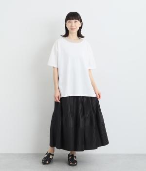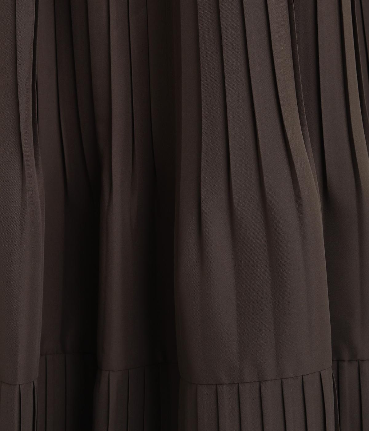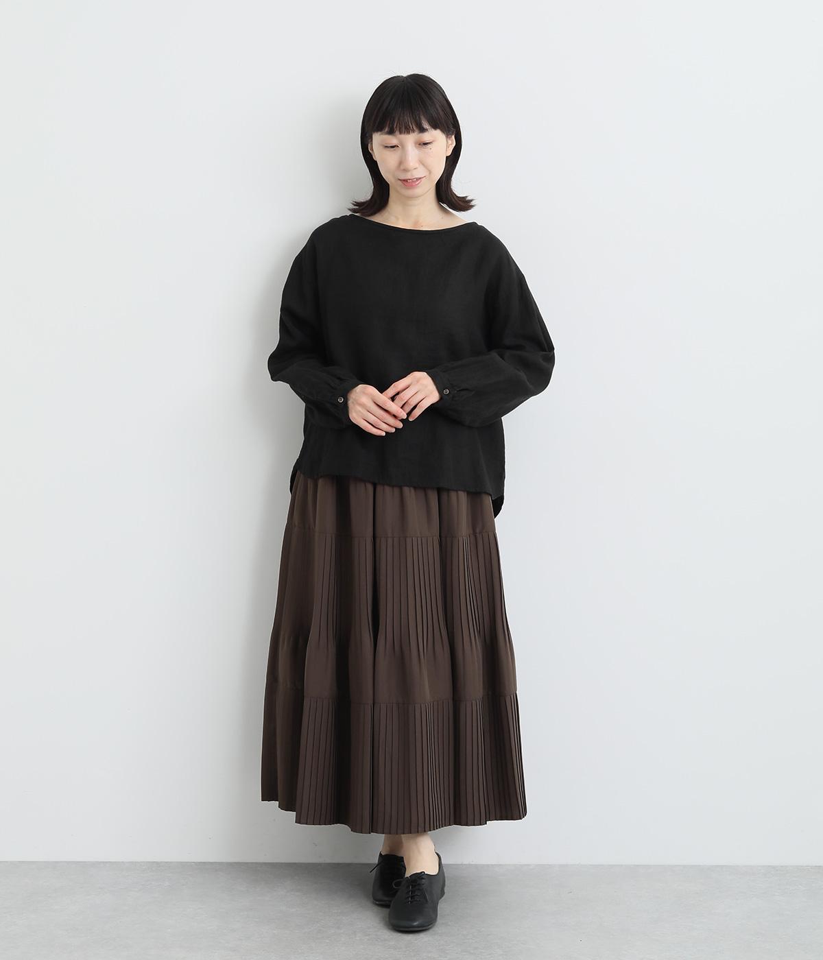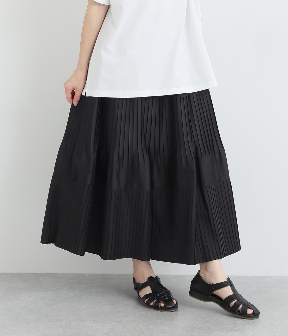 途中から消えるようにかけたプリーツを3段重ね、独特のふんわり感を出したティアードスカートです。落ち着いたカラー展開と上品な素材感で、デイリーからきれいめにも着ていただけます。ウエスト総ゴム、内ひもつきではき心地も快適です。