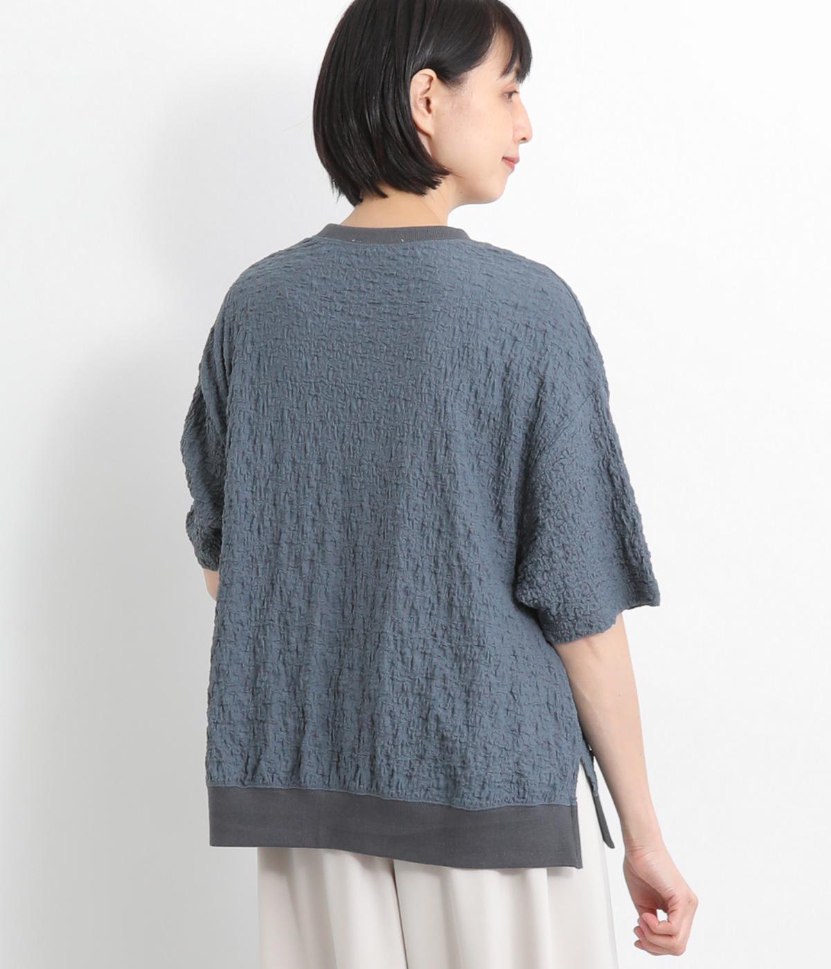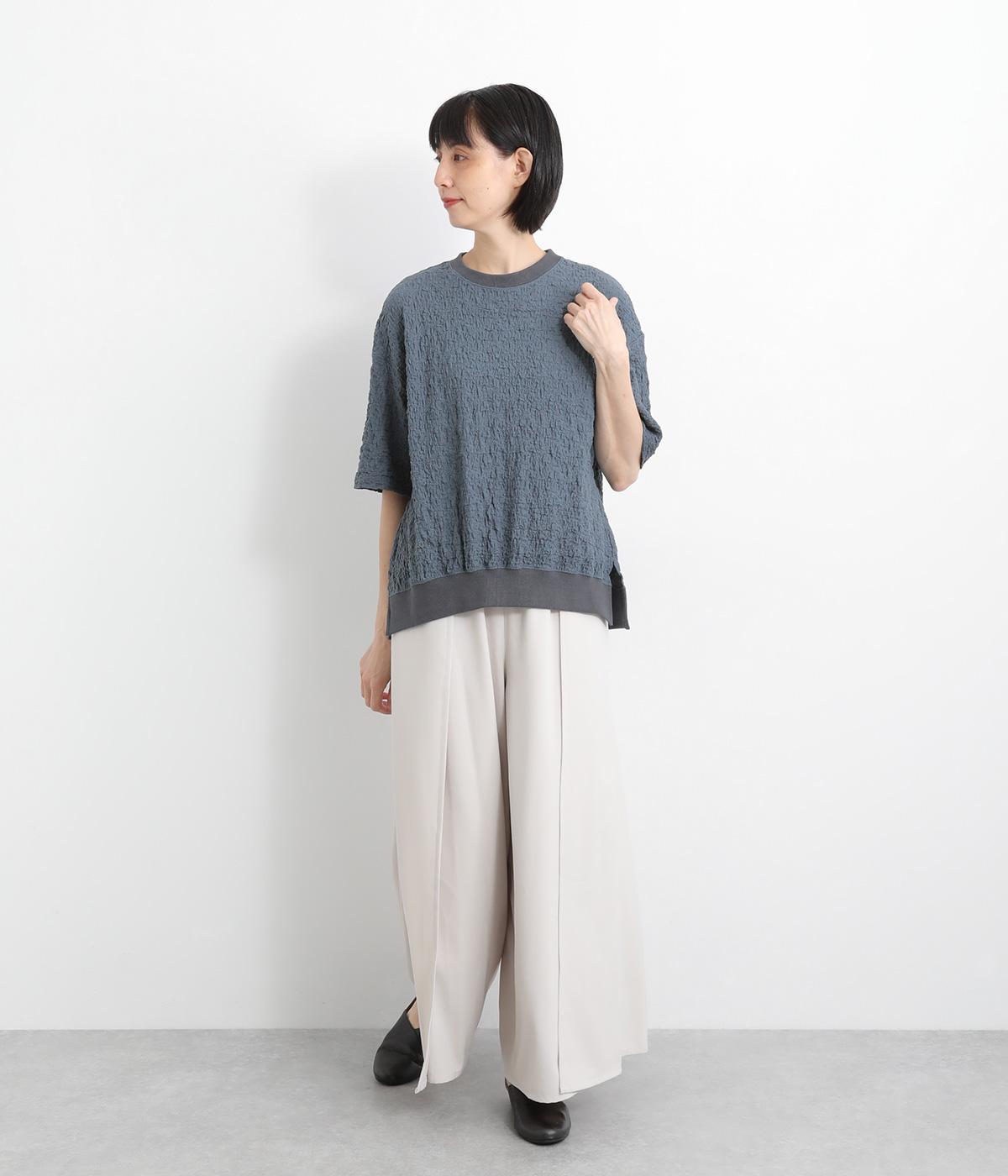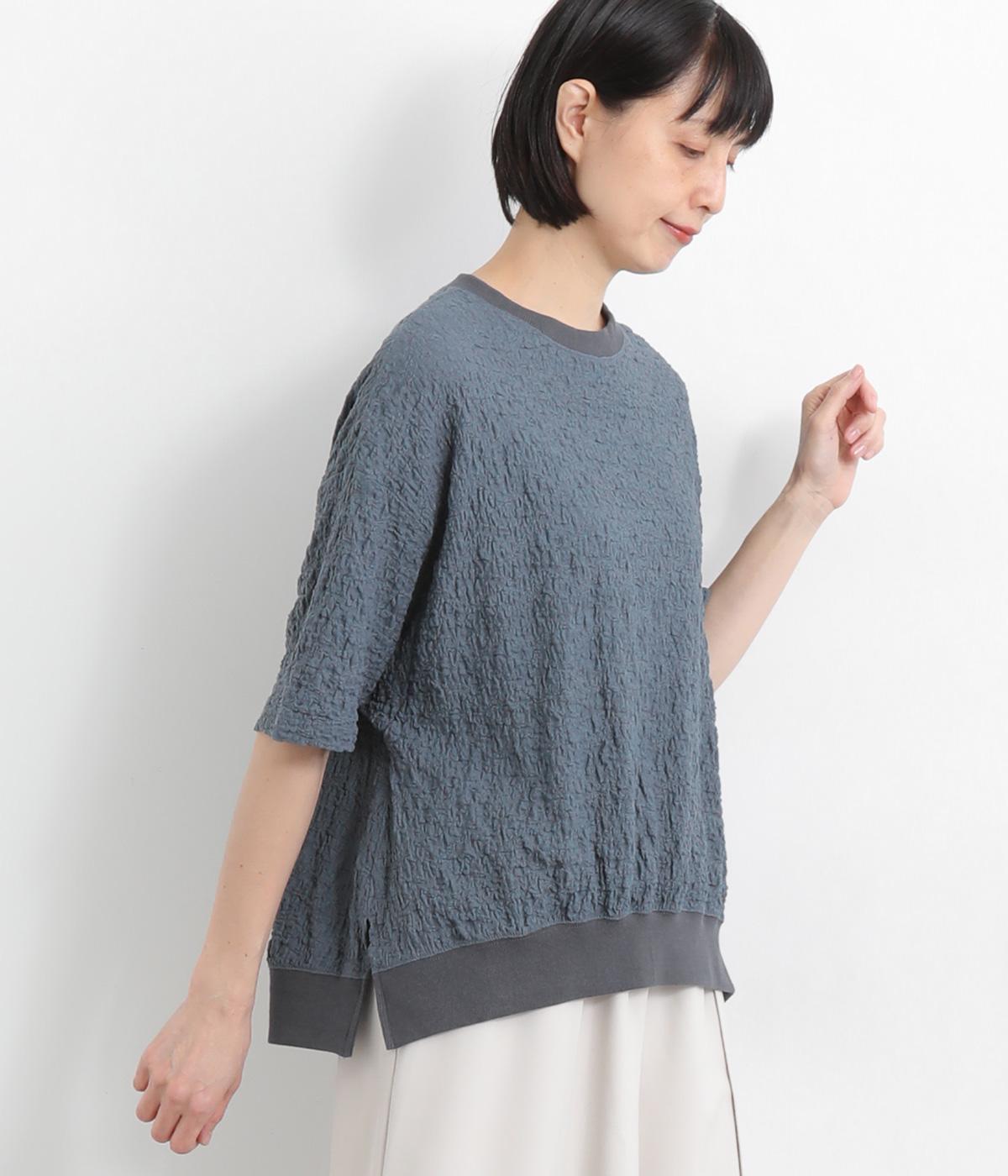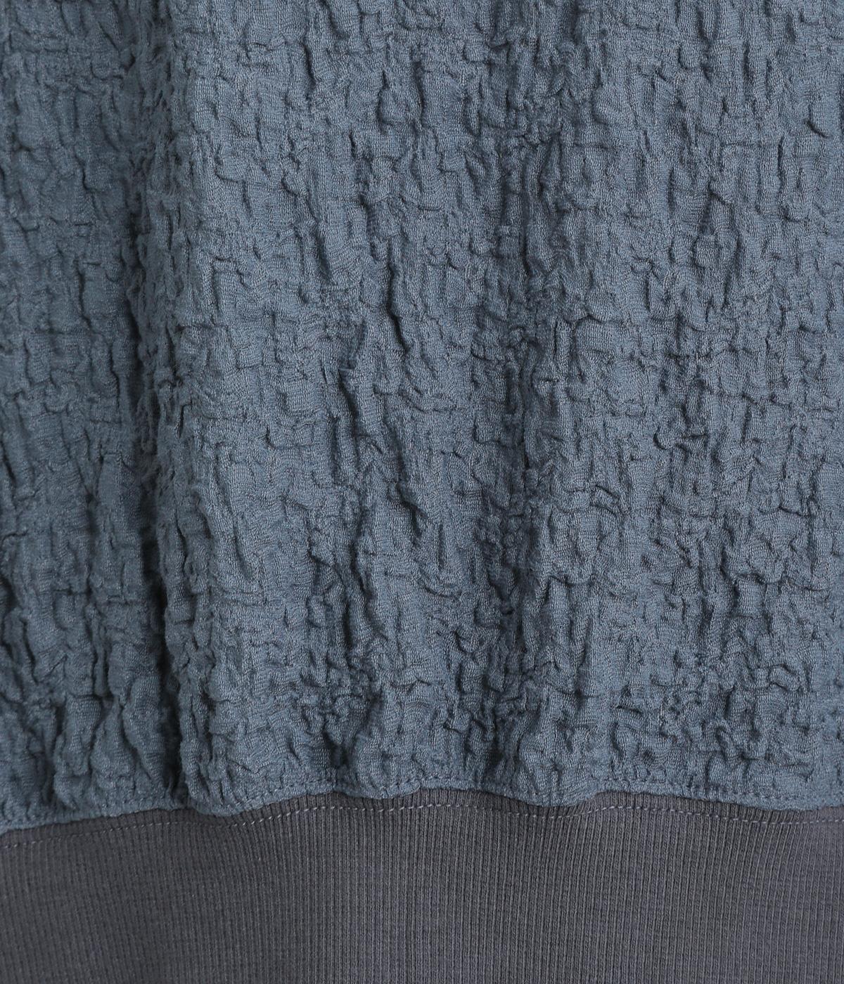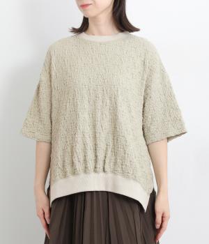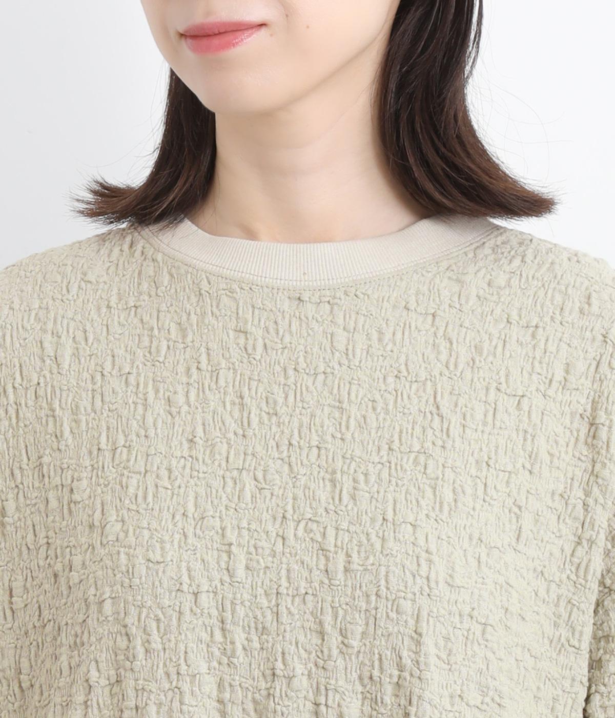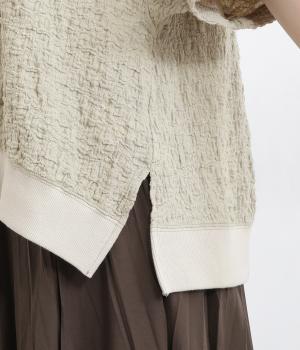 表面に凹凸感のあるふくれジャガード生地を使用したプルオーバーです。無地ながらも表情豊かで着映え力が上がり、やわらかで着心地も◎。