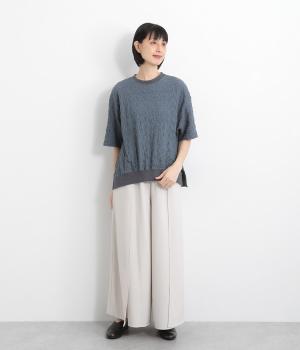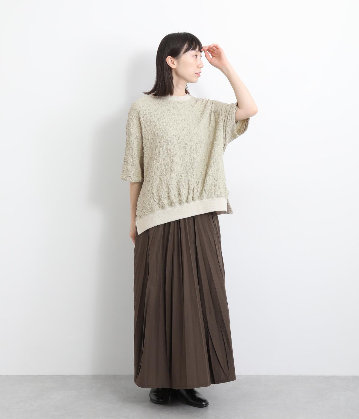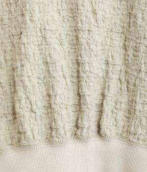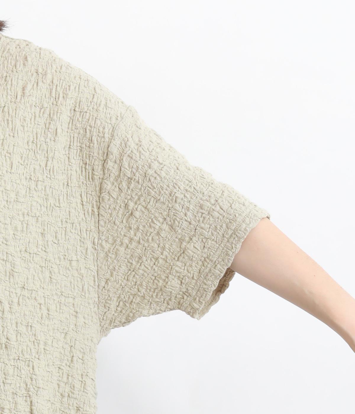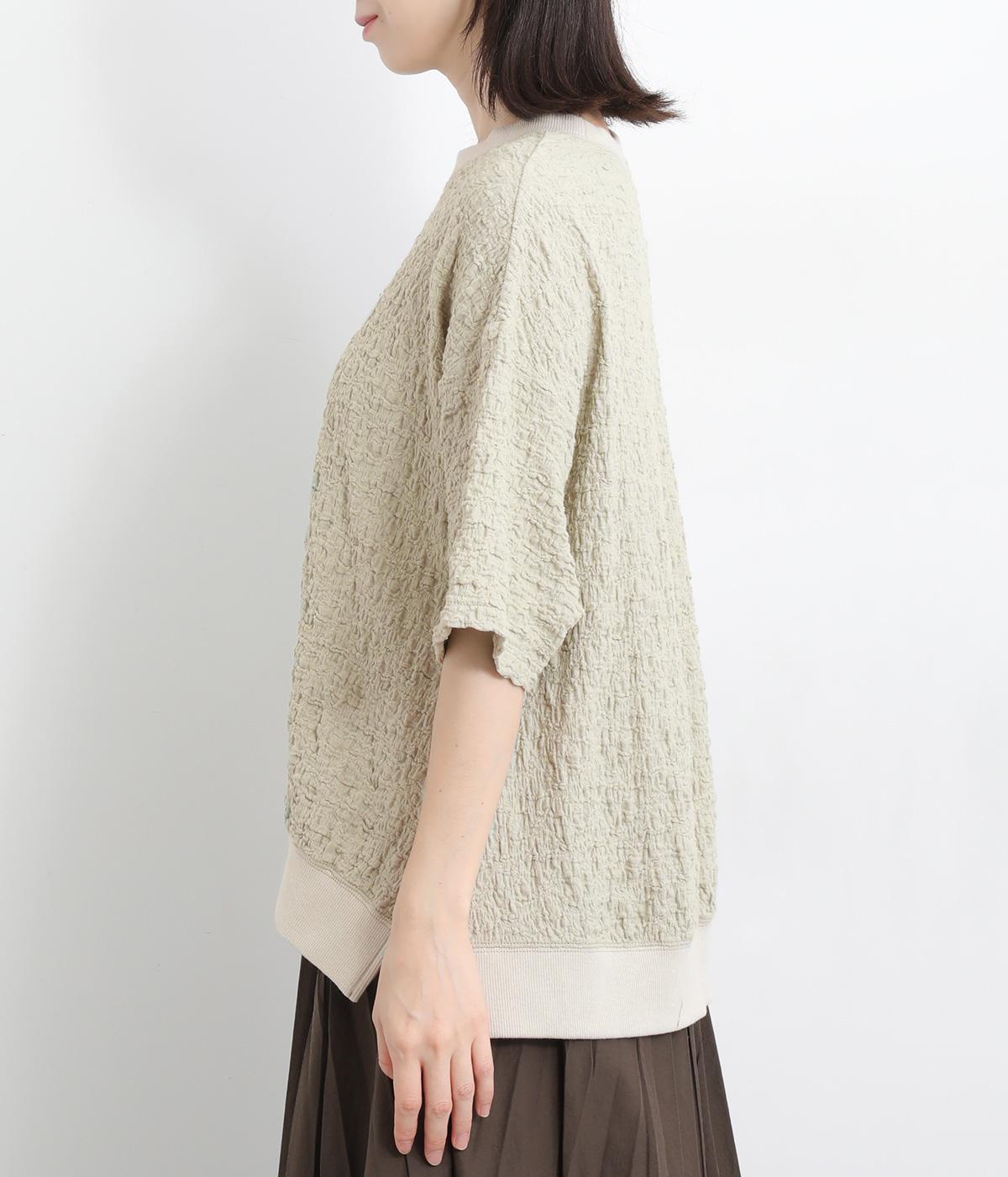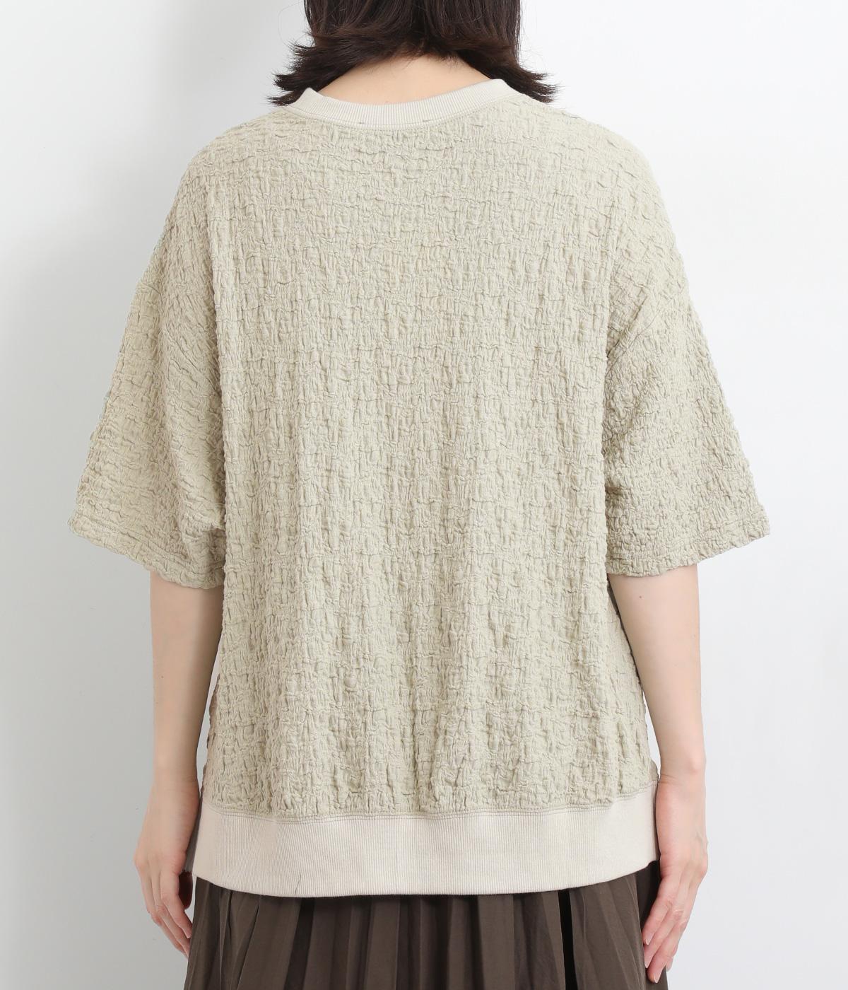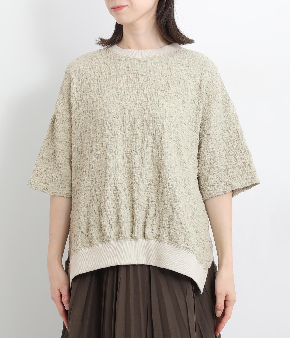 表面に凹凸感のあるふくれジャガード生地を使用したプルオーバーです。無地ながらも表情豊かで着映え力が上がり、やわらかで着心地も◎。