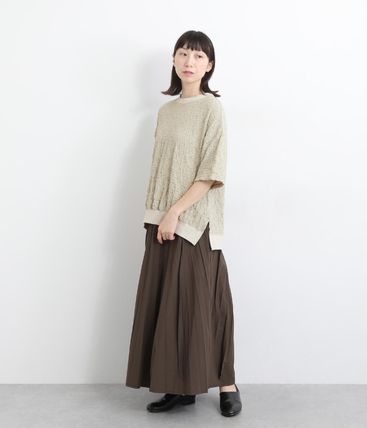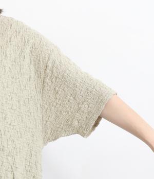 ゆったりとしたリラックスシルエットで素材感を存分に堪能できる一枚。サイドスリットで適度に抜け感を設けて、気負いのないトップスアウトもお洒落見え。裾は長めにリブを取ってメリハリをつけ、ひじにかかるほどの5分袖でロングシーズン活躍。