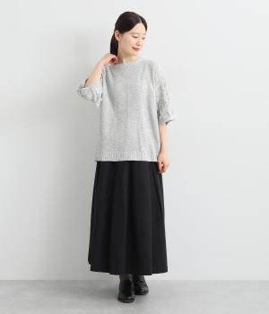 ポリエステル糸を使い、硬さやごわつきをおさえたやわらかな肌触りのニット生地。やや薄手なので暑さが残る時期から着やすく、ロングシーズン着まわせます。