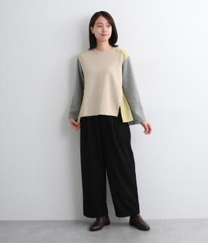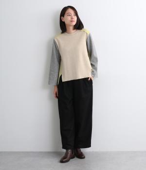 大胆なカラーブロッキングで、1枚で着映えるプルオーバー。どこから見ても映える計算された配色やサイドスリットで、トップスアウトでもサマになるデザイン。袖はややフレアになっており、カジュアルに着られます。