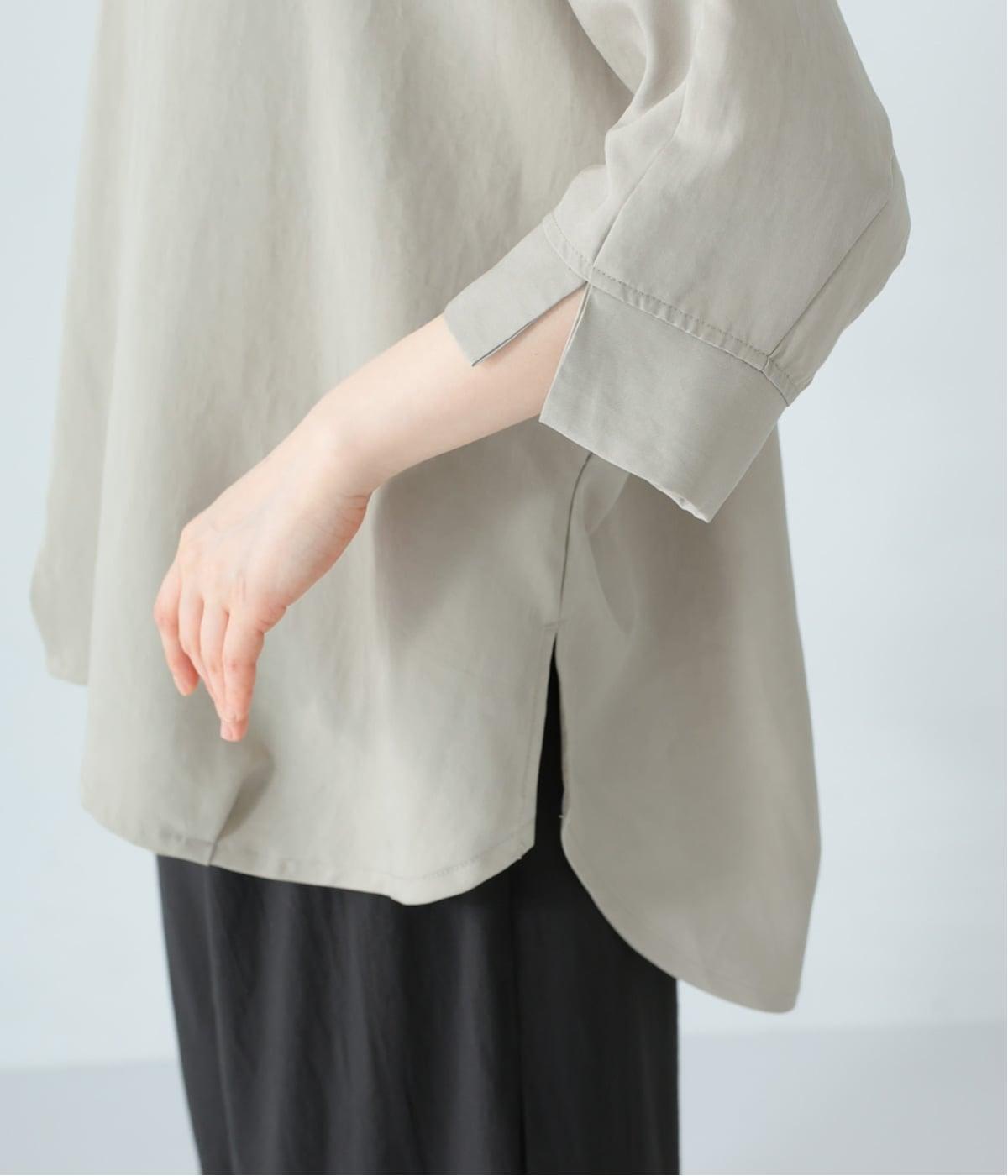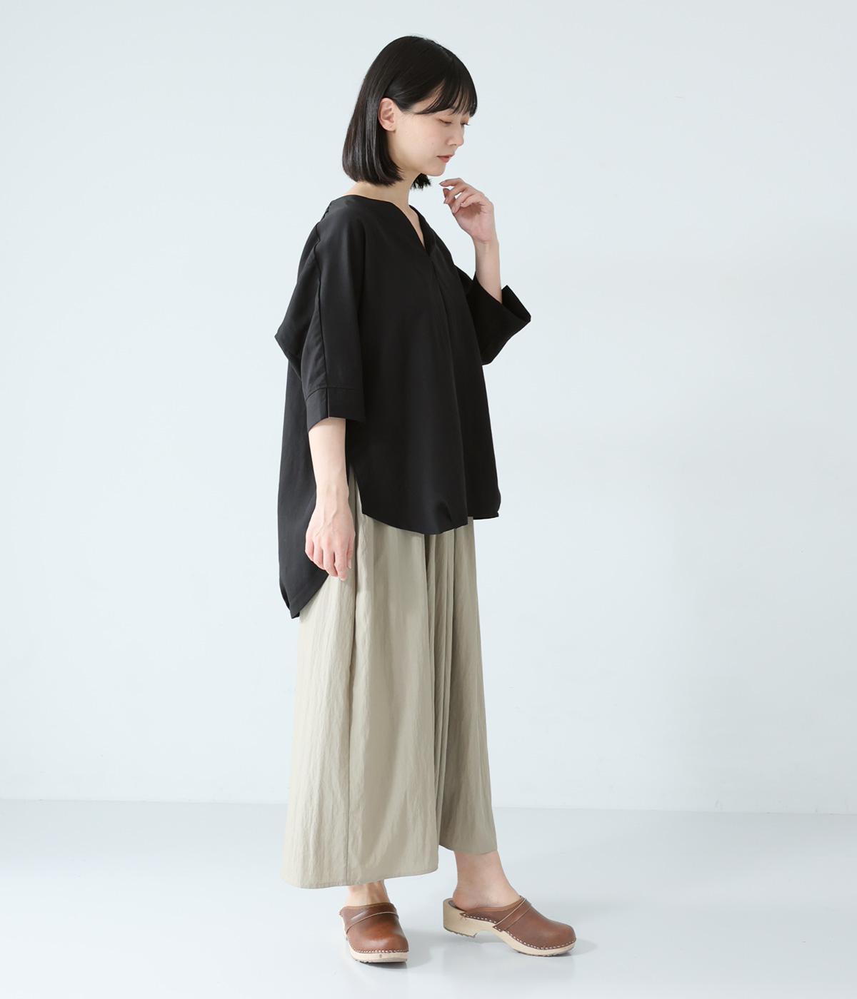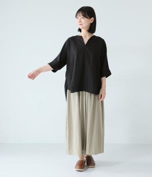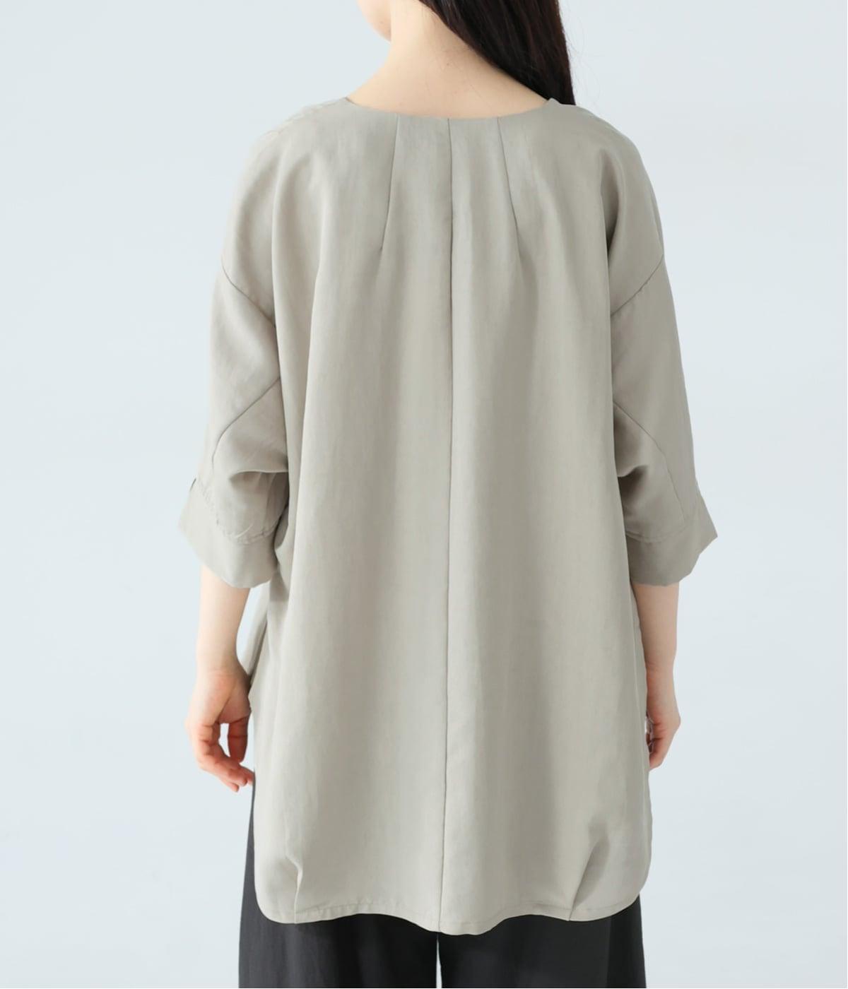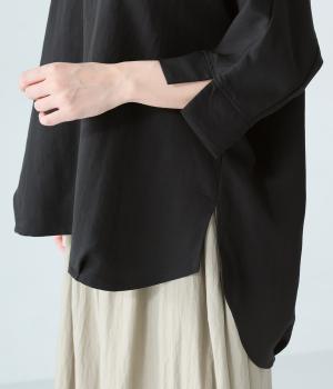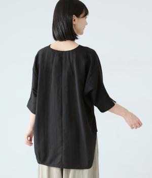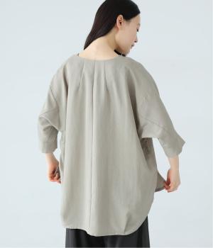 背中にほどこしたタックがやわらかな立体感を生むプルオーバーです。前後差のある裾がさりげない動きを添え、袖口のスリットが軽やかな印象に。シンプルながらも表情のある一枚に仕上げています。