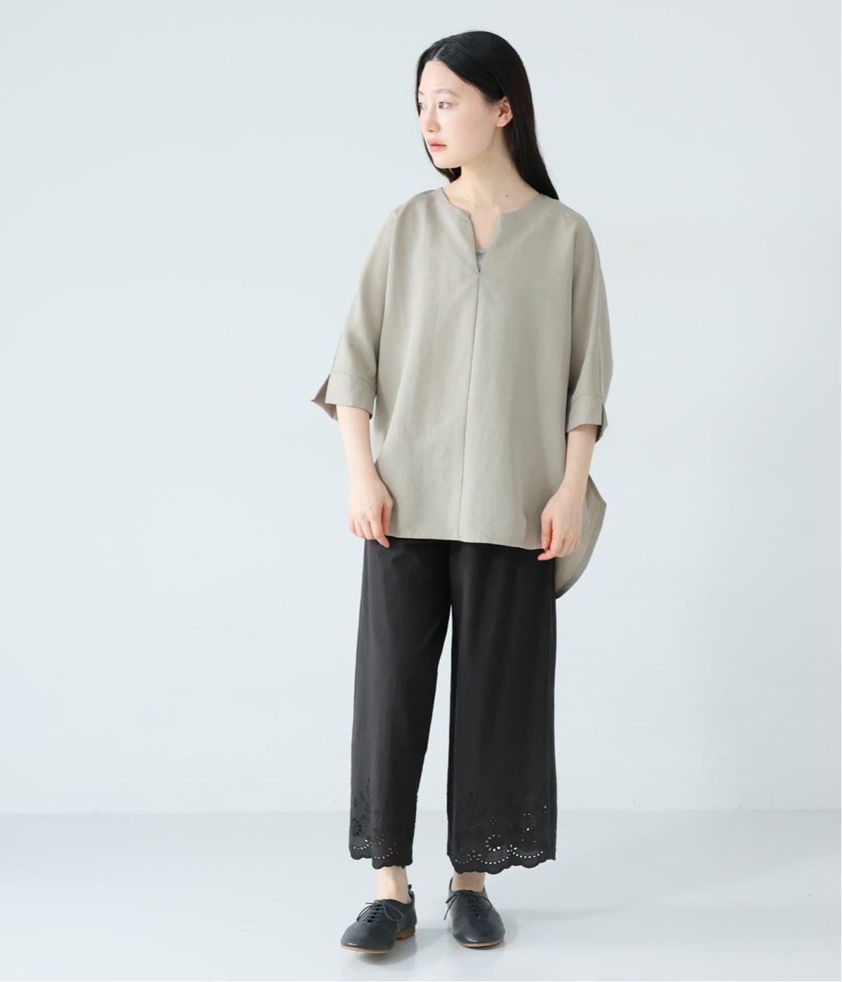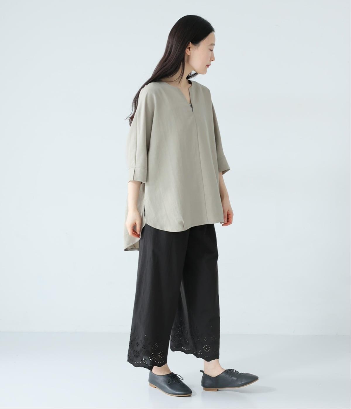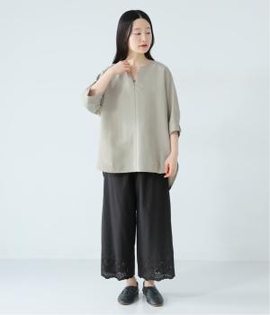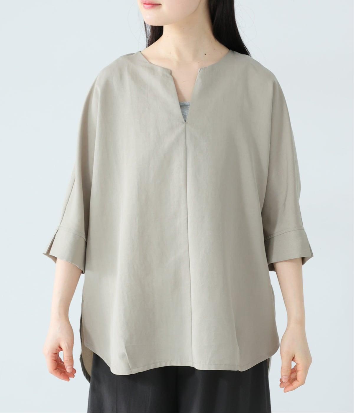 背中にほどこしたタックがやわらかな立体感を生むプルオーバーです。前後差のある裾がさりげない動きを添え、袖口のスリットが軽やかな印象に。シンプルながらも表情のある一枚に仕上げています。