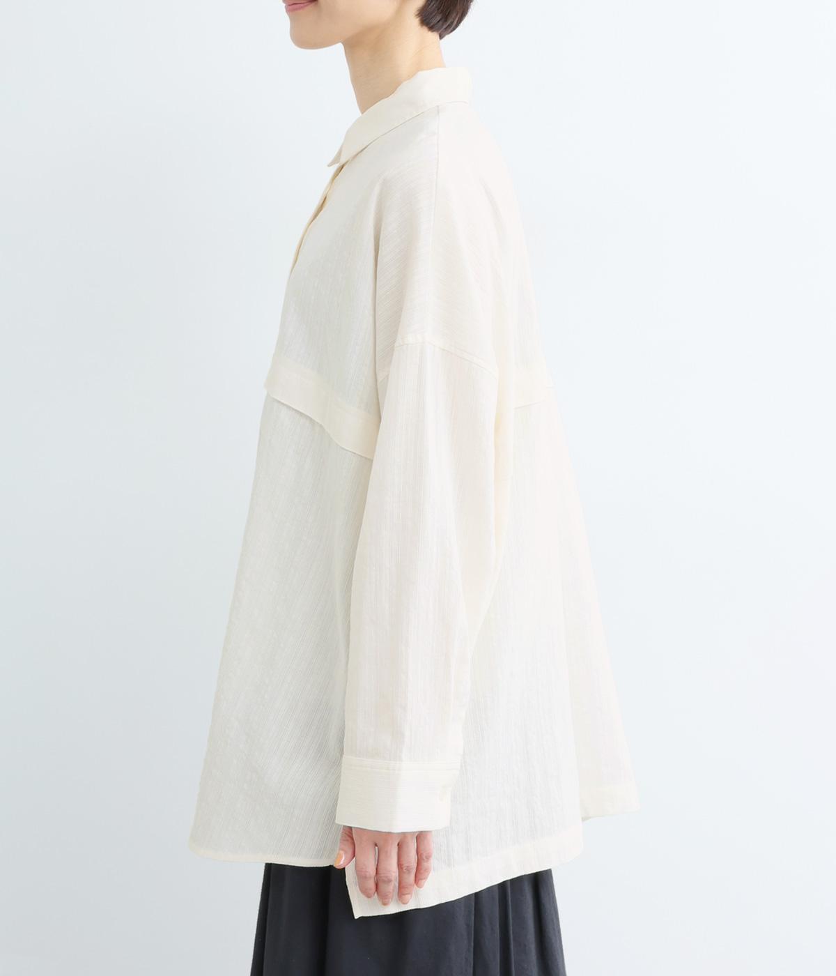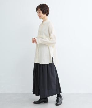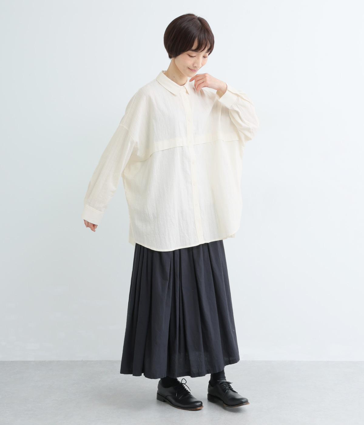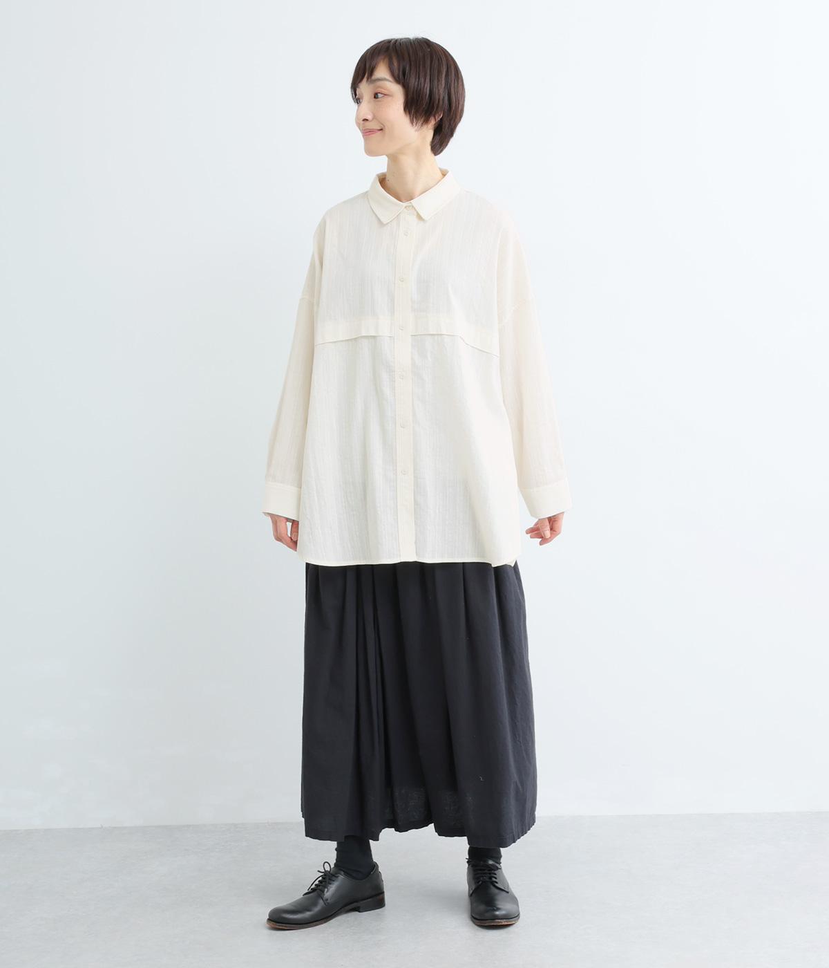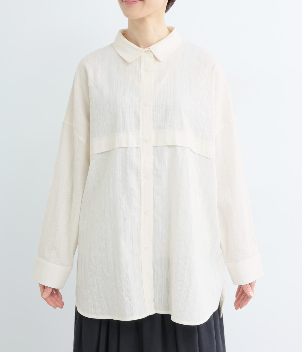 リラックス感のあるオーバーサイズシルエットが、こなれた印象を演出するワイドシャツです。身頃をぐるりと囲む切り替えがさりげないアクセントとなり、シンプルさのなかに立体感をプラス。サイドスリットが軽やかな抜け感をつくり、動きのある着こなしを叶えます。