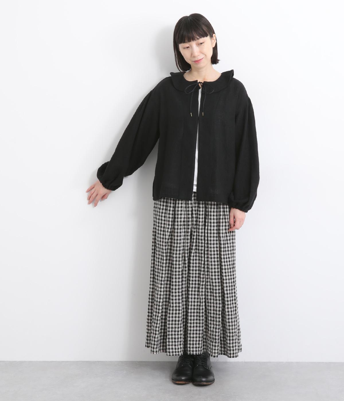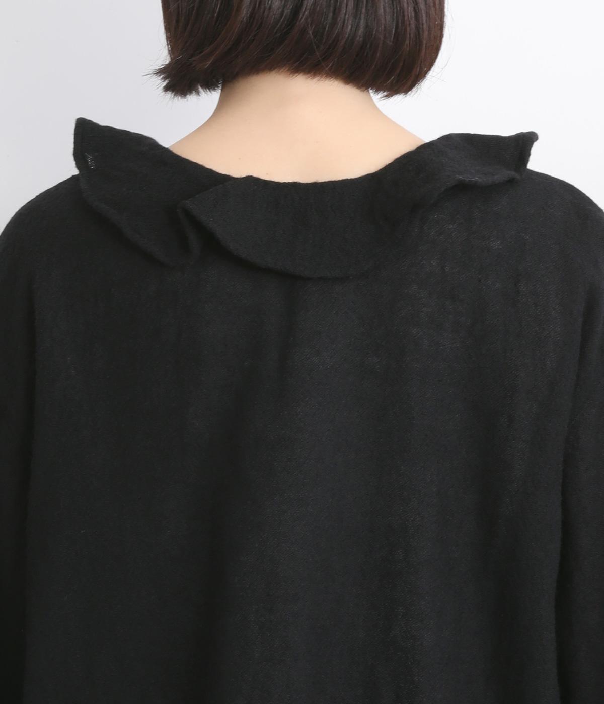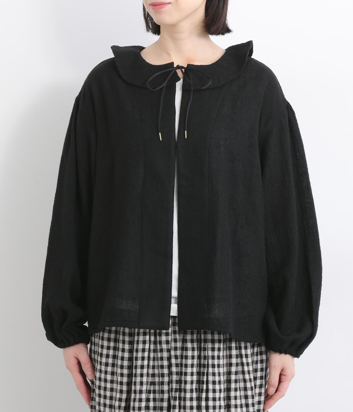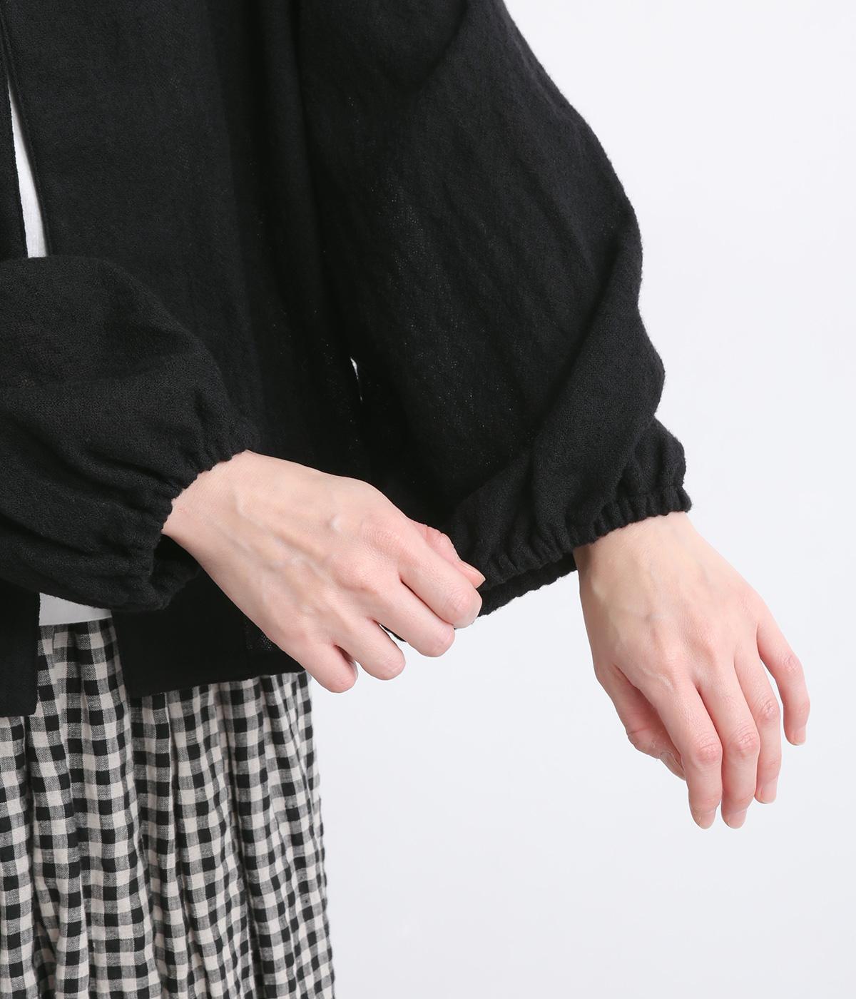 自然に波打つ立体的なフリル襟が顔まわりを華やかに魅せてくれる一枚。リボン結びの羽織りタイプも、後ろあきのプルオーバーもたのしめる前後2way仕様で着まわし力も抜群。袖口ゴム仕様なので、たくし上げてボリューム感を出したアレンジも◎。