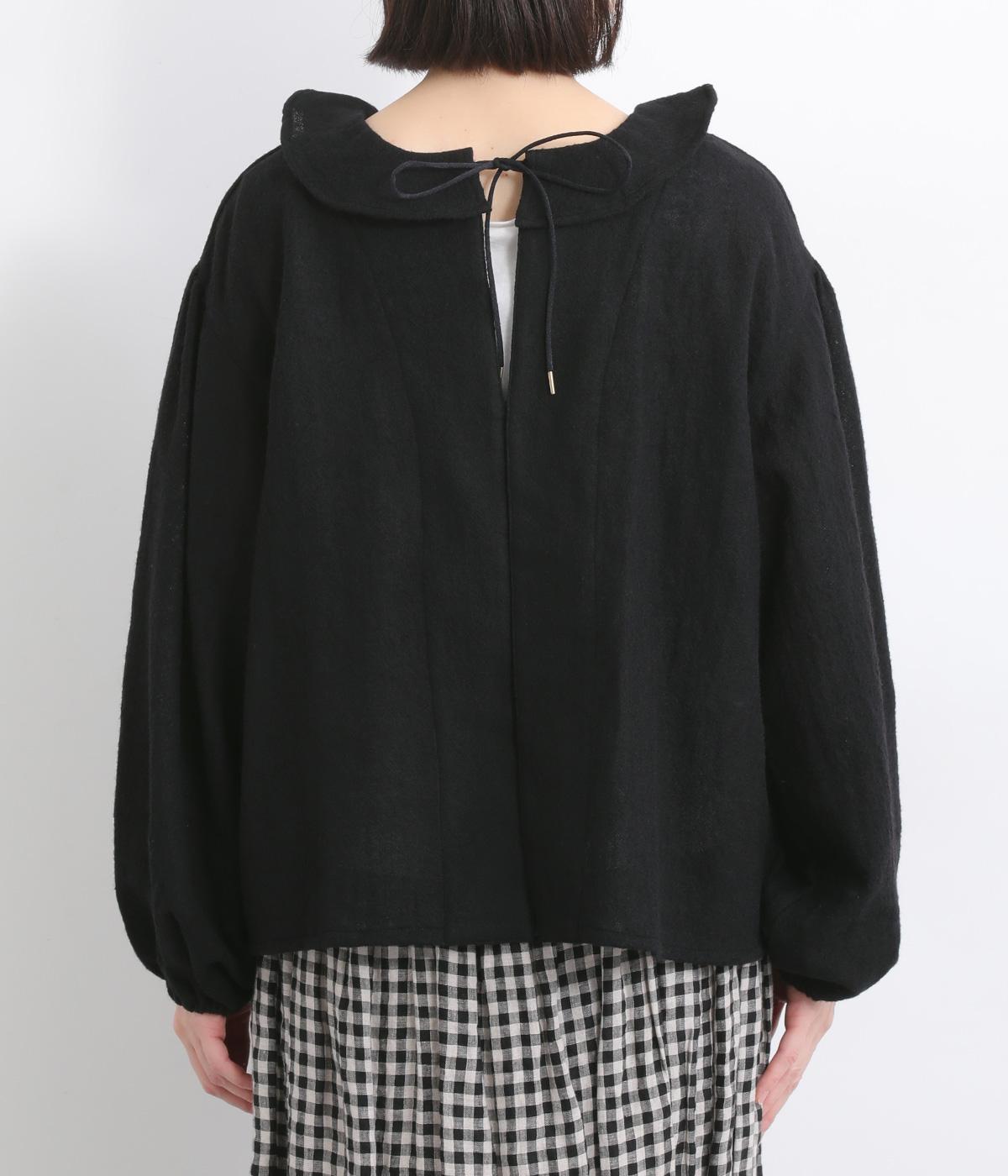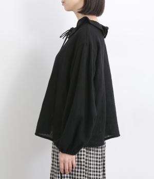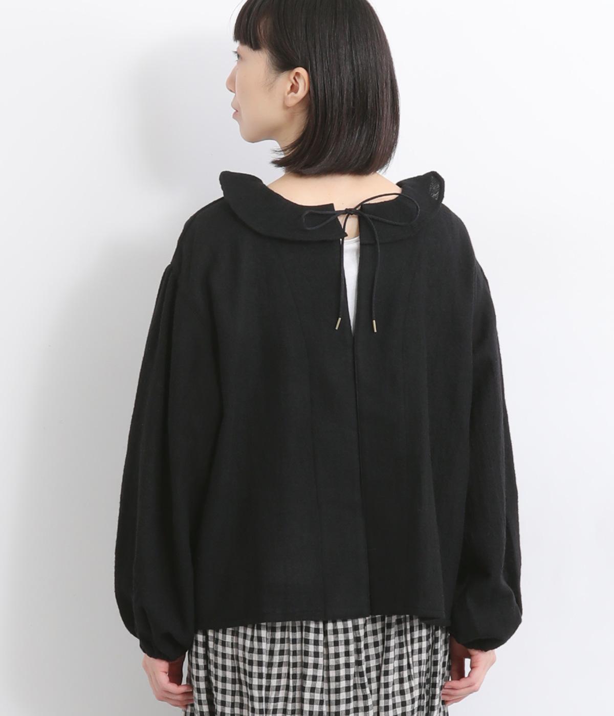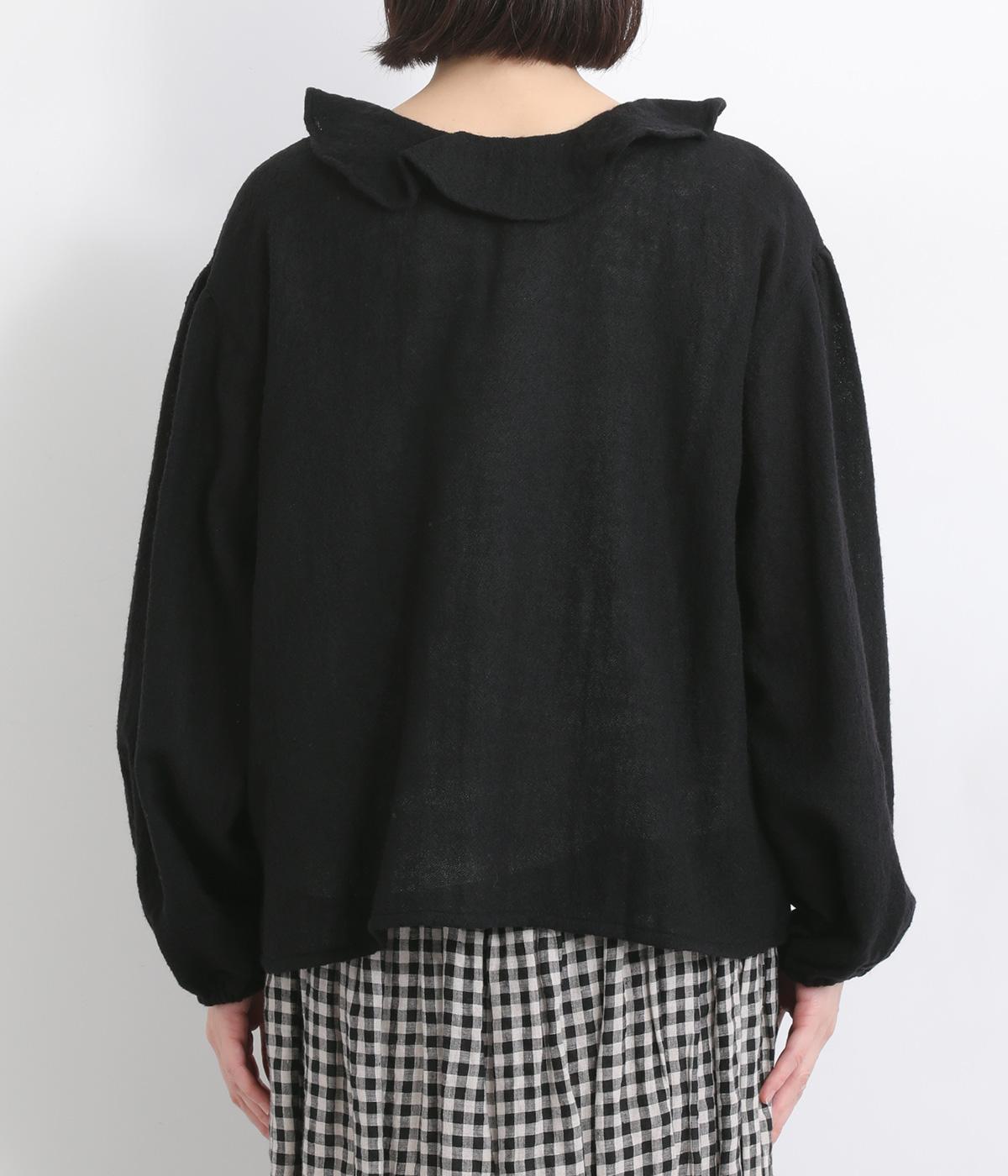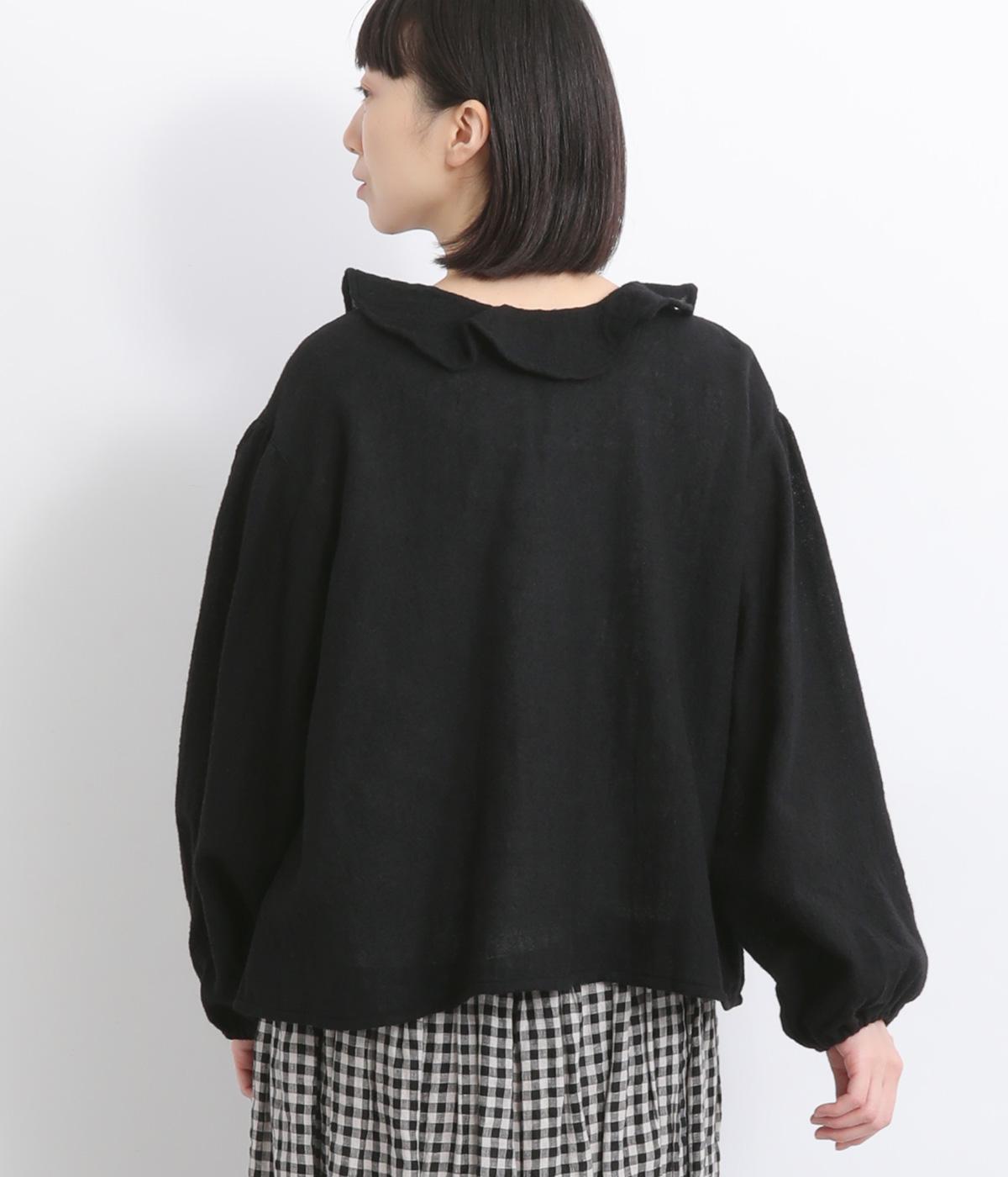 自然に波打つ立体的なフリル襟が顔まわりを華やかに魅せてくれる一枚。リボン結びの羽織りタイプも、後ろあきのプルオーバーもたのしめる前後2way仕様で着まわし力も抜群。袖口ゴム仕様なので、たくし上げてボリューム感を出したアレンジも◎。