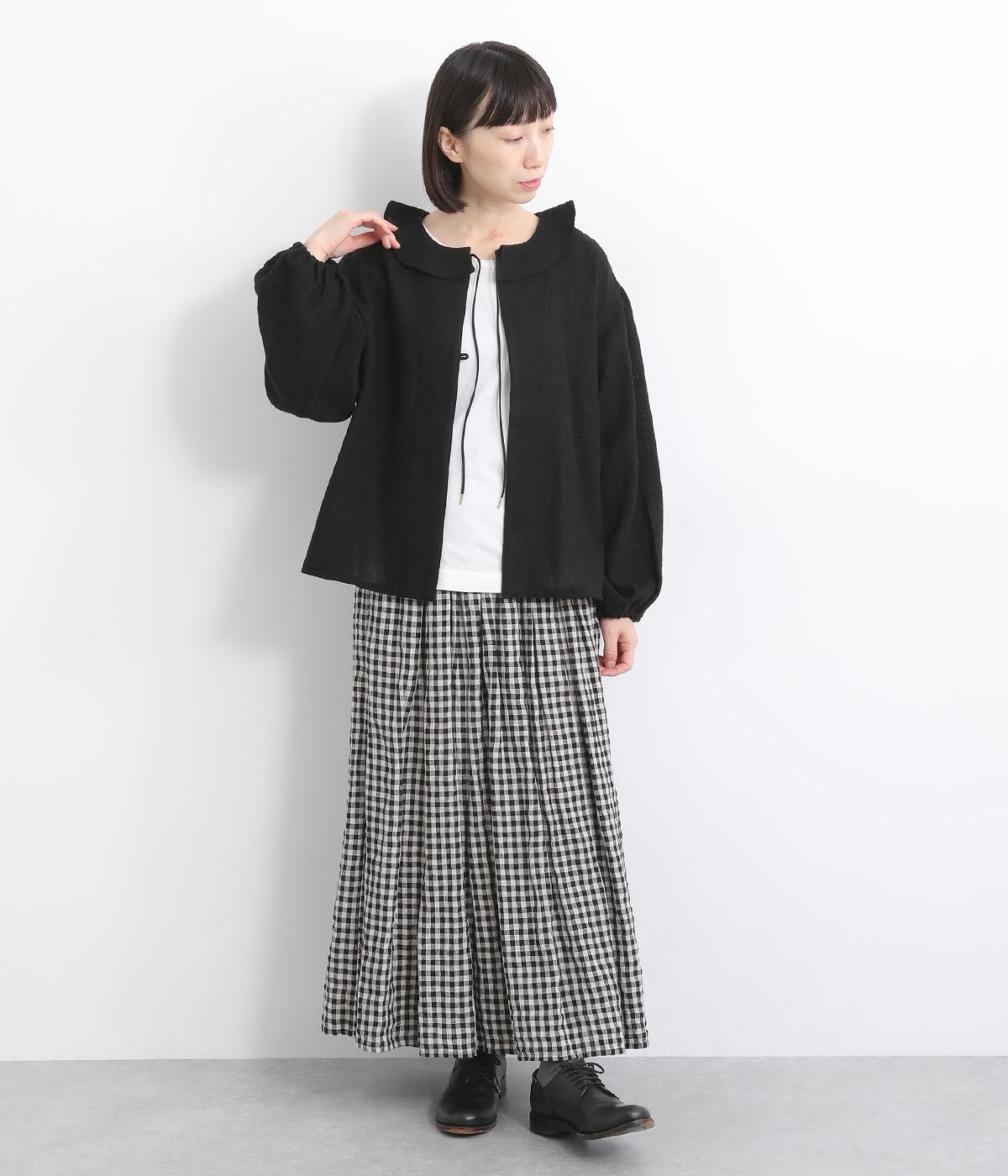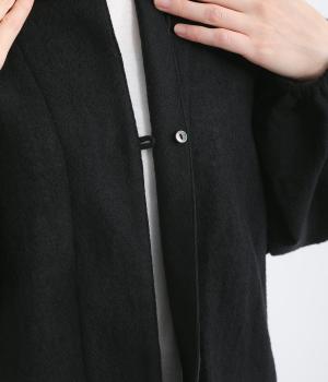 ウールのあたたかみとガーゼのやさしい雰囲気を併せ持った混紡素材を使用。ふっくらとした繊細なふくらみがあり、軽量仕上げで心地よく着用できます。