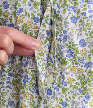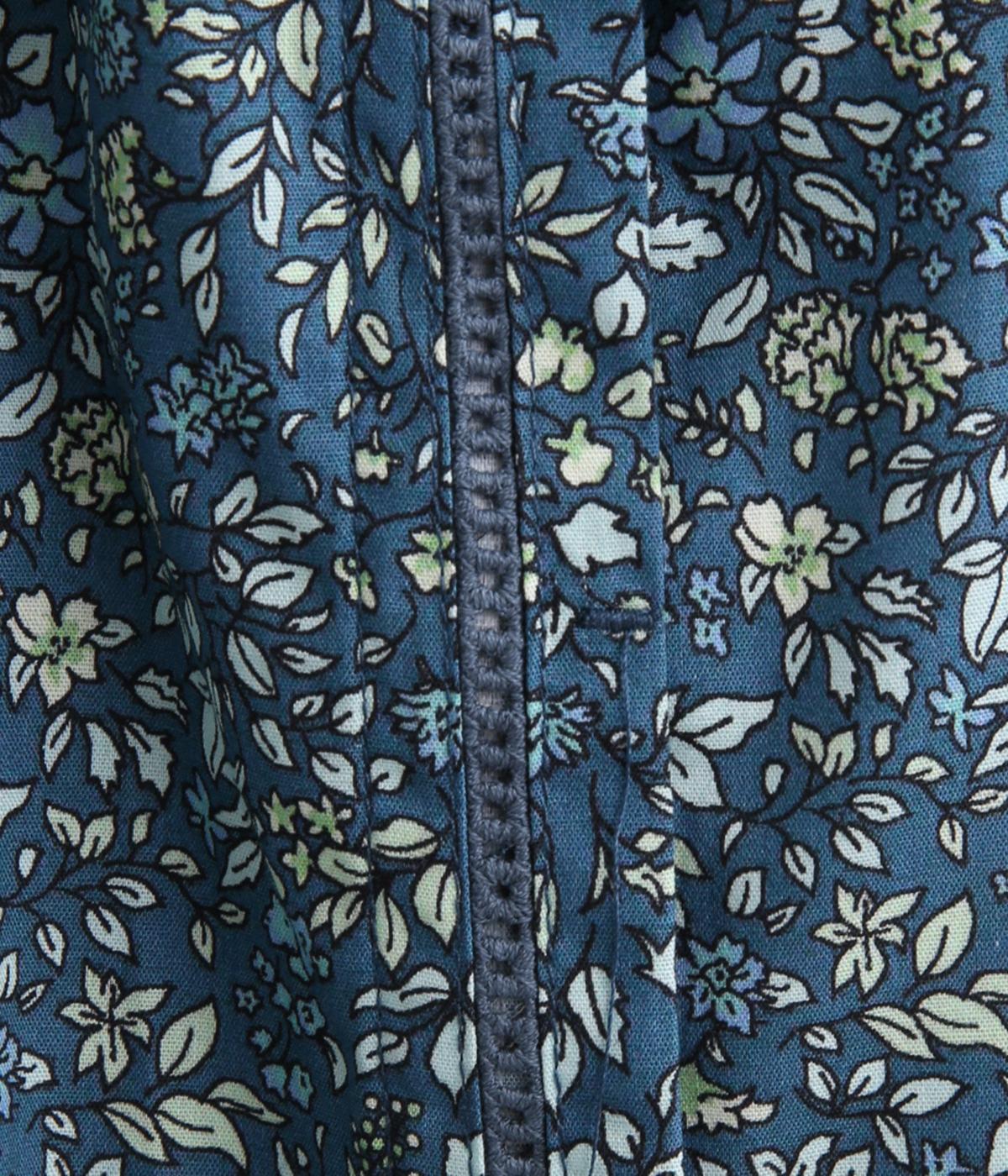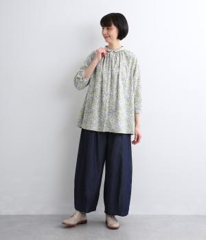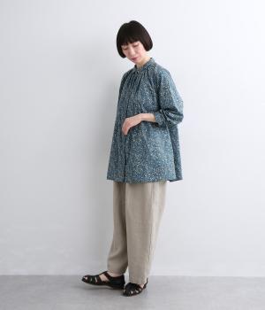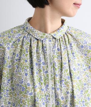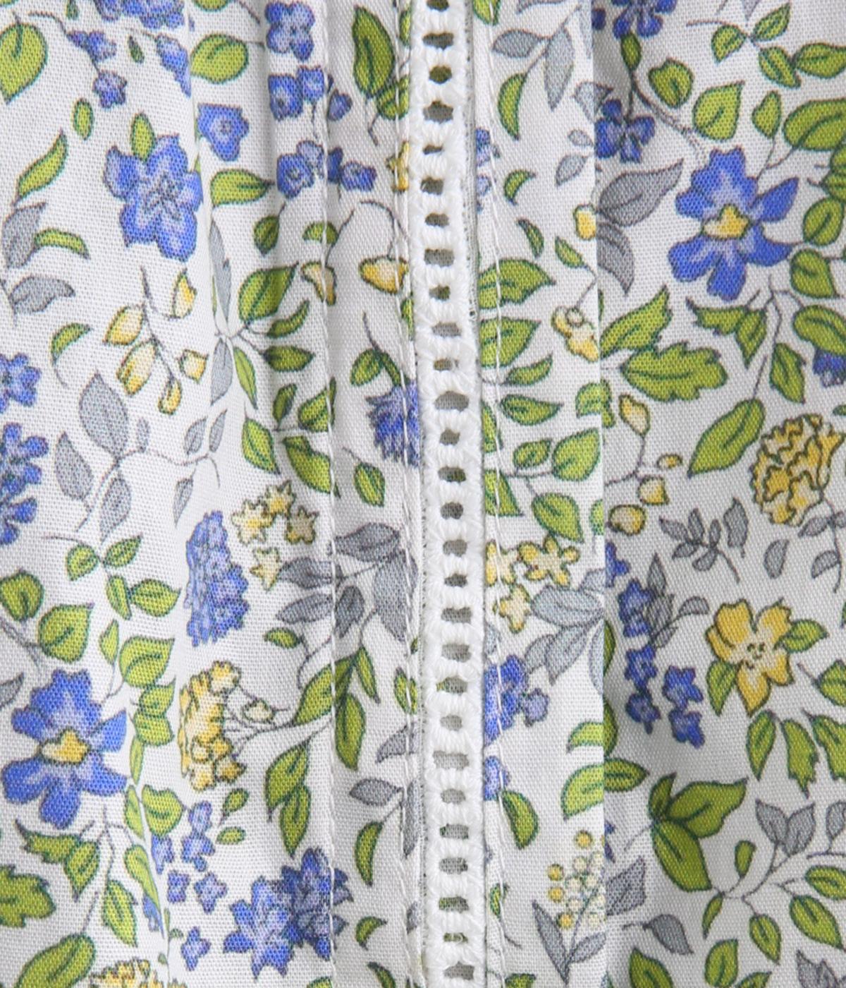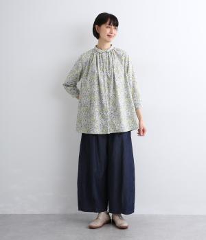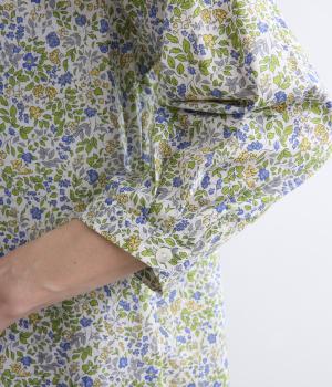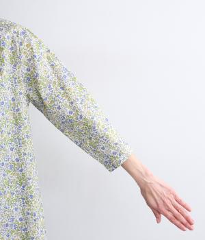 なめらかな手ざわりをもつ薄手のコットン素材を使用しています。落ち着いた配色の小花柄が大人のかわいさを引き立てます。
