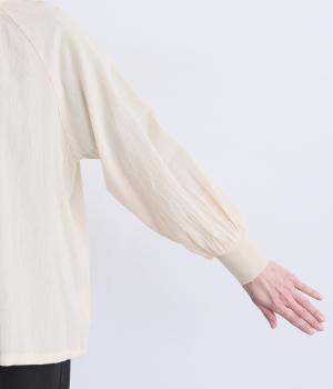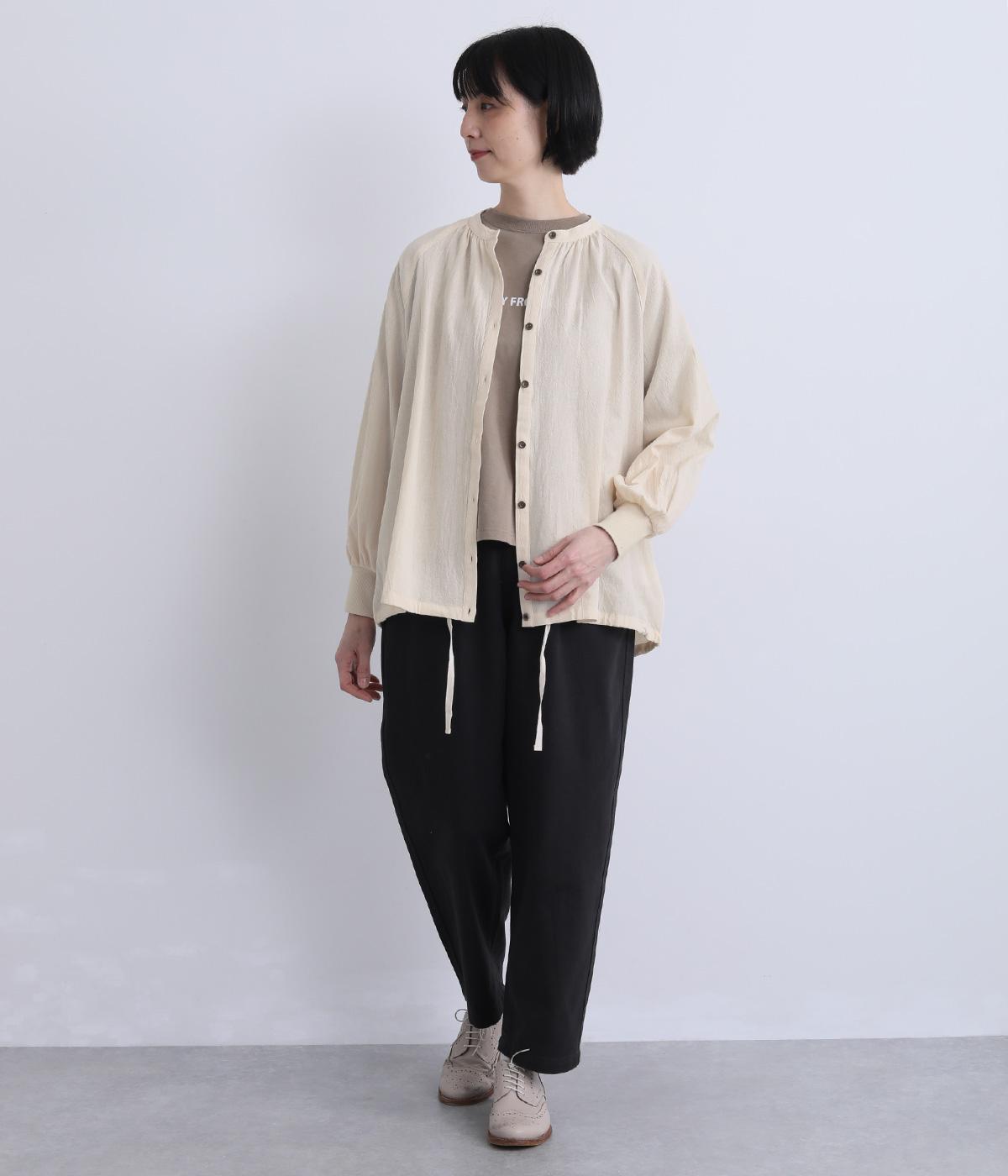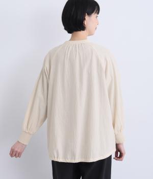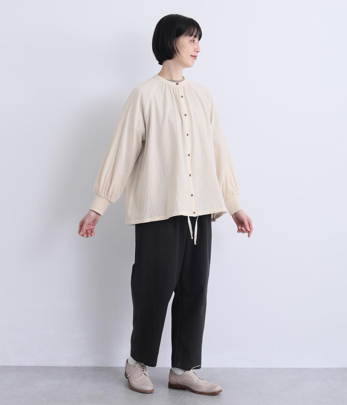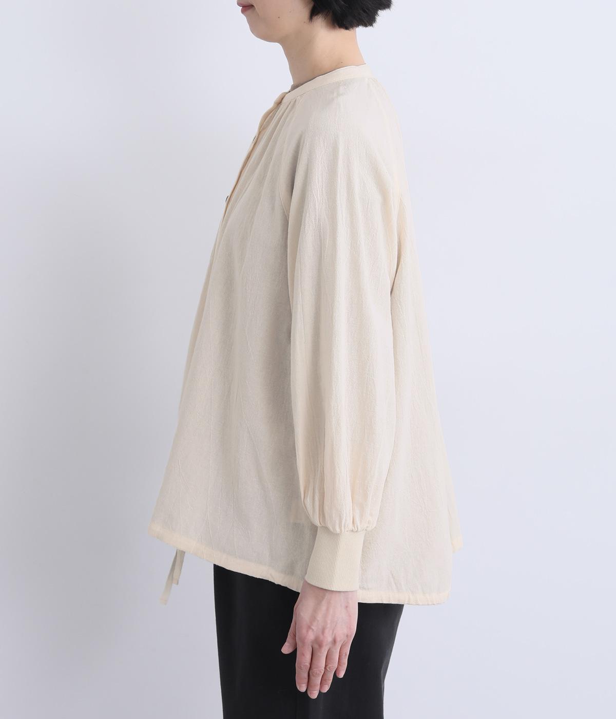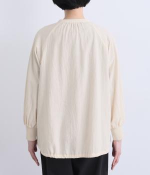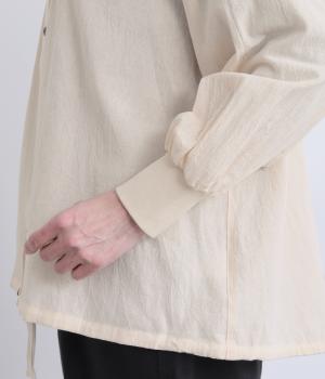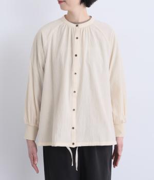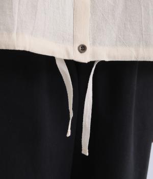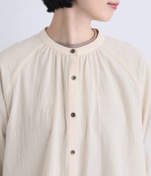 ウォッシュ加工で自然なシワ感を引き出し、よりナチュラルな風合いを高めたコットン生地を使用。さらりとした肌離れのいい質感が心地よく、ほんのり透ける薄手素材で快適に着用できます。