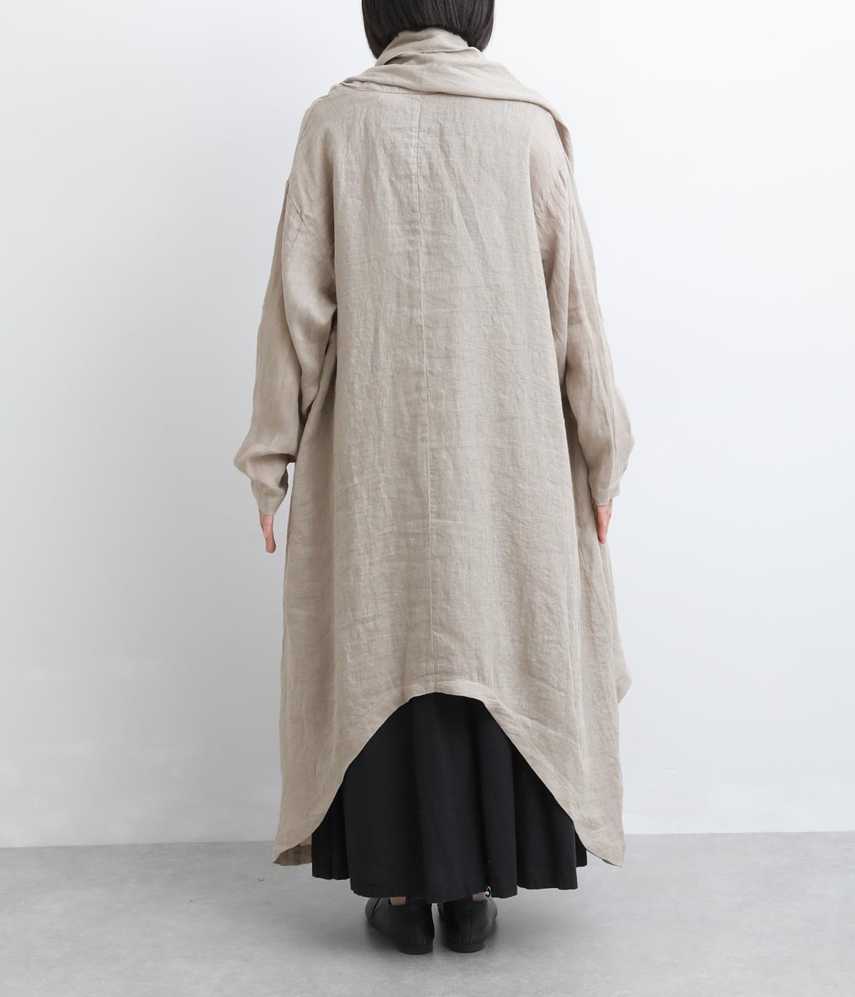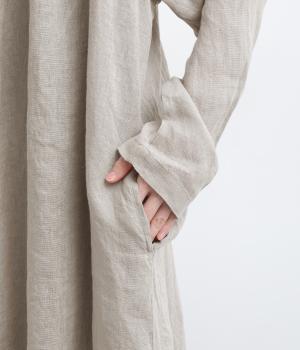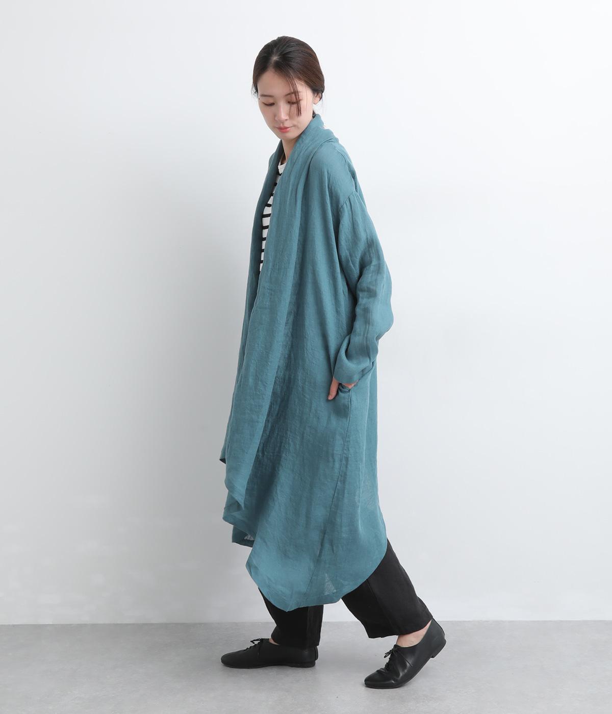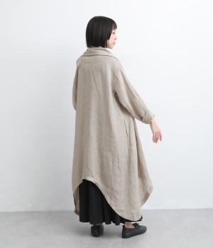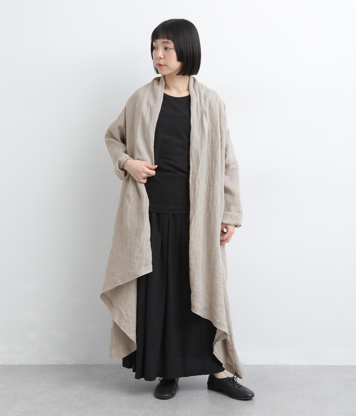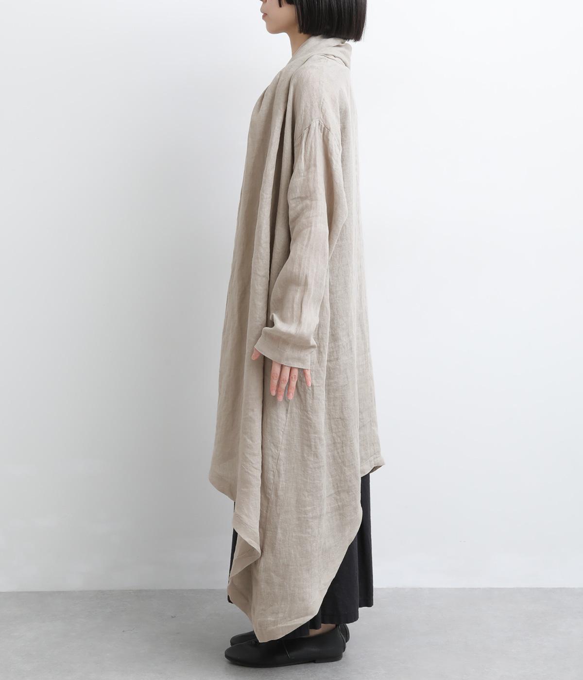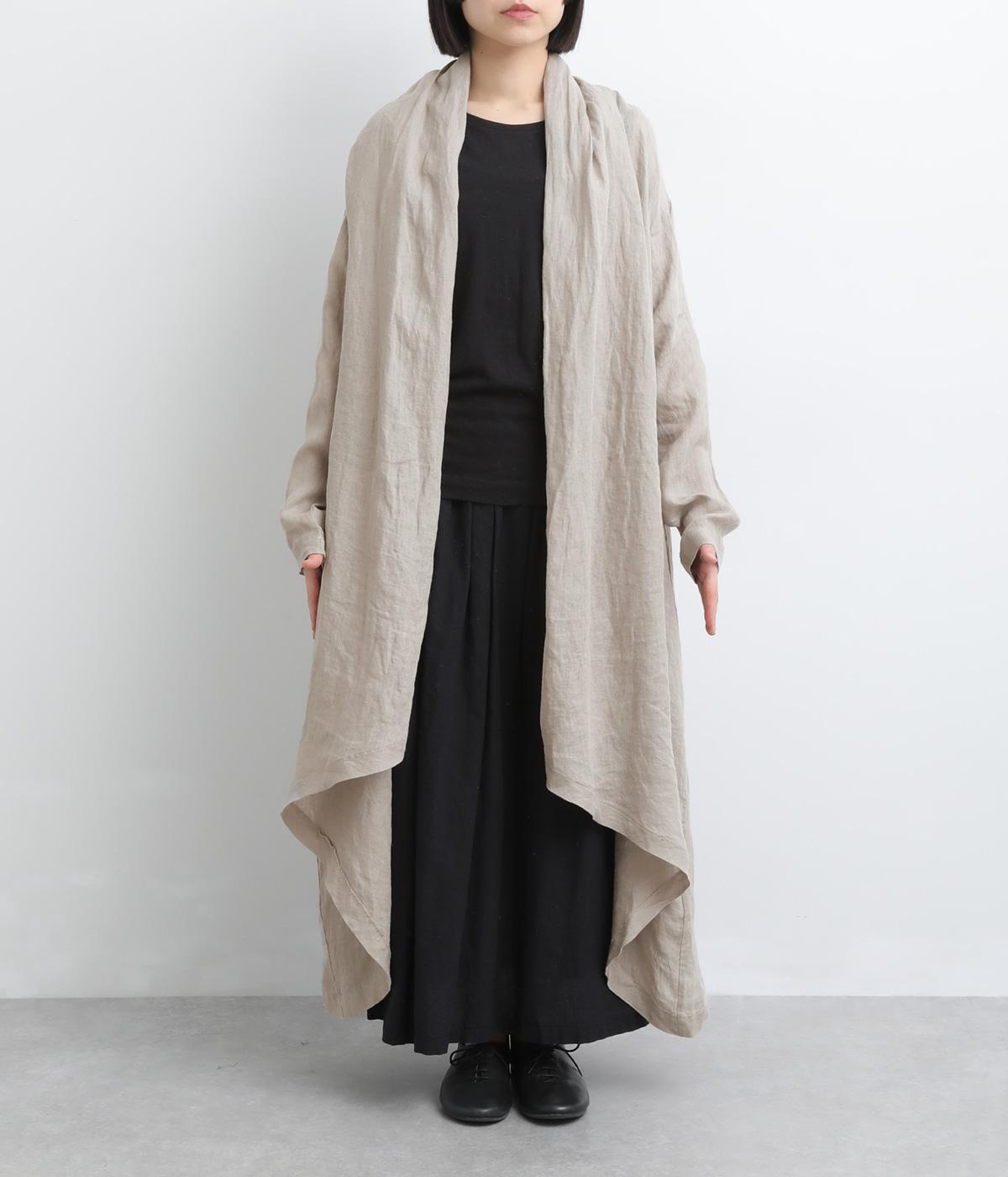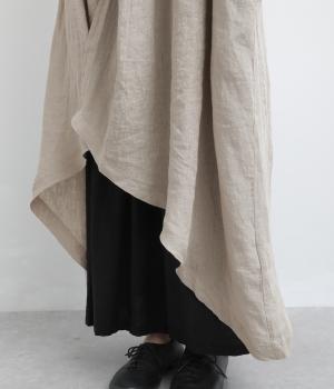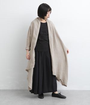 ななめにカットしたヘムラインが自然なドレープを運び、羽織るだけでサマになるガウン。シンプルな装いも一気にこなれ感が生まれ、リネン素材なので手持ちアイテムとの相性も抜群。便利なポケットつきでお洒落さも実用性も◎。