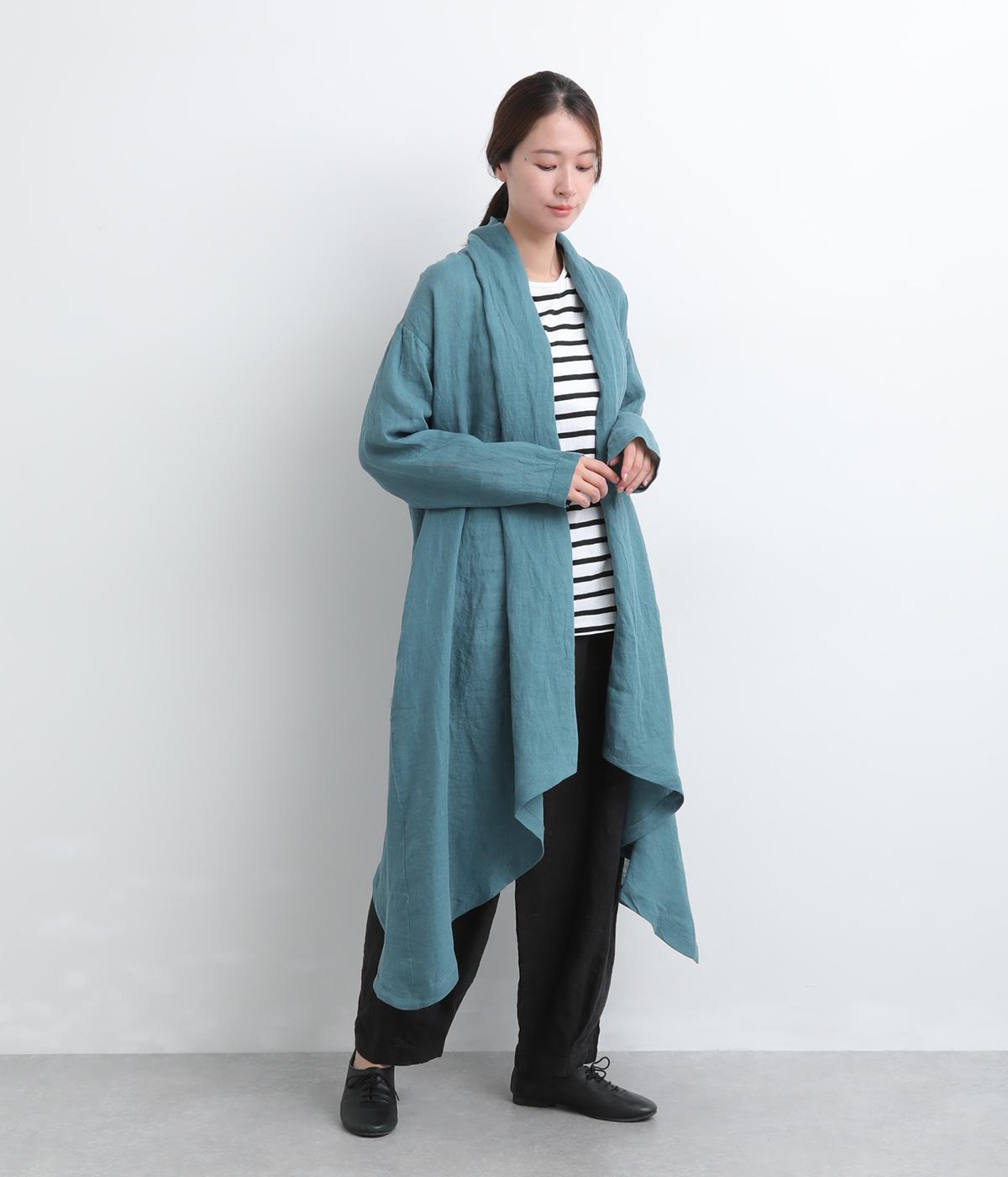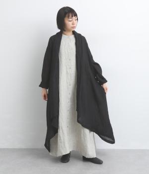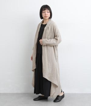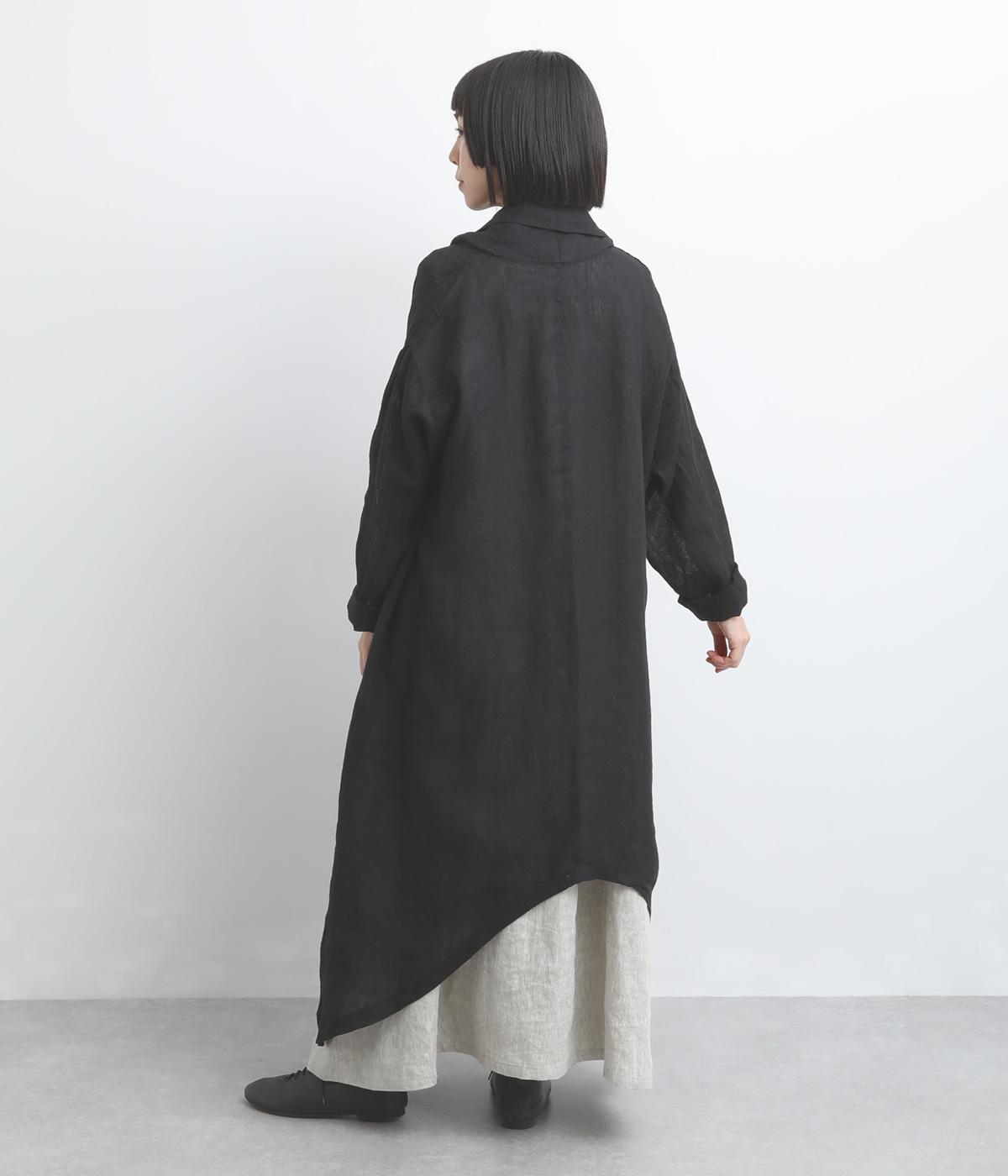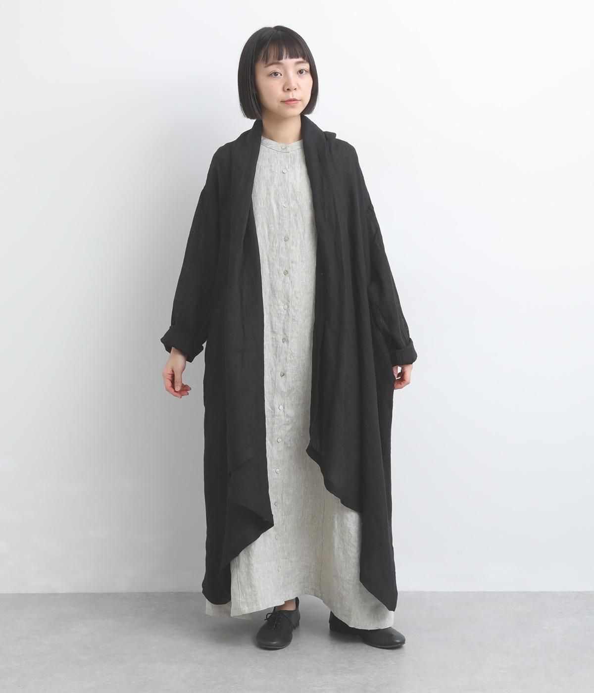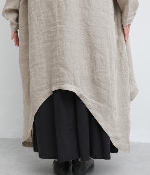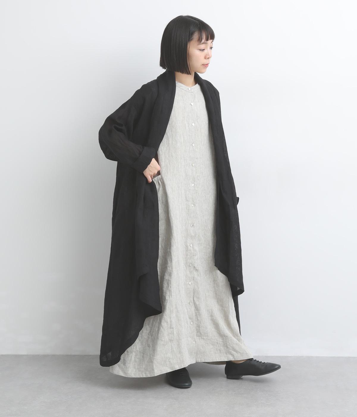 ななめにカットしたヘムラインが自然なドレープを運び、羽織るだけでサマになるガウン。シンプルな装いも一気にこなれ感が生まれ、リネン素材なので手持ちアイテムとの相性も抜群。便利なポケットつきでお洒落さも実用性も◎。
