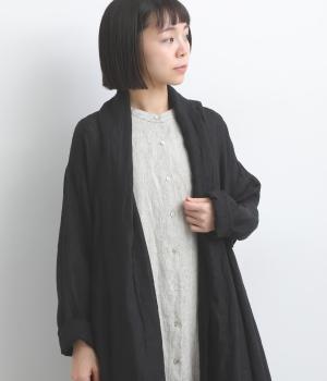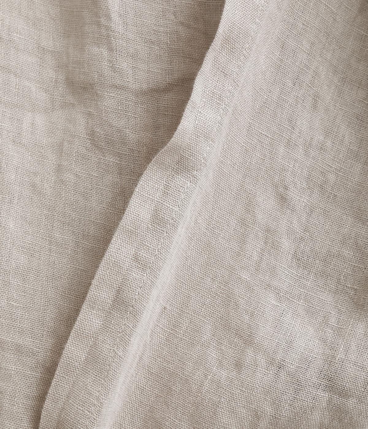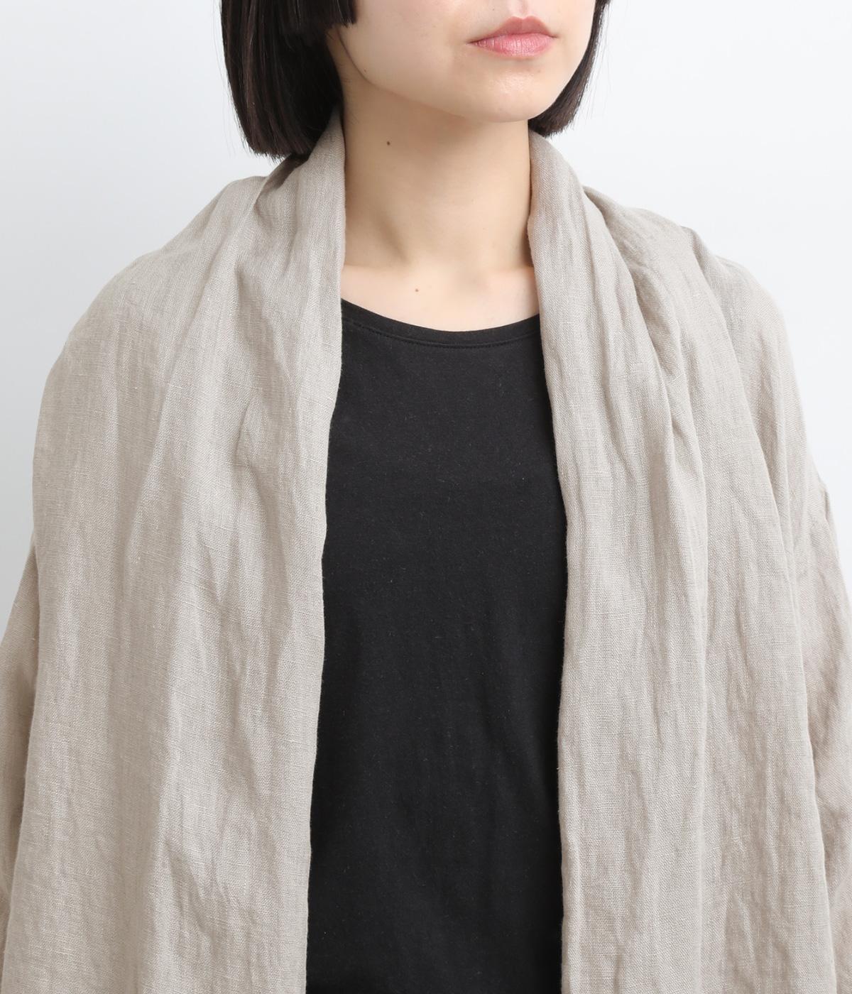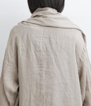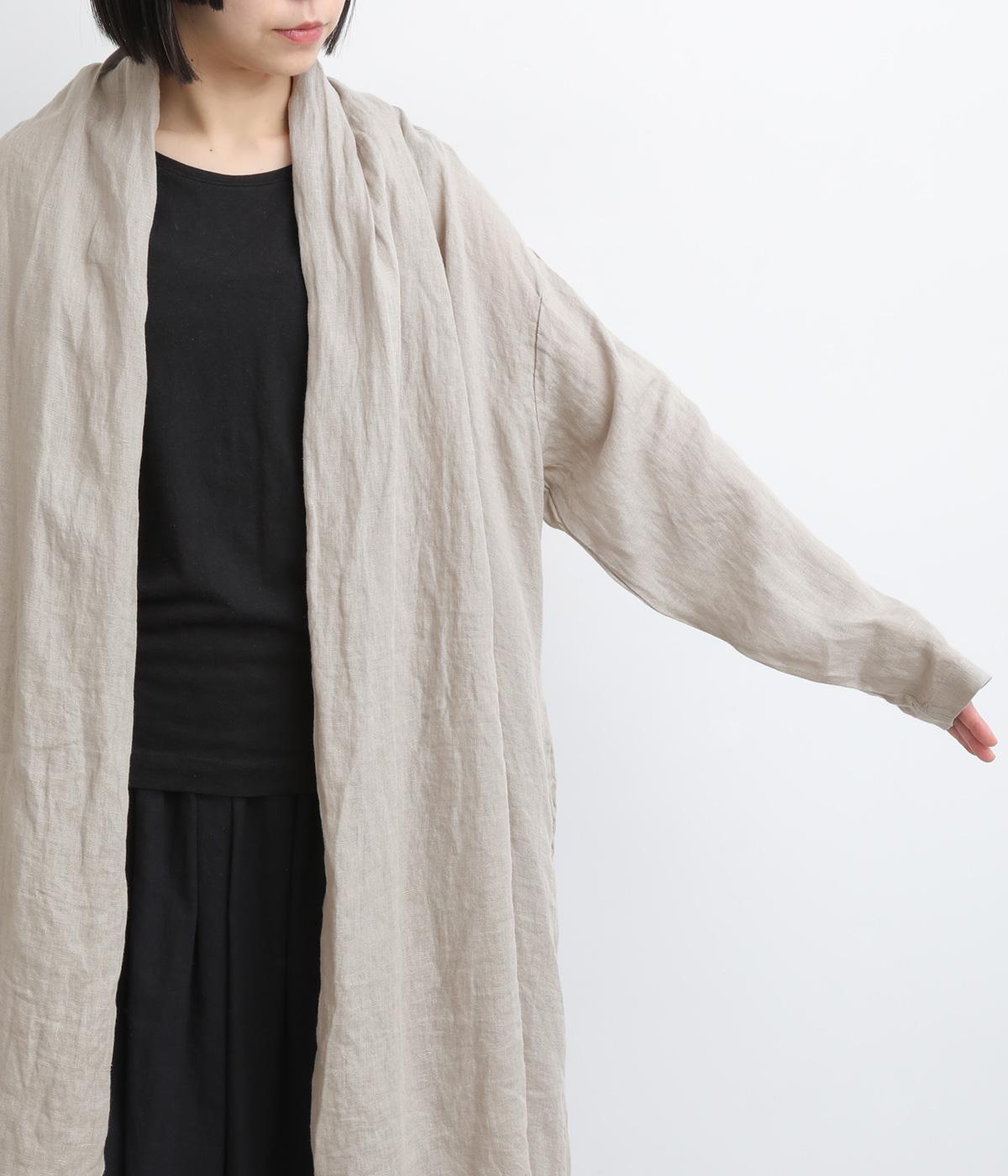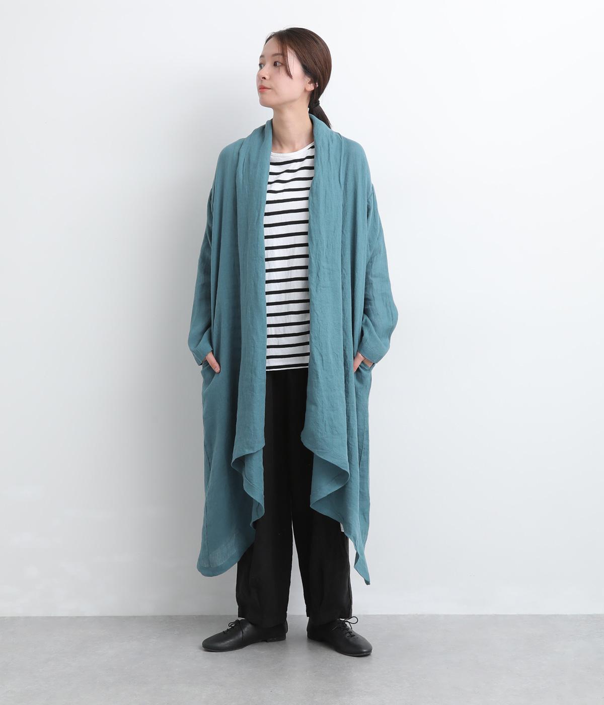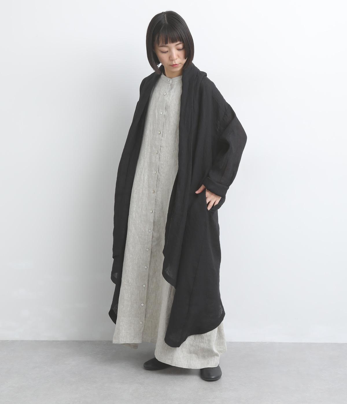 ななめにカットしたヘムラインが自然なドレープを運び、羽織るだけでサマになるガウン。シンプルな装いも一気にこなれ感が生まれ、リネン素材なので手持ちアイテムとの相性も抜群。便利なポケットつきでお洒落さも実用性も◎。