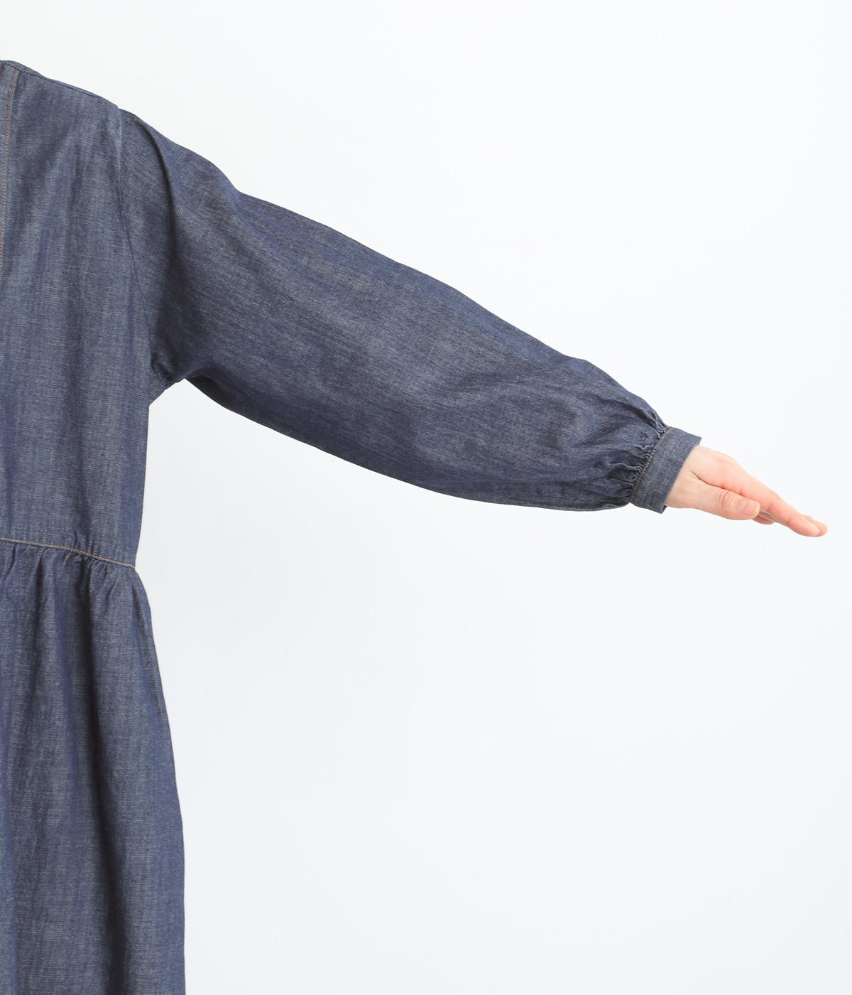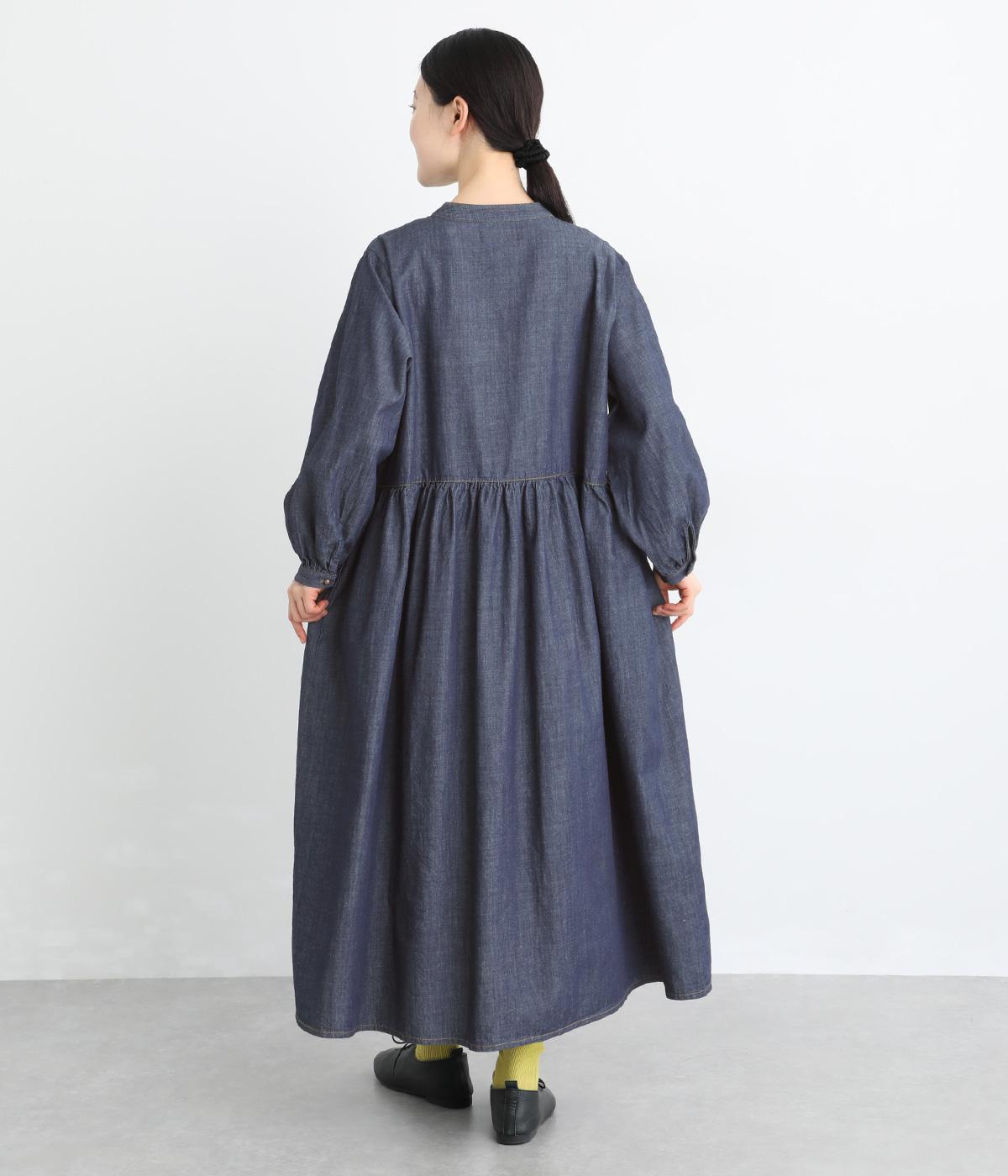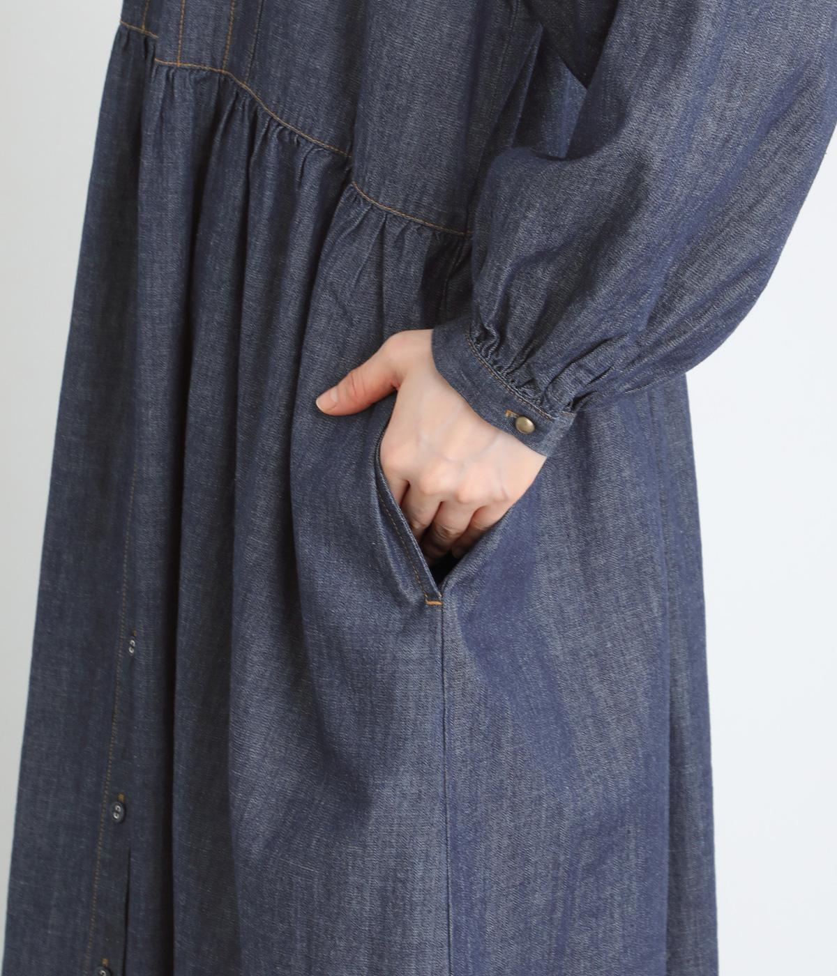 5.5ozデニムビブヨークギャザーワンピース(ネイビー-F)
