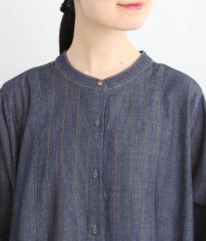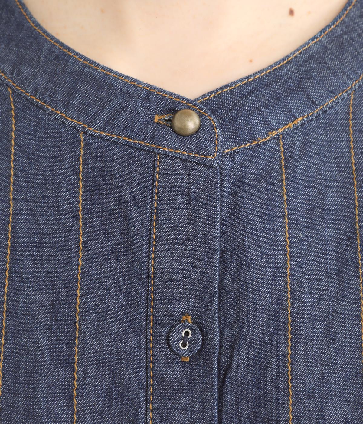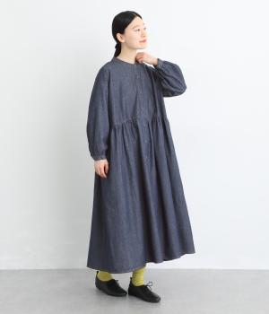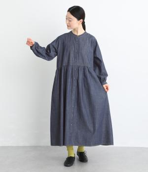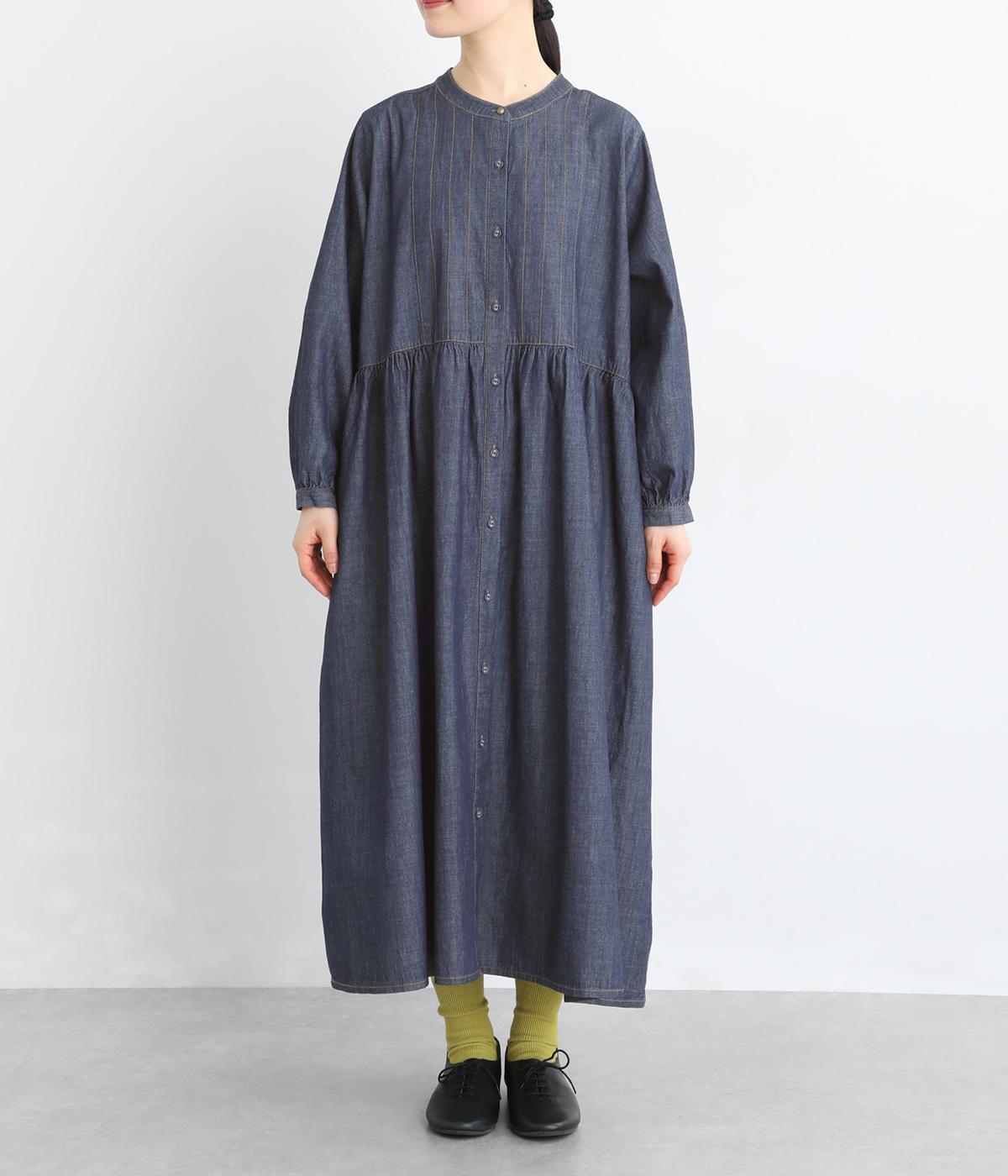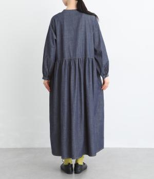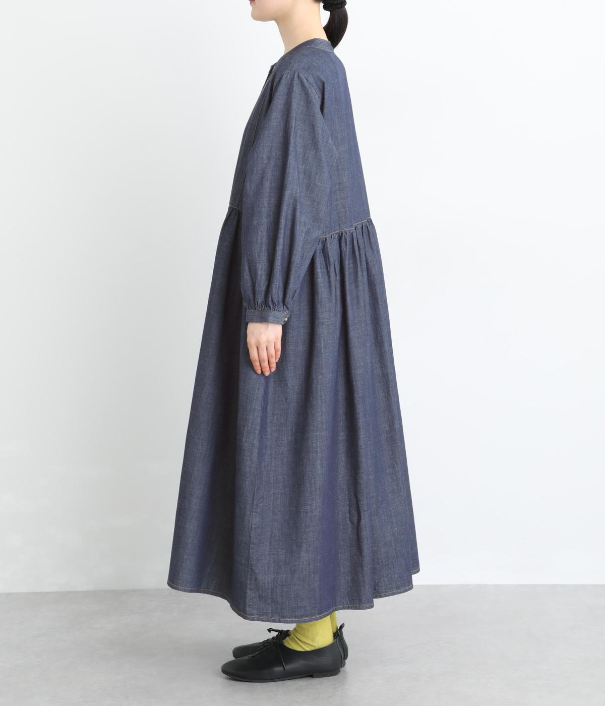 5.5ozデニムビブヨークギャザーワンピース(ネイビー-F)