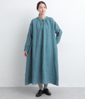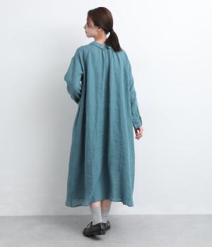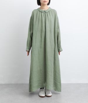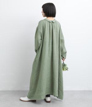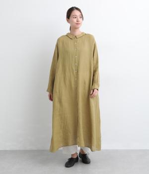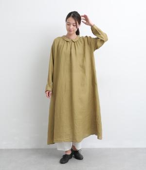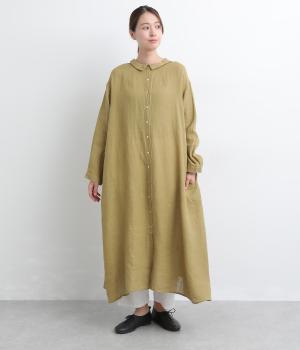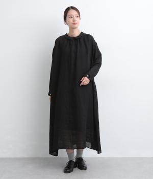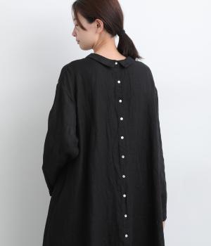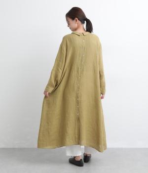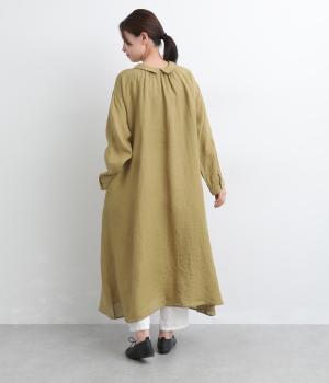 軽やかな素材感を活かしてふわっとしたAラインシルエットに仕立てました。ボタンあきとギャザー寄せ、どちらもたのしめる前後2wayで、気分によってアレンジが可能。ロングだけど足元がすっきり見える丈感でブーツ合わせもたのしめます。