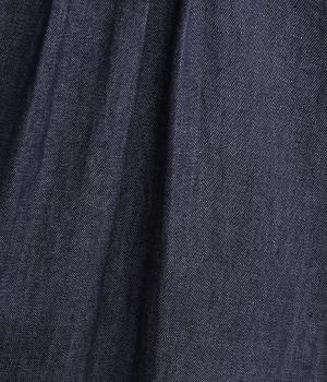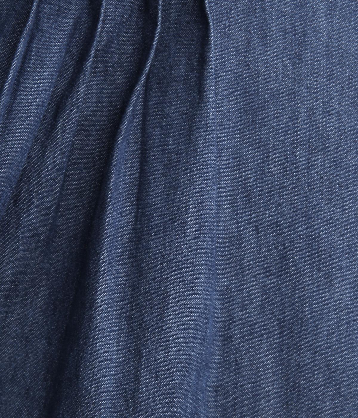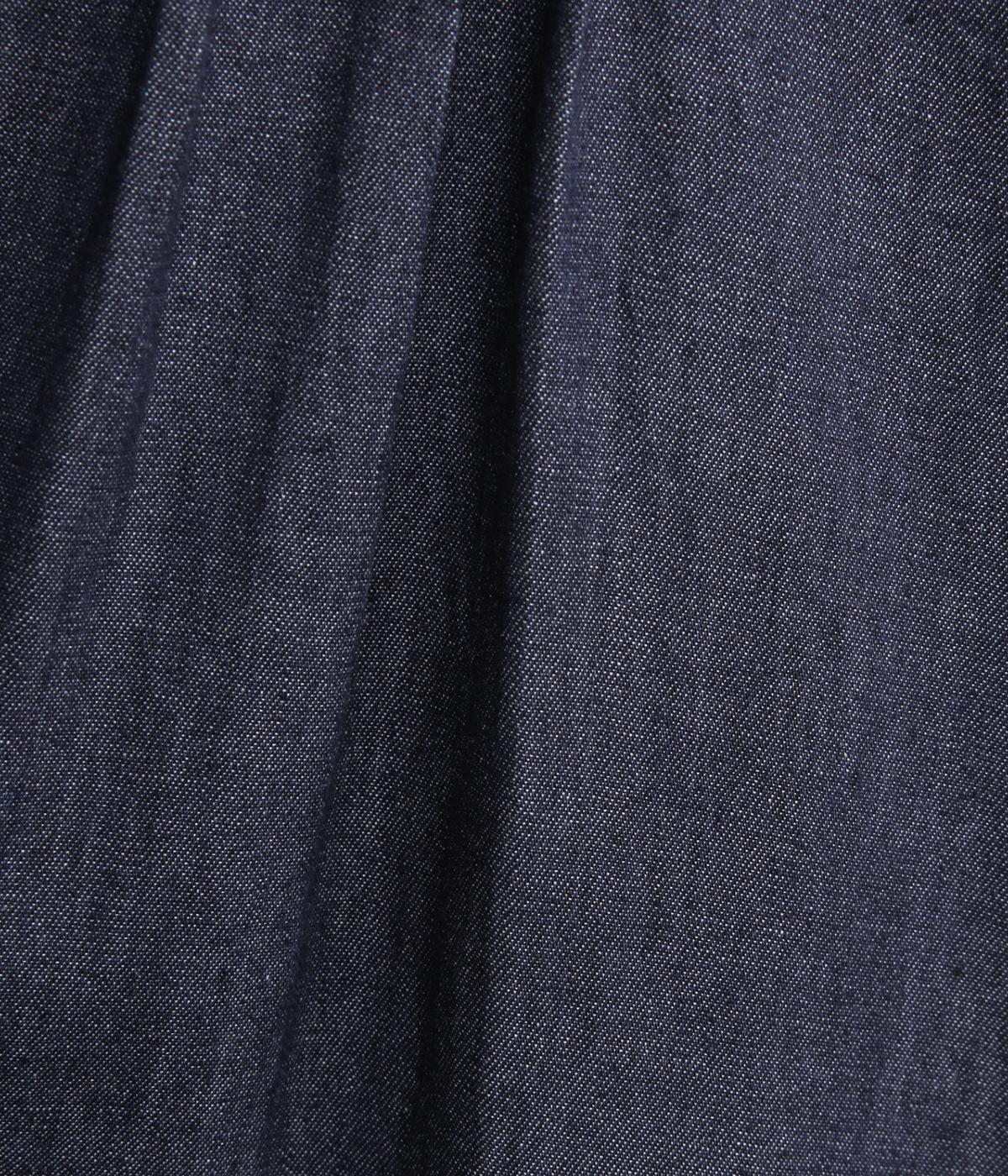 やわらかな手ざわりをもつ、やや薄手のコットンデニムを使用しています。うっすらと光沢のある表面がカジュアルさを抑えるポイントに。
