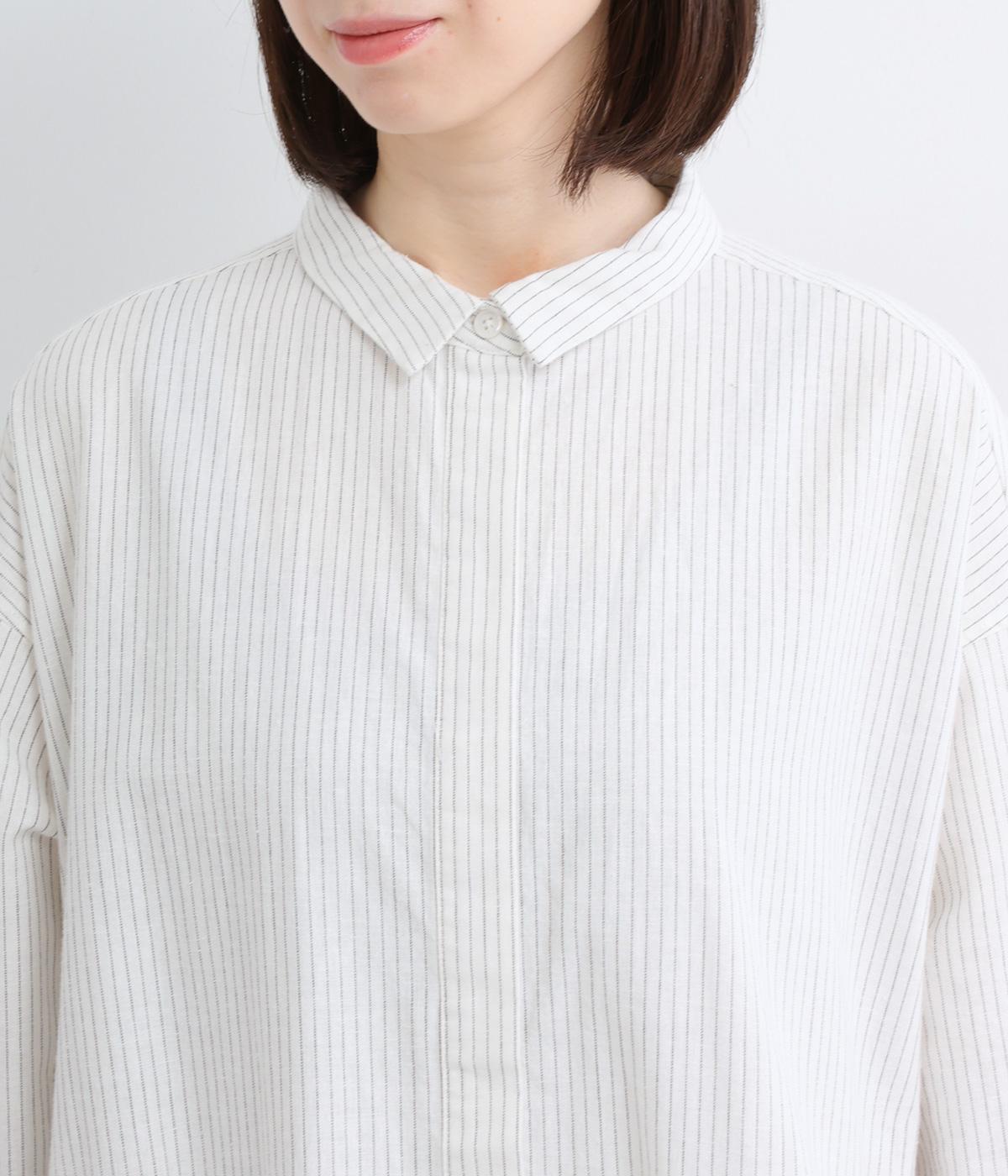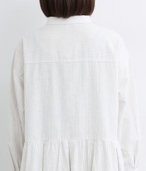 さらりとしてソフトな肌触りが心地よいコットンリネン生地を使用しています。使い勝手のいい薄めの中厚手生地で、レイヤードするなど長く着まわせます。