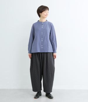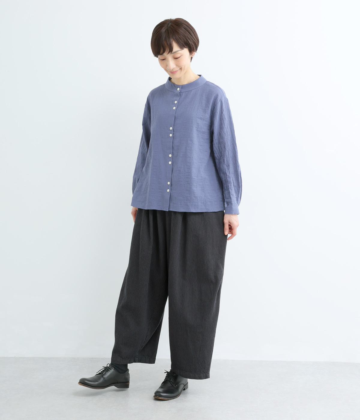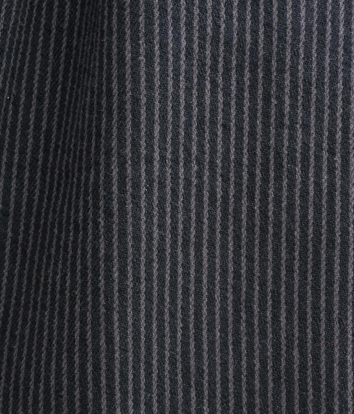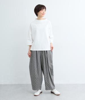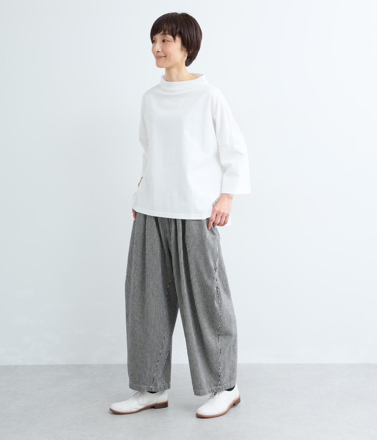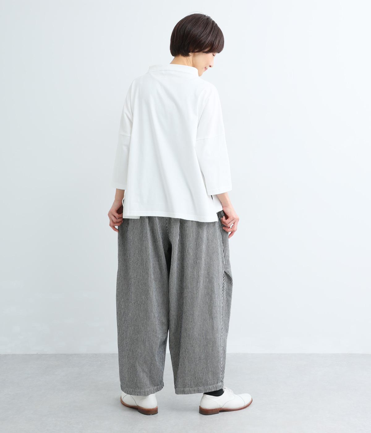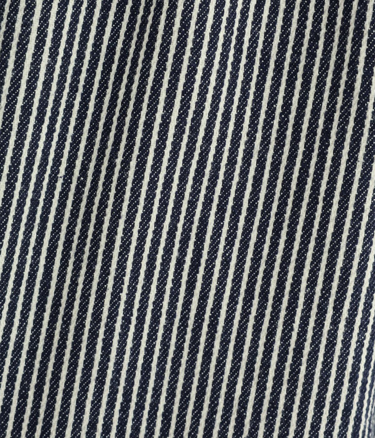 ヒッコリーストライプの爽やかな表情が目を引くデザインです。ウエストにはタックを多めに入れ、ゆったりとしたはき心地に。裾に向かってやや絞ったバレルレッグのシルエットが、脚のラインをきれいに引き立て、バランスのよい着こなしを叶えます。