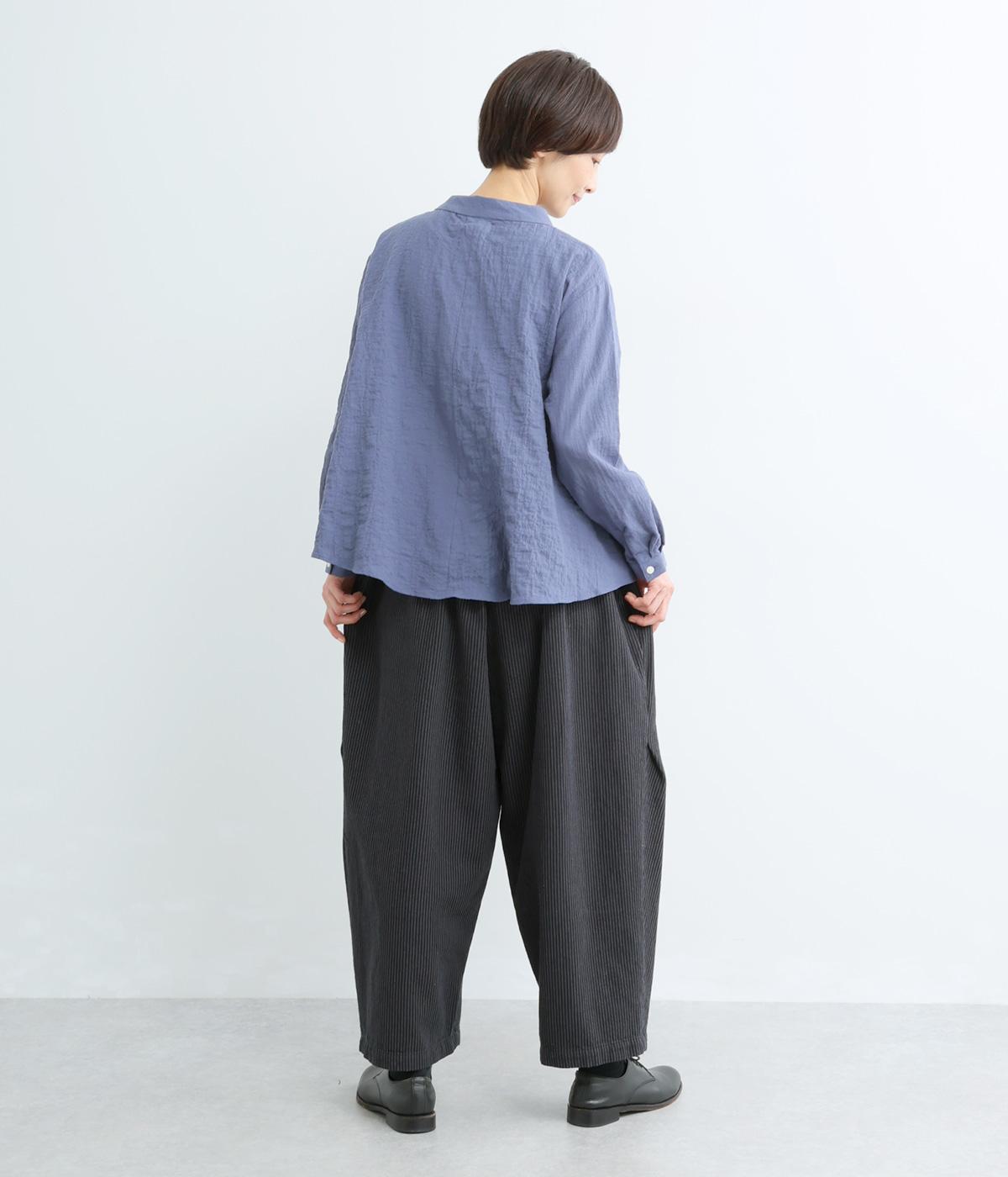 くたっとやわらかな風合いが魅力の、コットンデニム素材を使用しました。ごわつきにくく、しなやかになじむ快適なはき心地です。生地に見られるネップ感が、奥行きのある表情をを添えています。