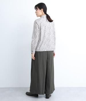 腰位置の切り替えやポケットがさり気ないアクセントになったフレアパンツです。軽やかな生地が風になびき、自然なドレープが生まれて優雅な印象も。ウエストはオールゴム&内紐入りでフィット感の微調整もききます。