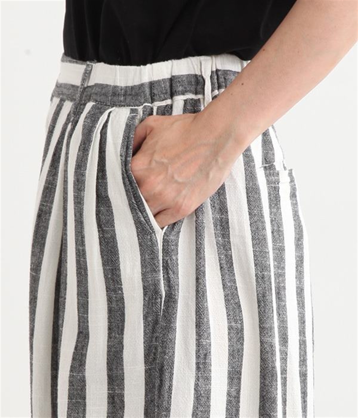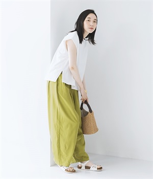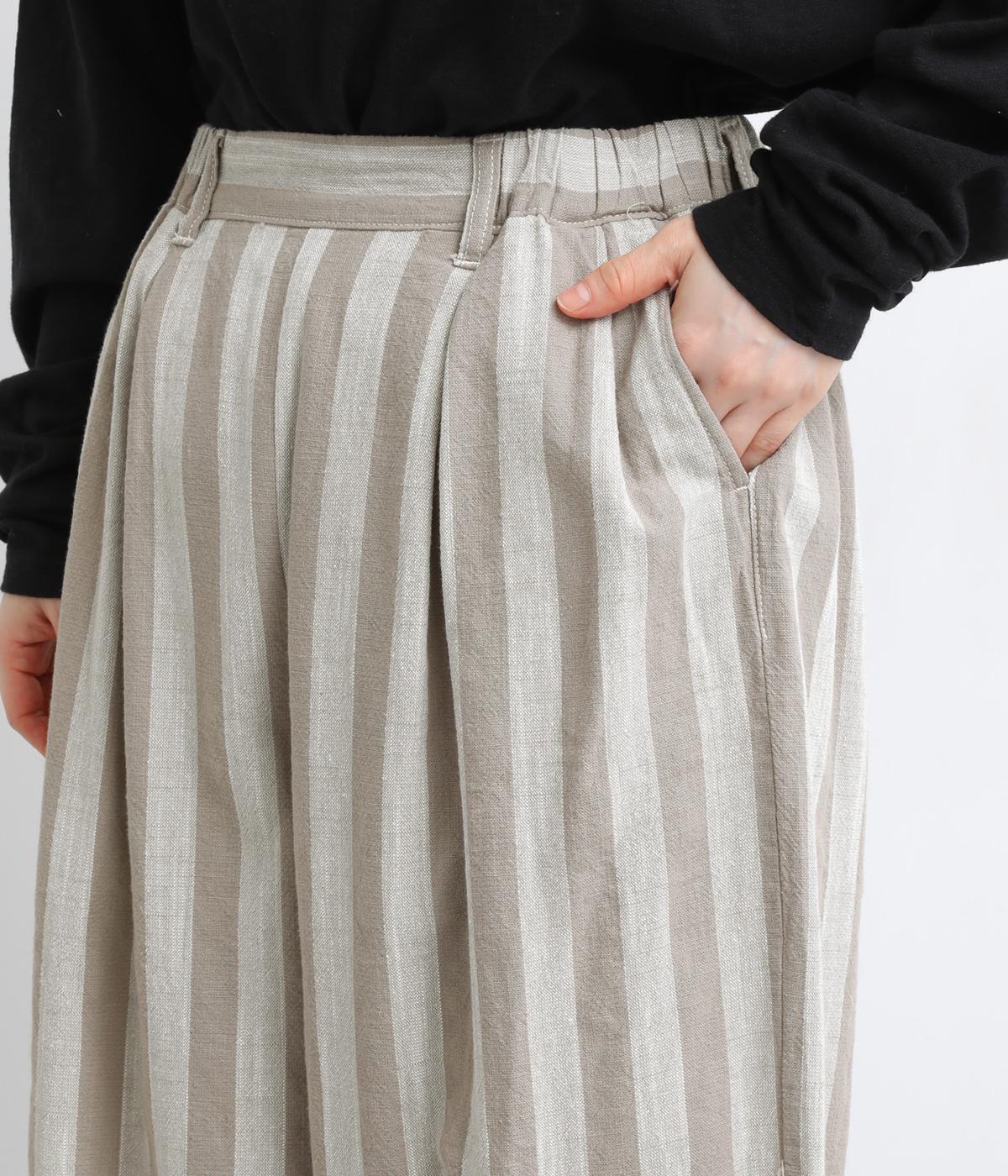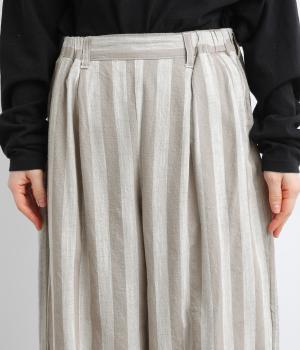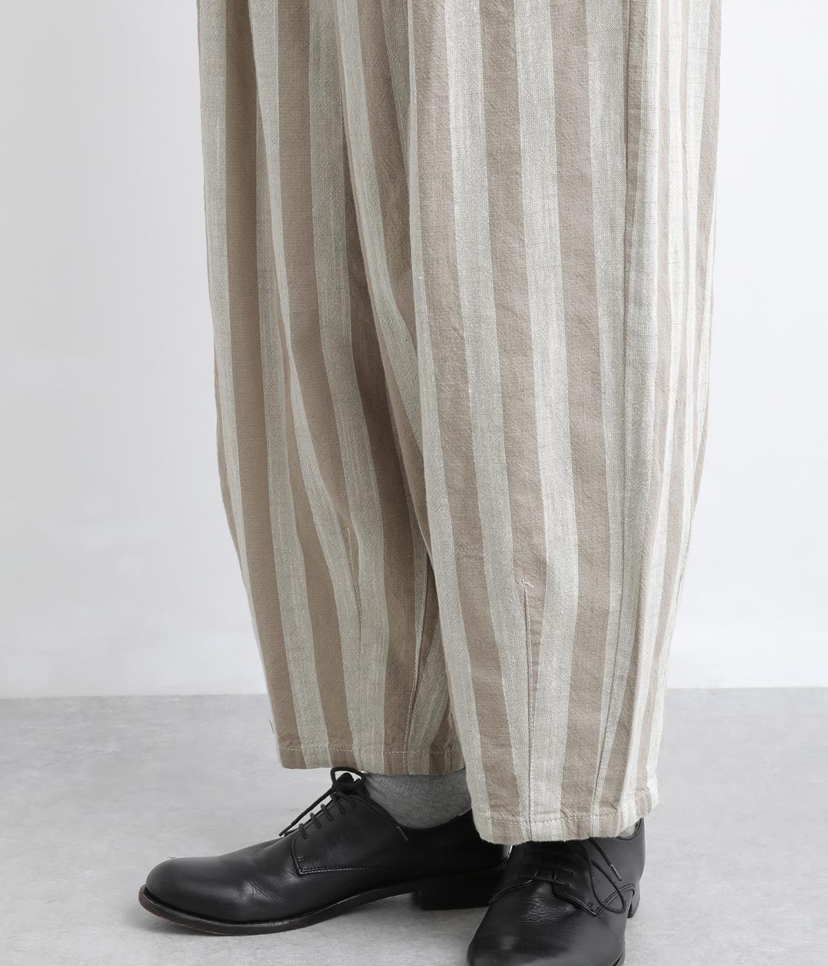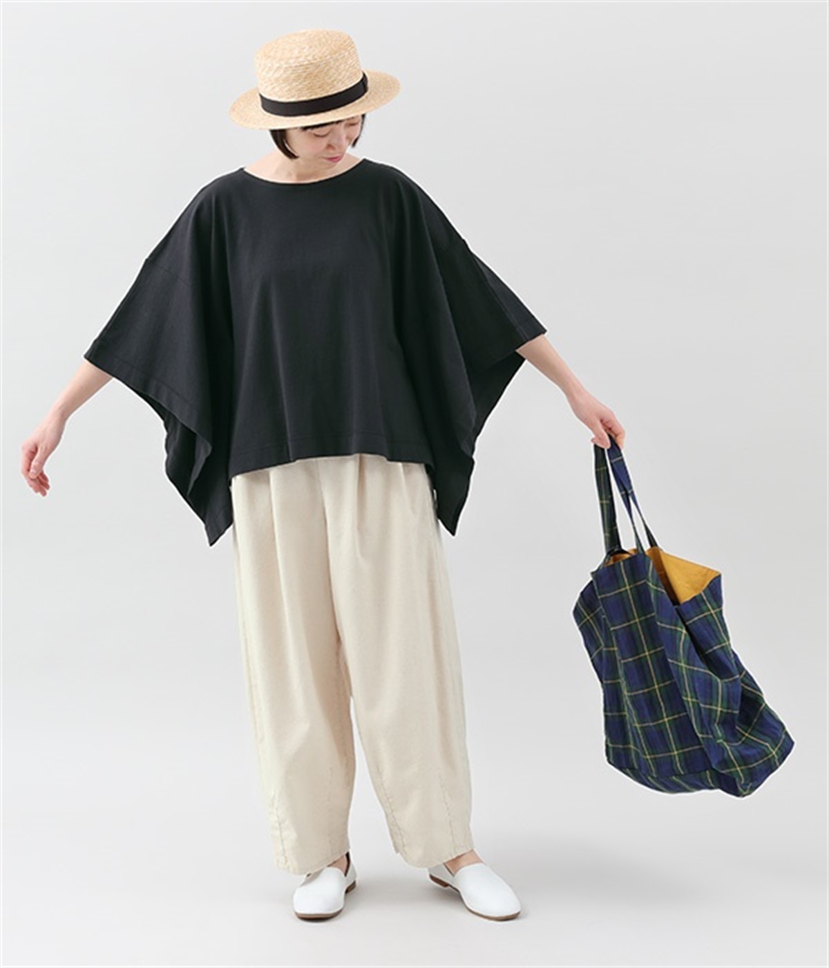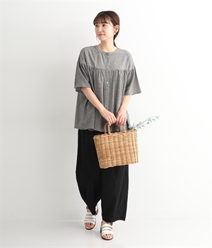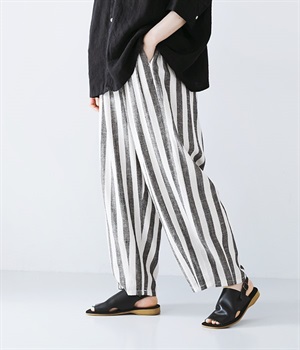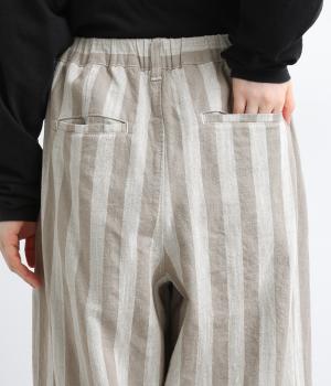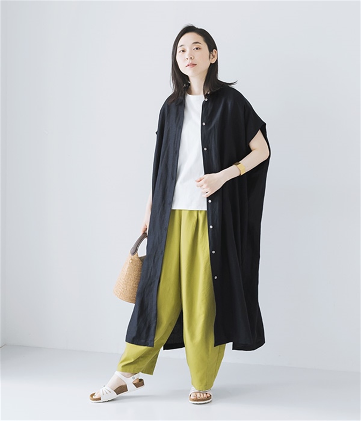 さりげなく浮かぶネップが素朴な表情を生む、コットンリネン生地で仕立てました。やわらかな肌あたりに、ほんのりとしたシャリ感が合わさり、さらりと快適なはき心地です。着るほどに風合いの変化をたのしめるのも魅力。
