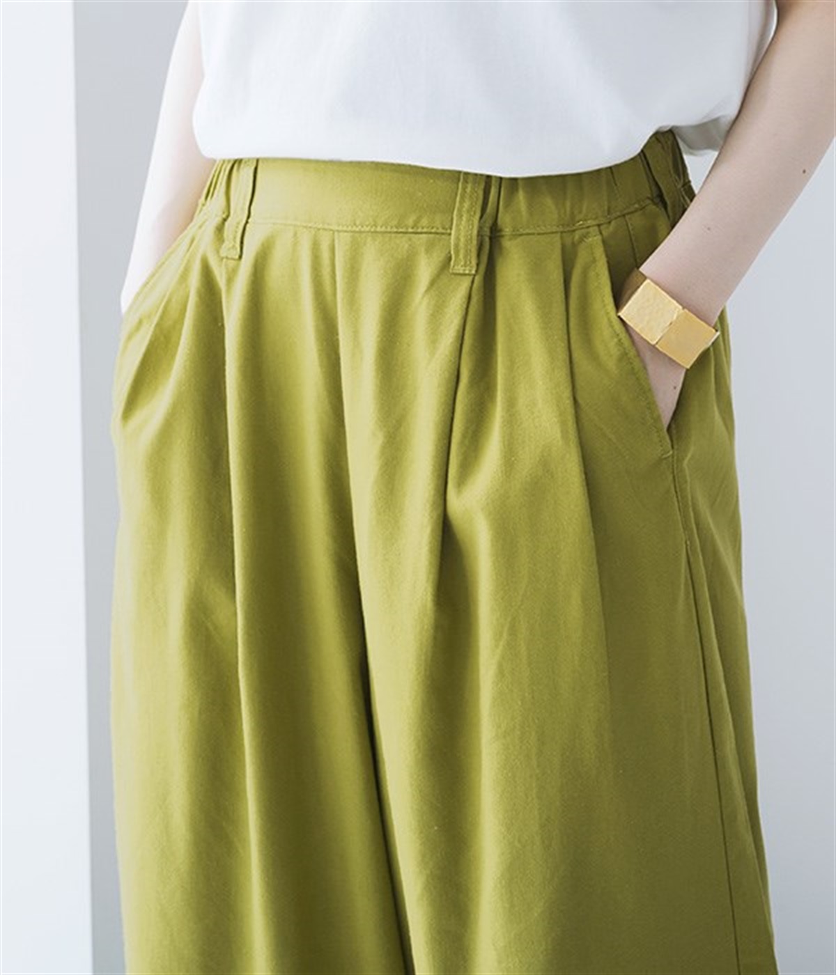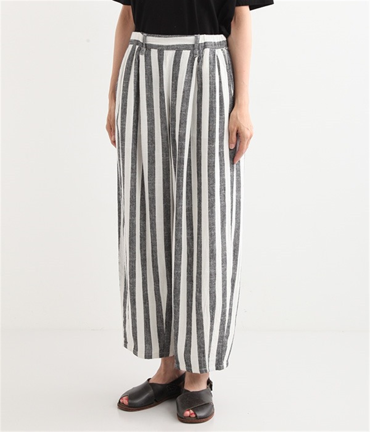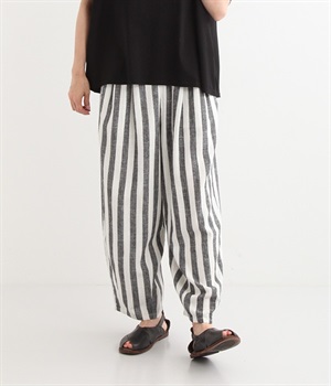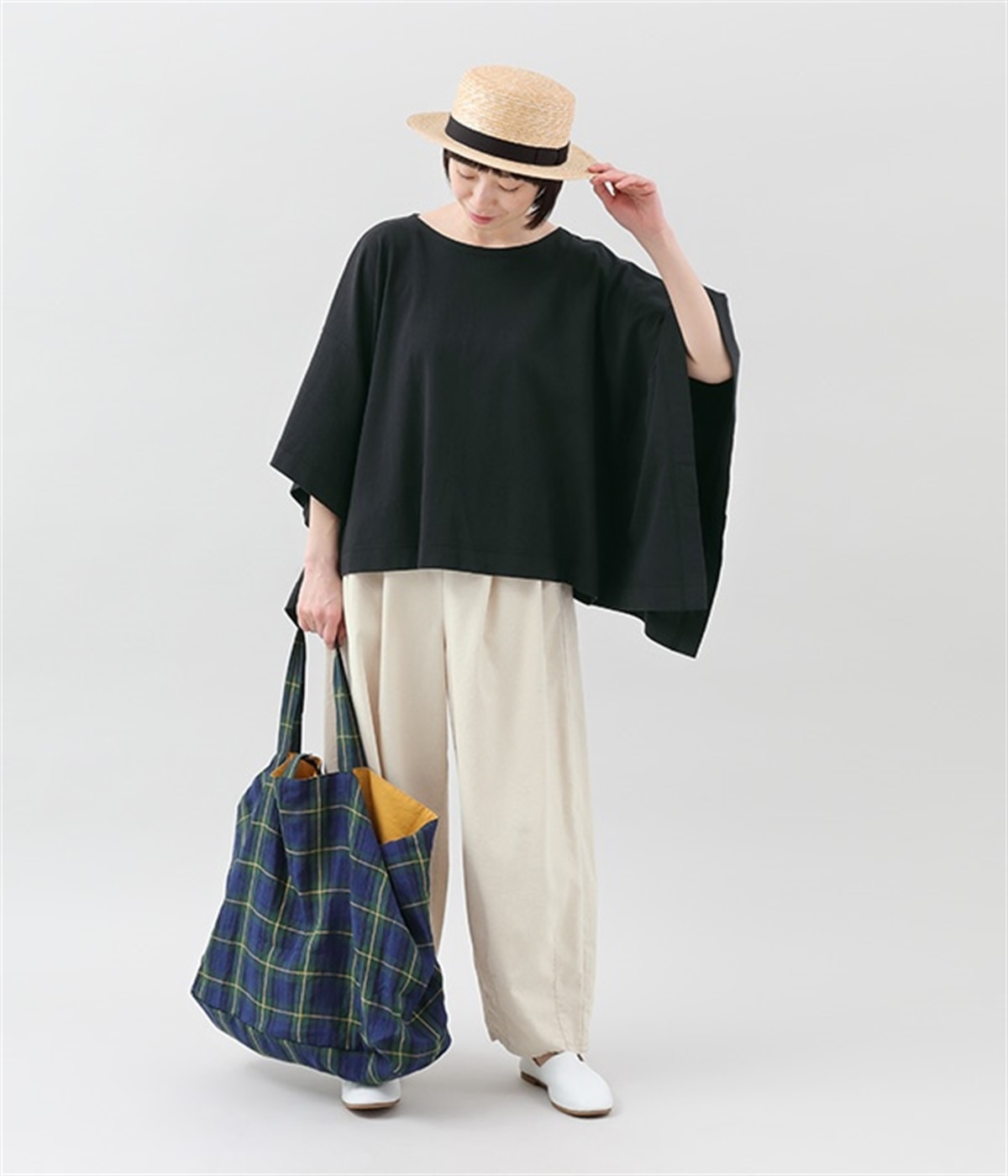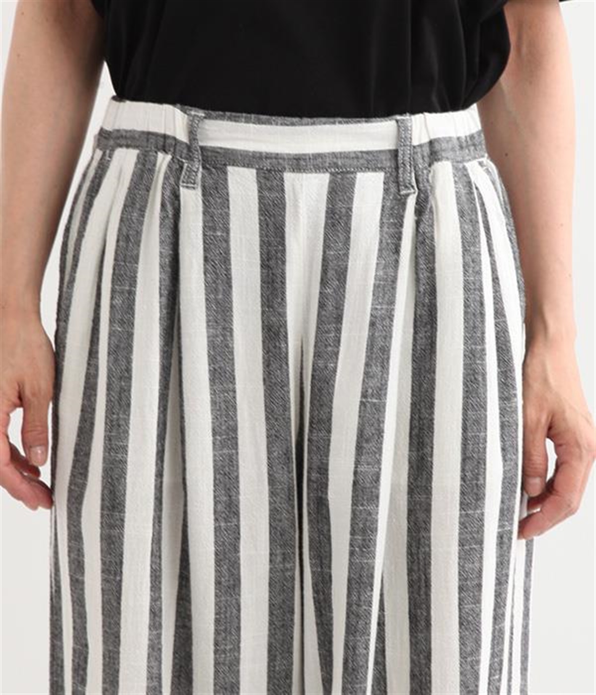 さりげなく浮かぶネップが素朴な表情を生む、コットンリネン生地で仕立てました。やわらかな肌あたりに、ほんのりとしたシャリ感が合わさり、さらりと快適なはき心地です。着るほどに風合いの変化をたのしめるのも魅力。