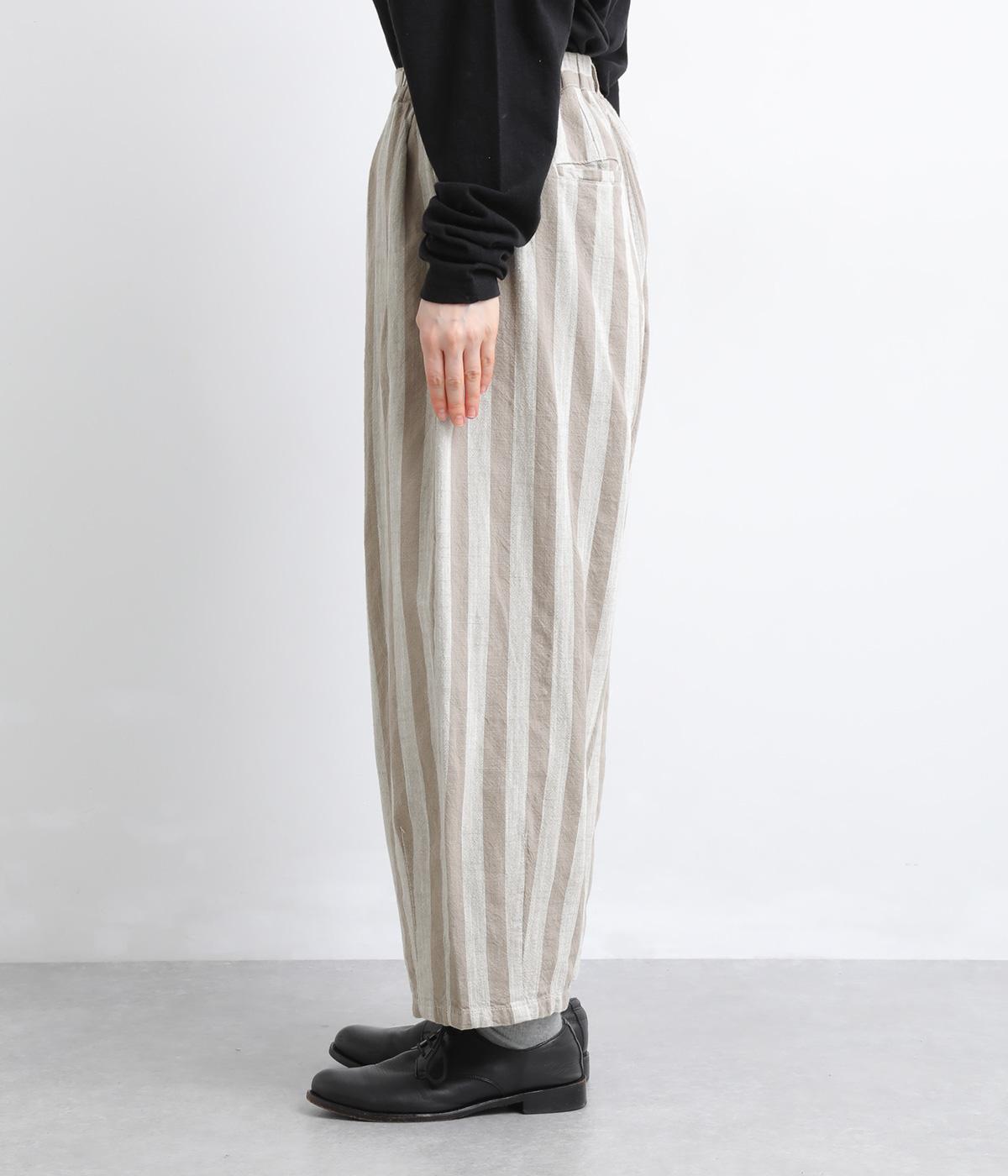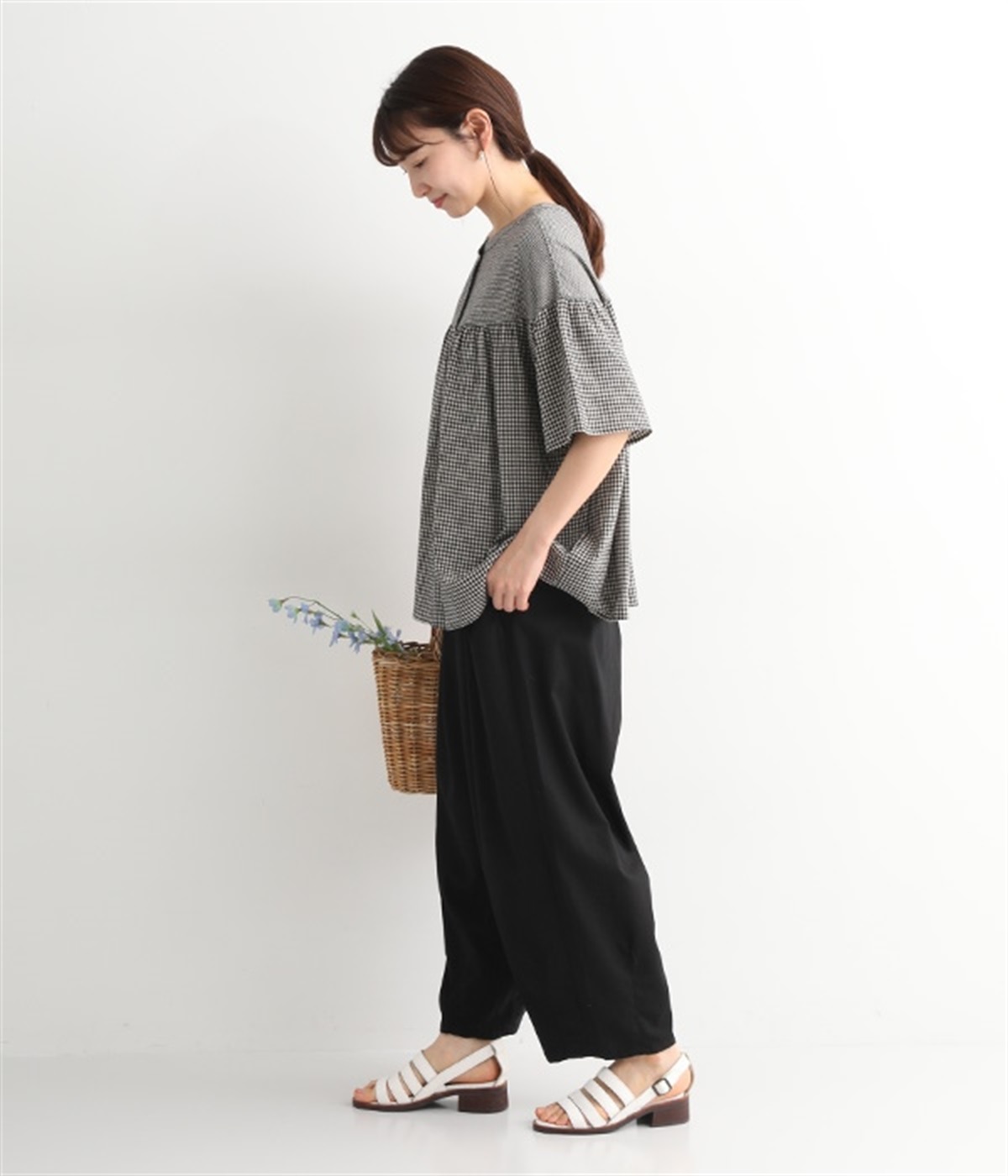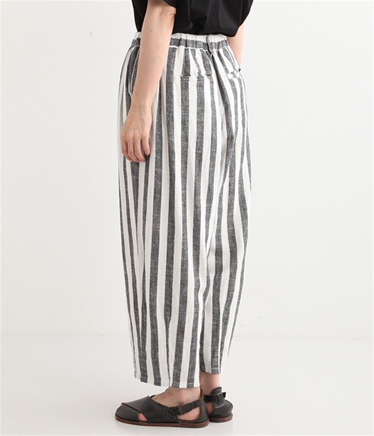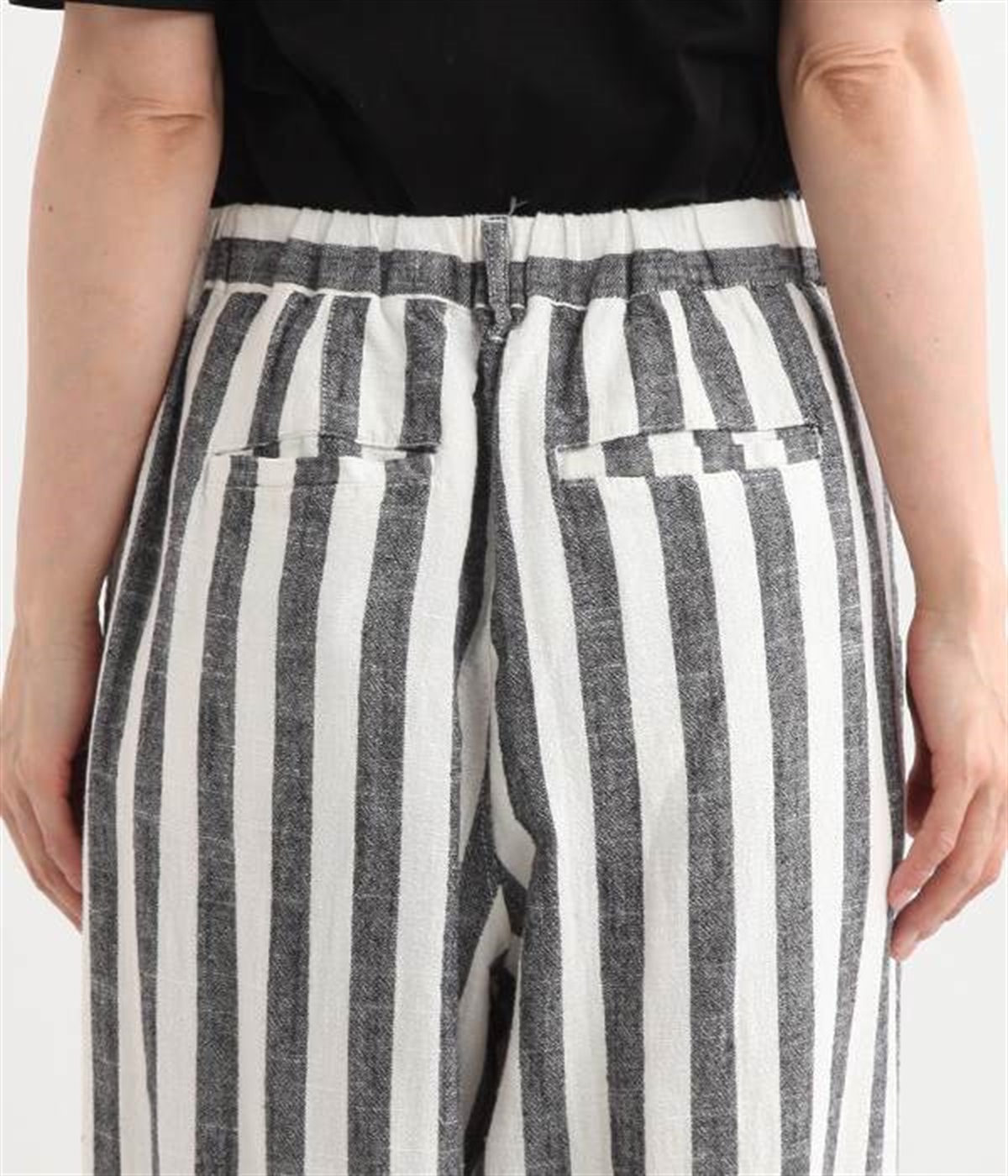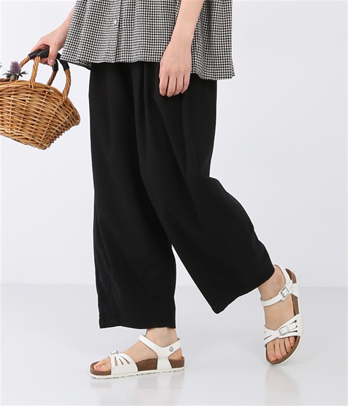 さりげなく浮かぶネップが素朴な表情を生む、コットンリネン生地で仕立てました。やわらかな肌あたりに、ほんのりとしたシャリ感が合わさり、さらりと快適なはき心地です。着るほどに風合いの変化をたのしめるのも魅力。