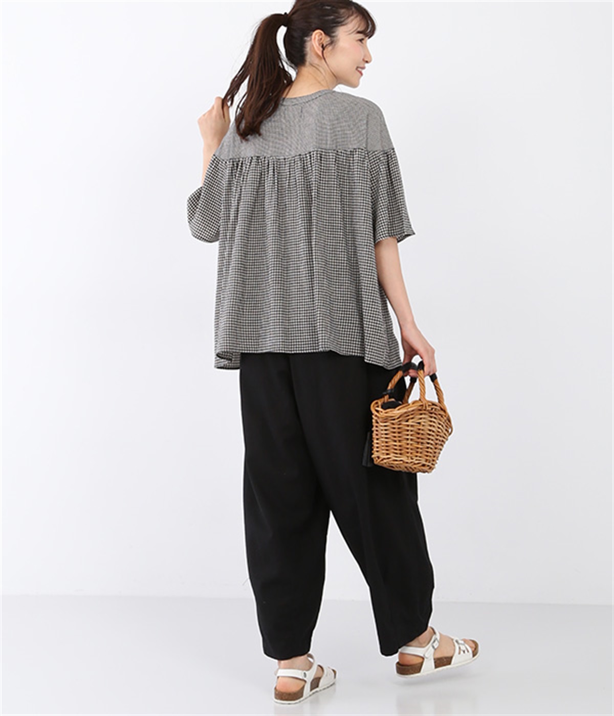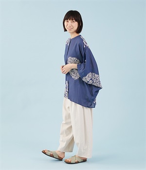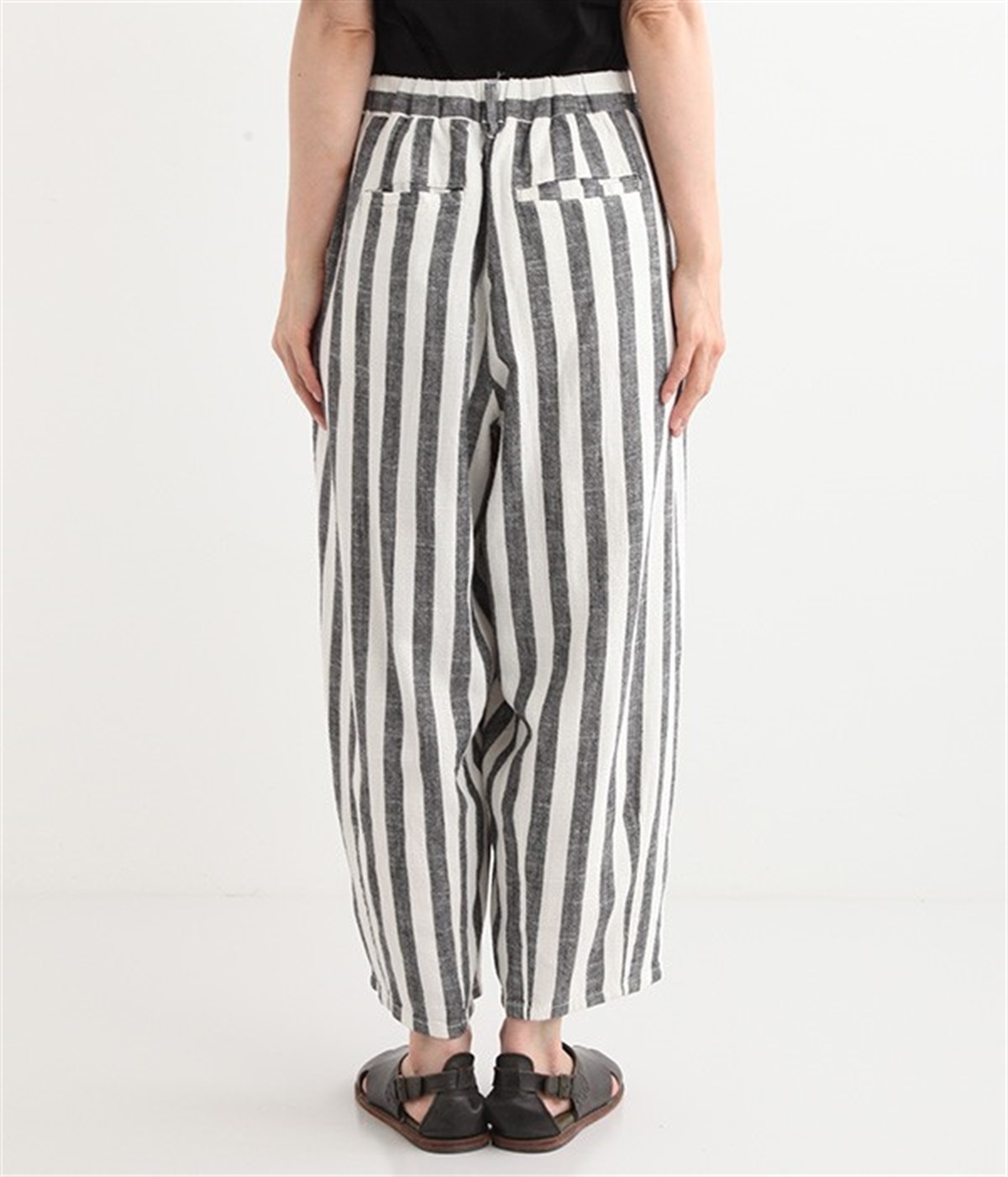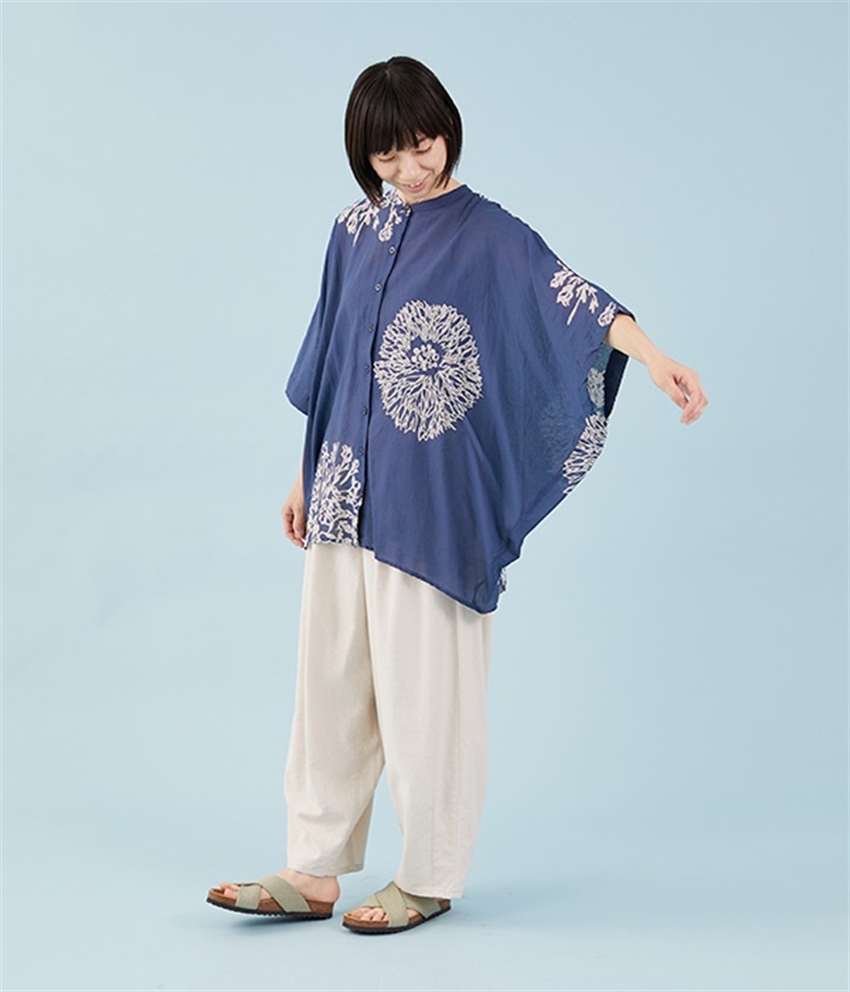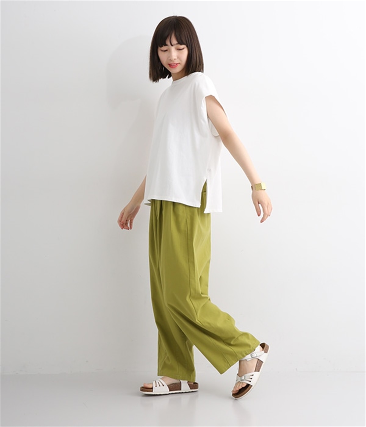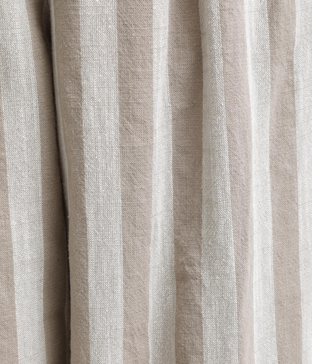 さりげなく浮かぶネップが素朴な表情を生む、コットンリネン生地で仕立てました。やわらかな肌あたりに、ほんのりとしたシャリ感が合わさり、さらりと快適なはき心地です。着るほどに風合いの変化をたのしめるのも魅力。