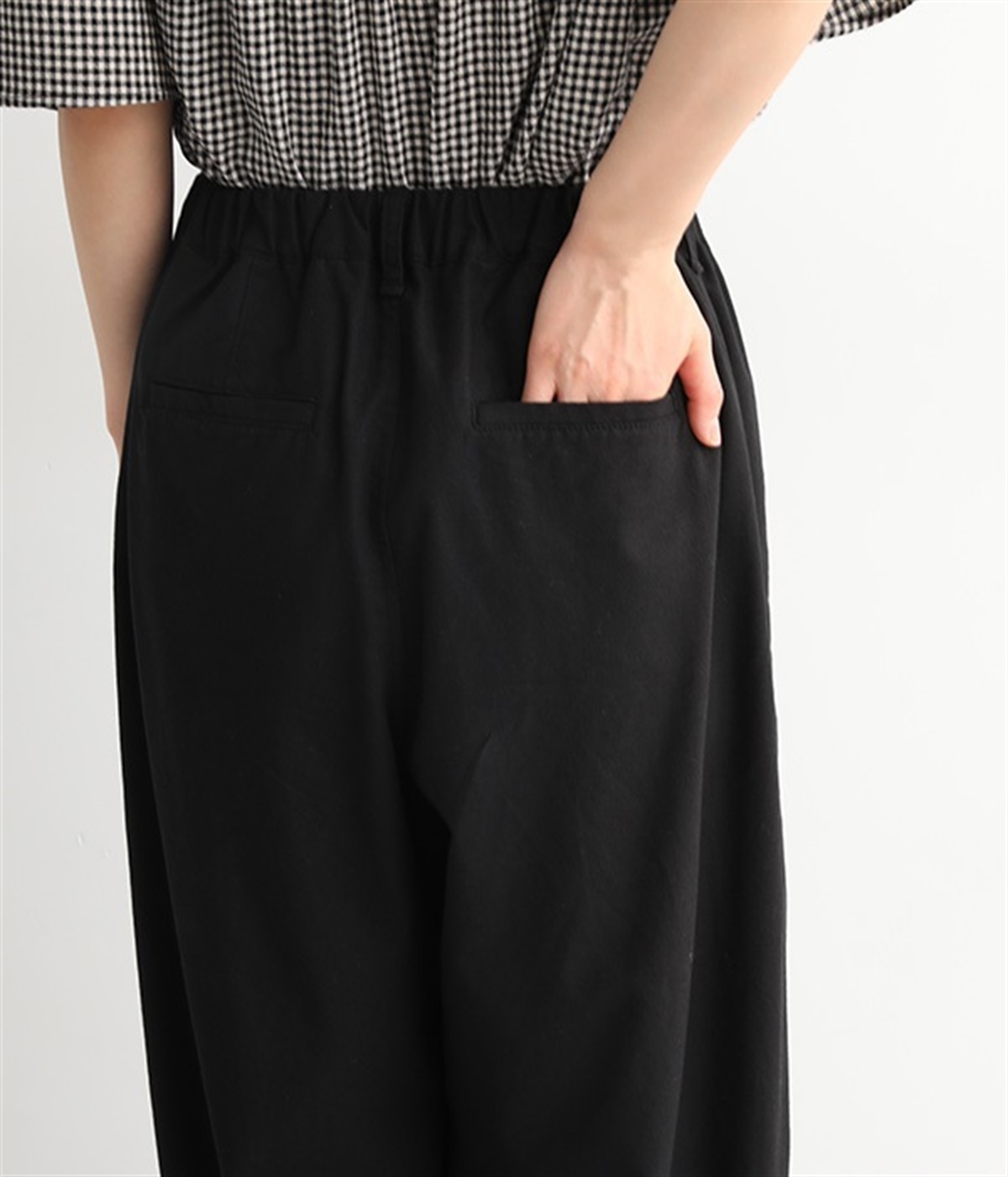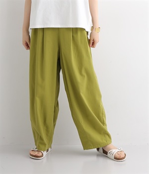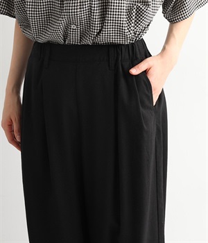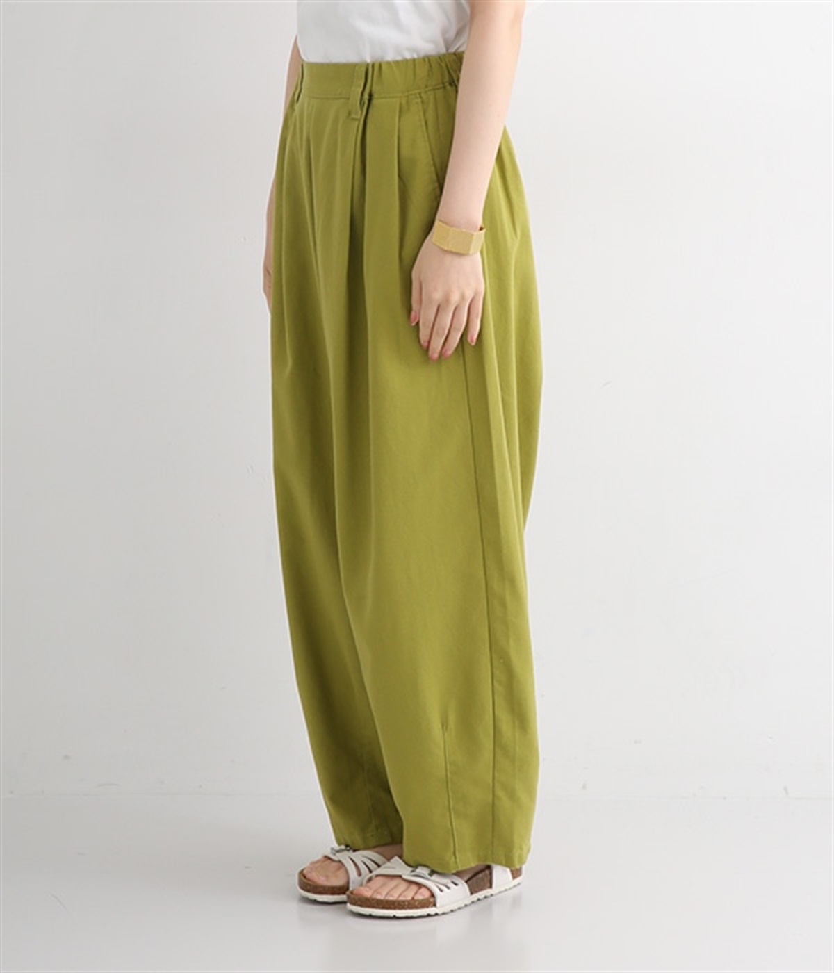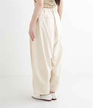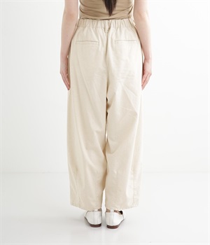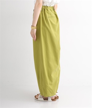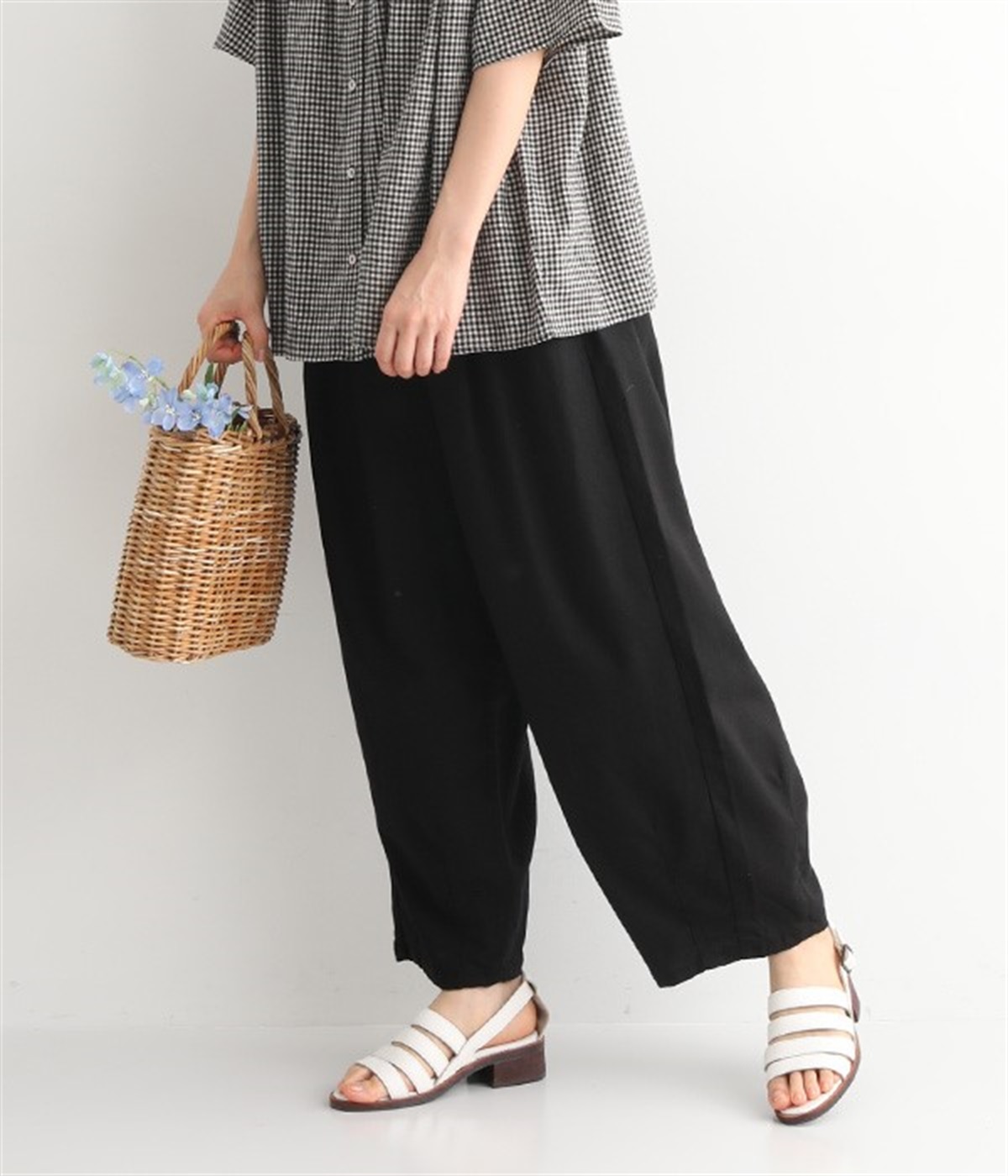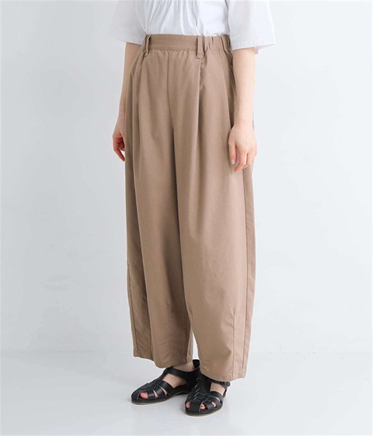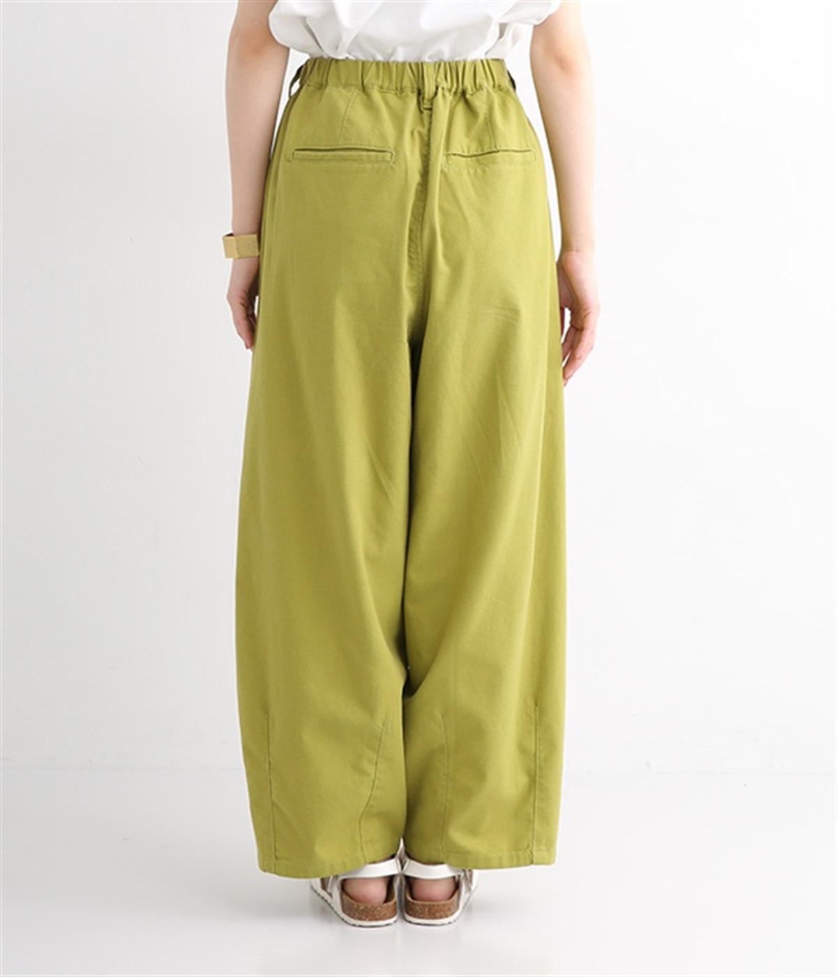 ヒップや太ももまわりにゆとりを持たせ、足首に向かって絞ったサーカスシルエットのパンツです。丸みのあるフォルムが体のラインをやさしくつつみ込み、こなれた印象を演出。ベルトループつきなので、ベルトやスカーフを合わせたコーディネートもたのしめます。