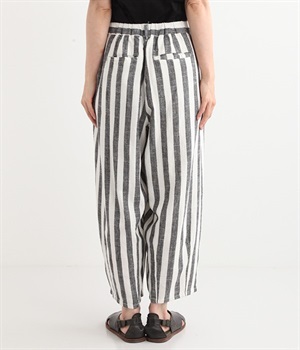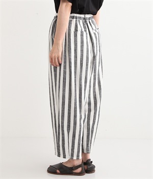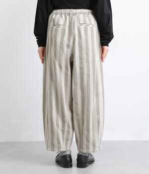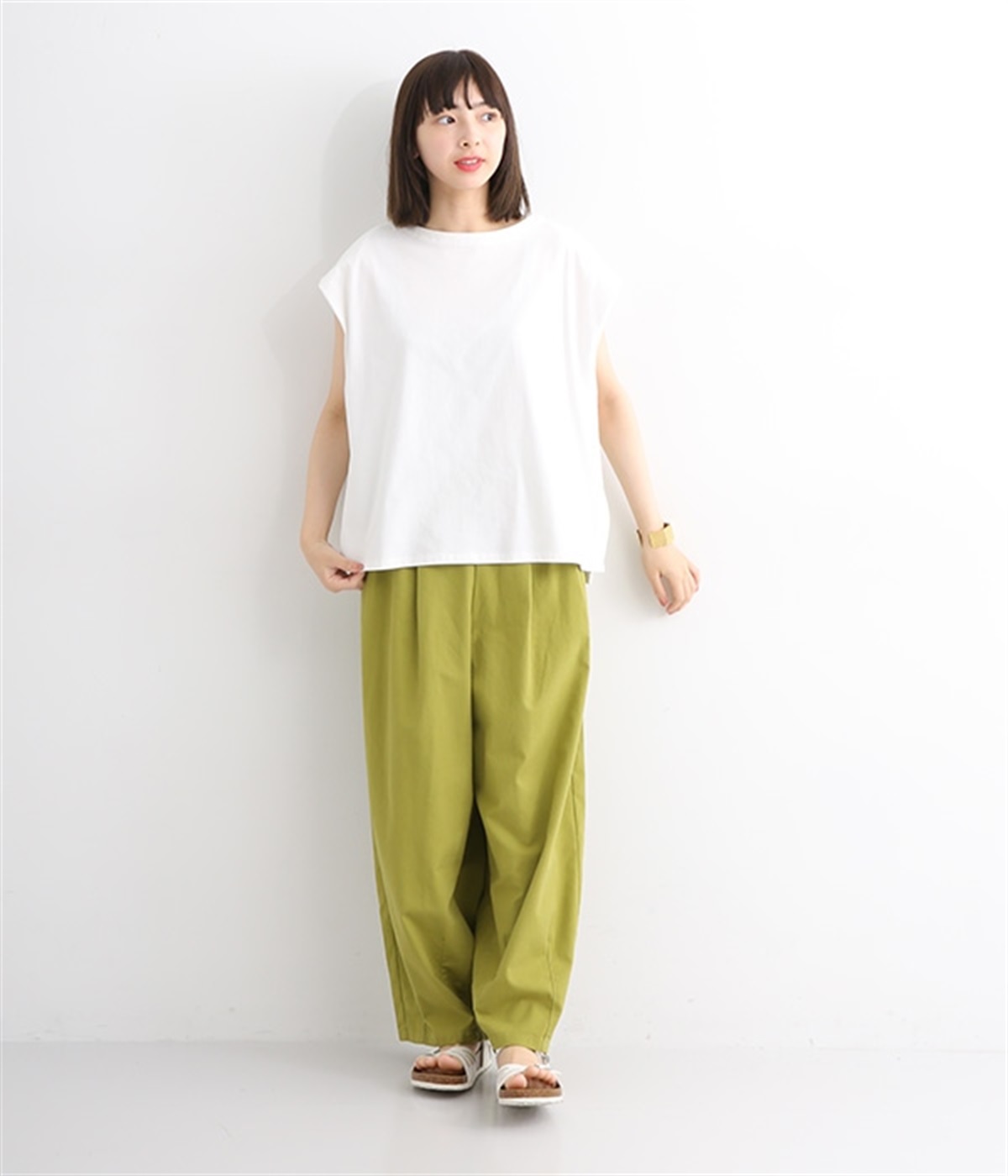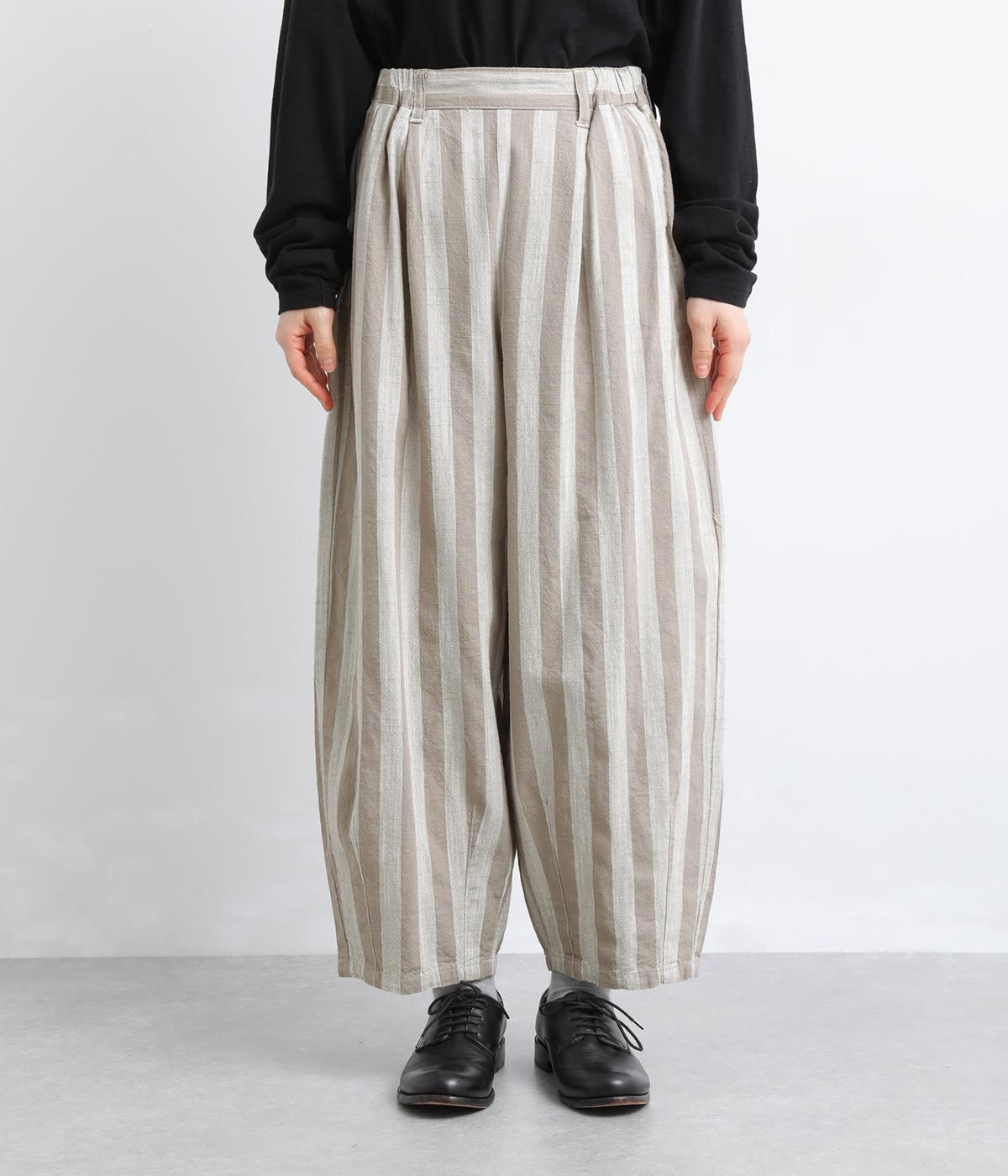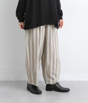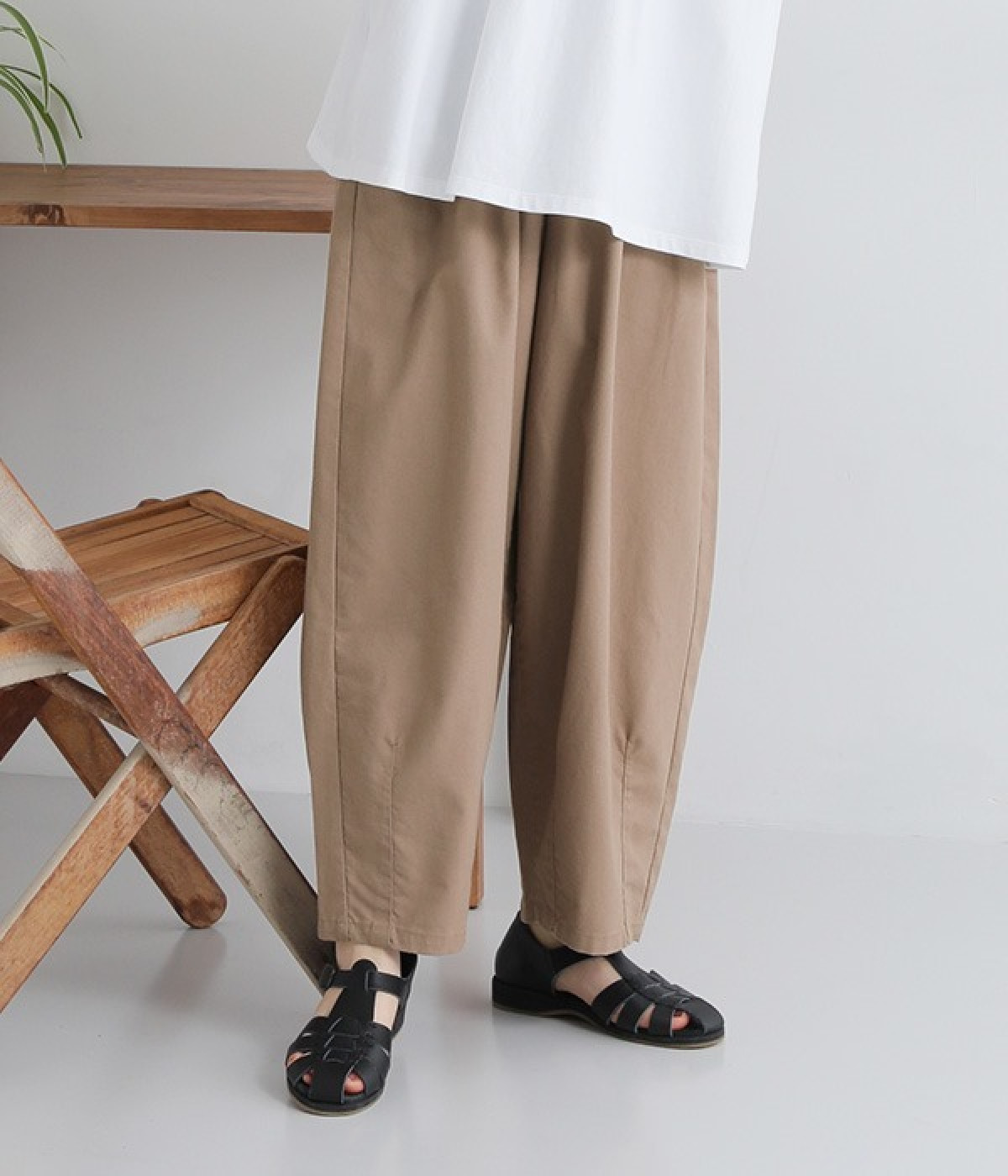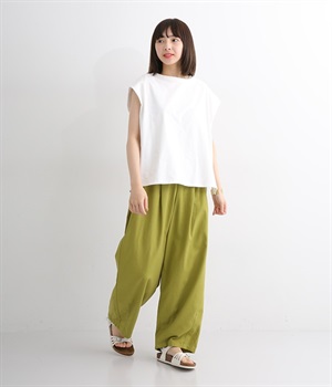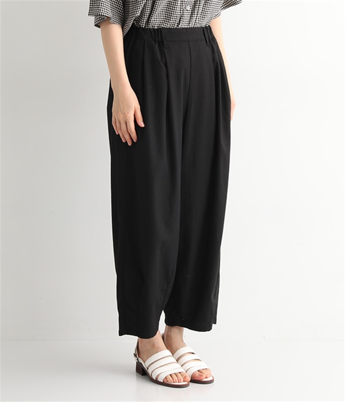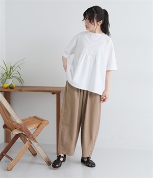 ヒップや太ももまわりにゆとりを持たせ、足首に向かって絞ったサーカスシルエットのパンツです。丸みのあるフォルムが体のラインをやさしくつつみ込み、こなれた印象を演出。ベルトループつきなので、ベルトやスカーフを合わせたコーディネートもたのしめます。