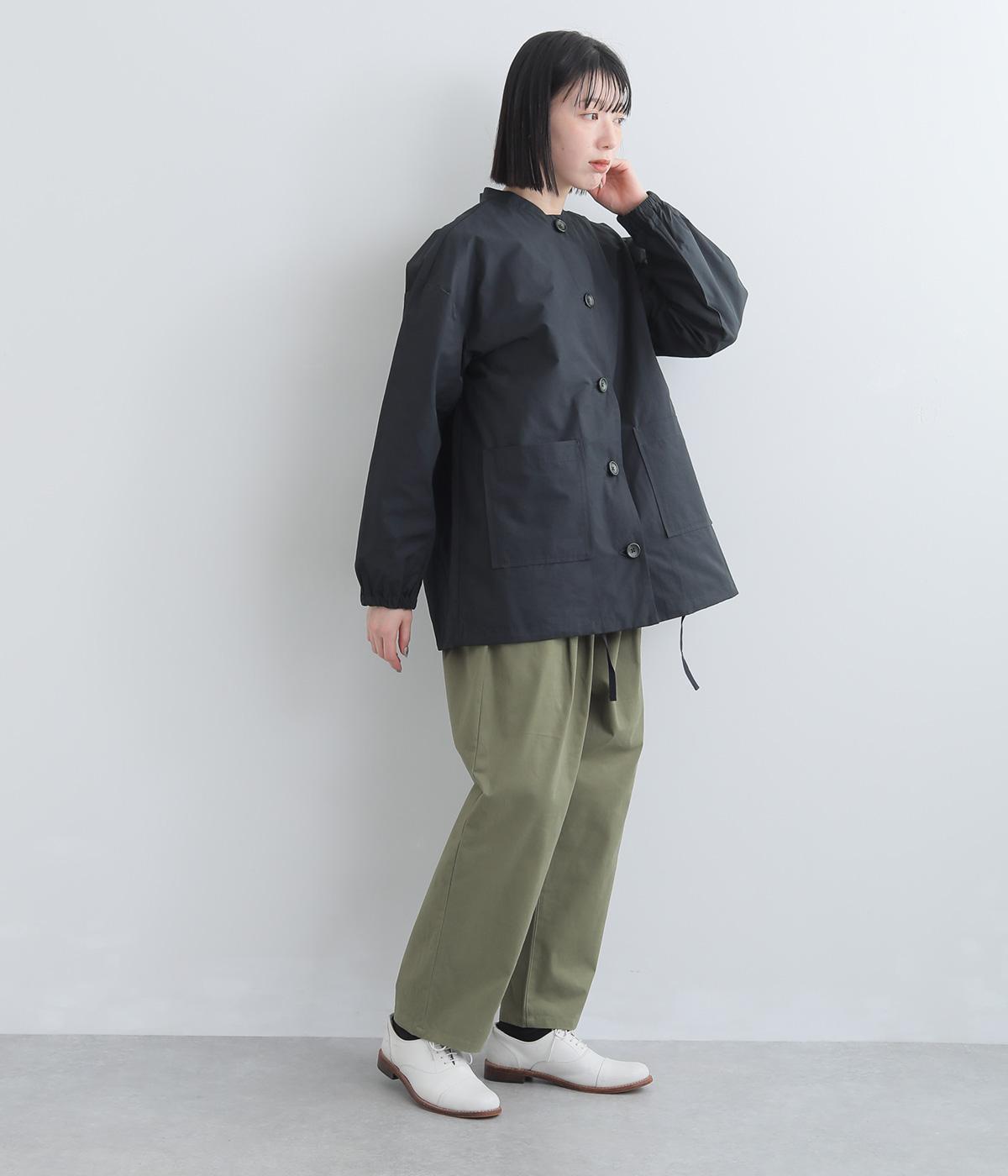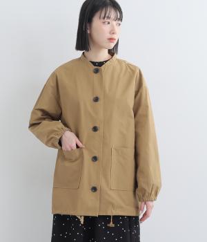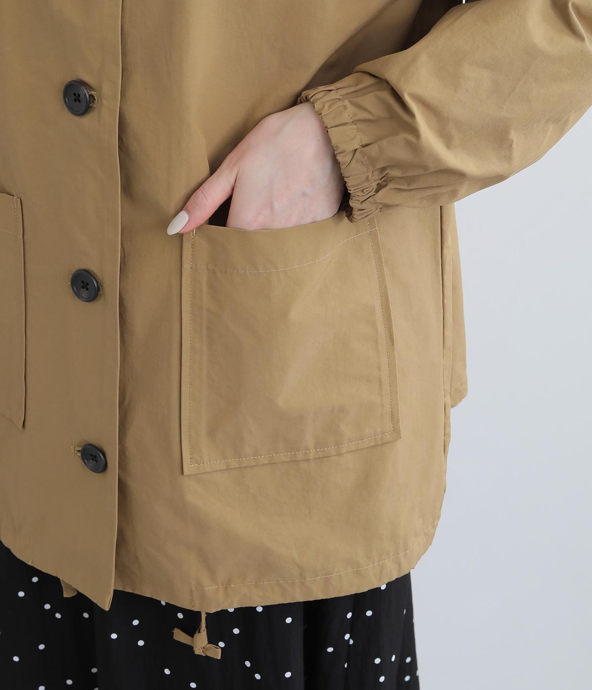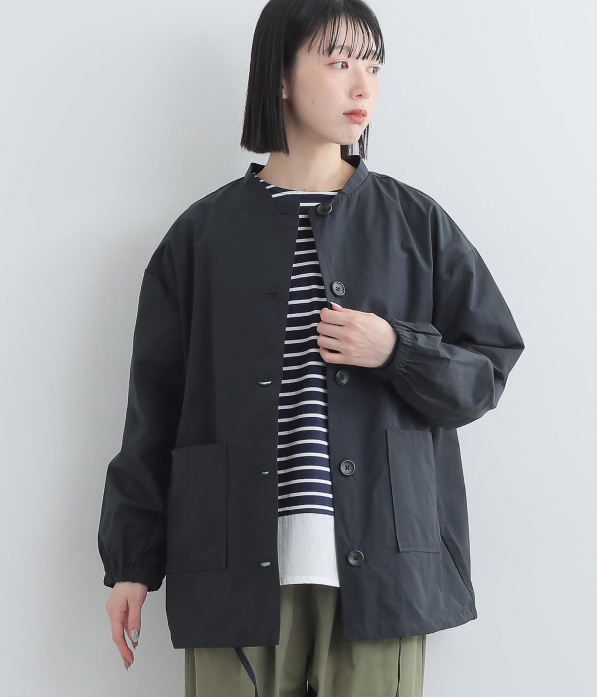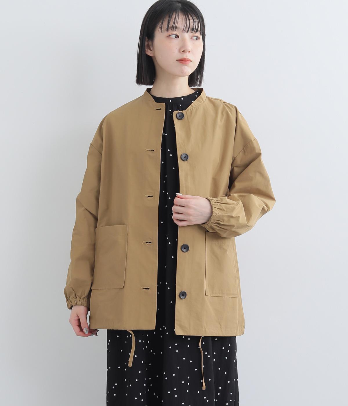 シンプルなデザインの薄手ジャケット。前ボタン仕様で、両サイドに便利なポケットつき。袖口にはゴムを入れて手首にほどよくフィットします。裾のドロスト紐を絞れば、シルエットをコンパクトに見せることもできます。