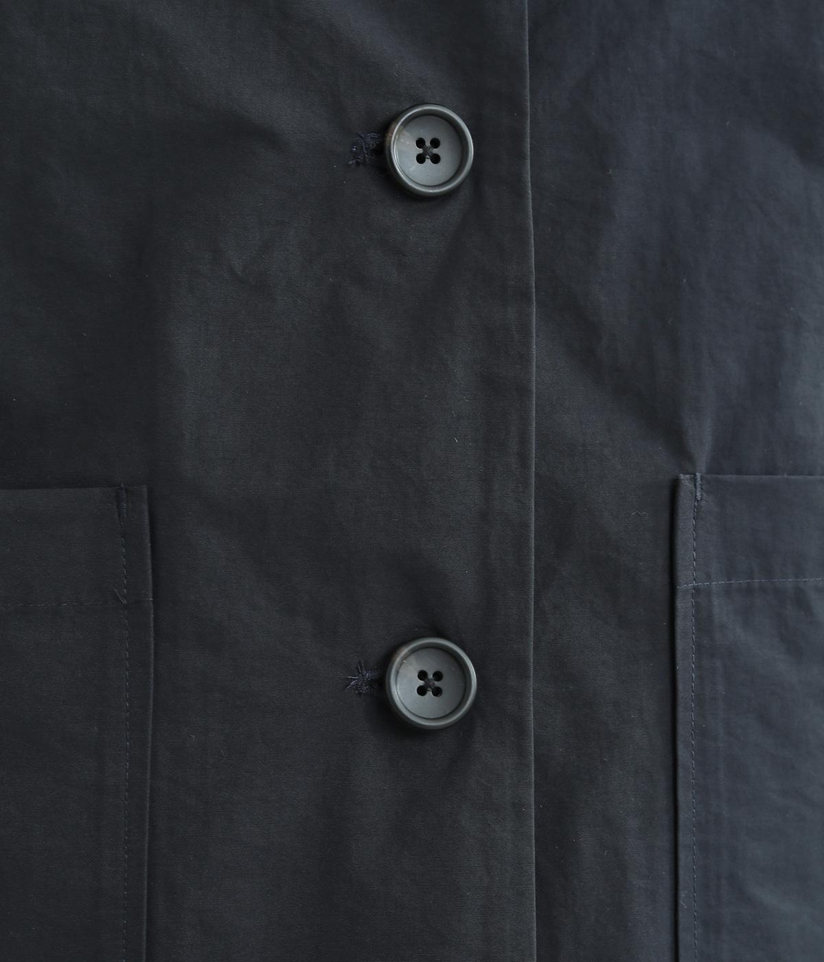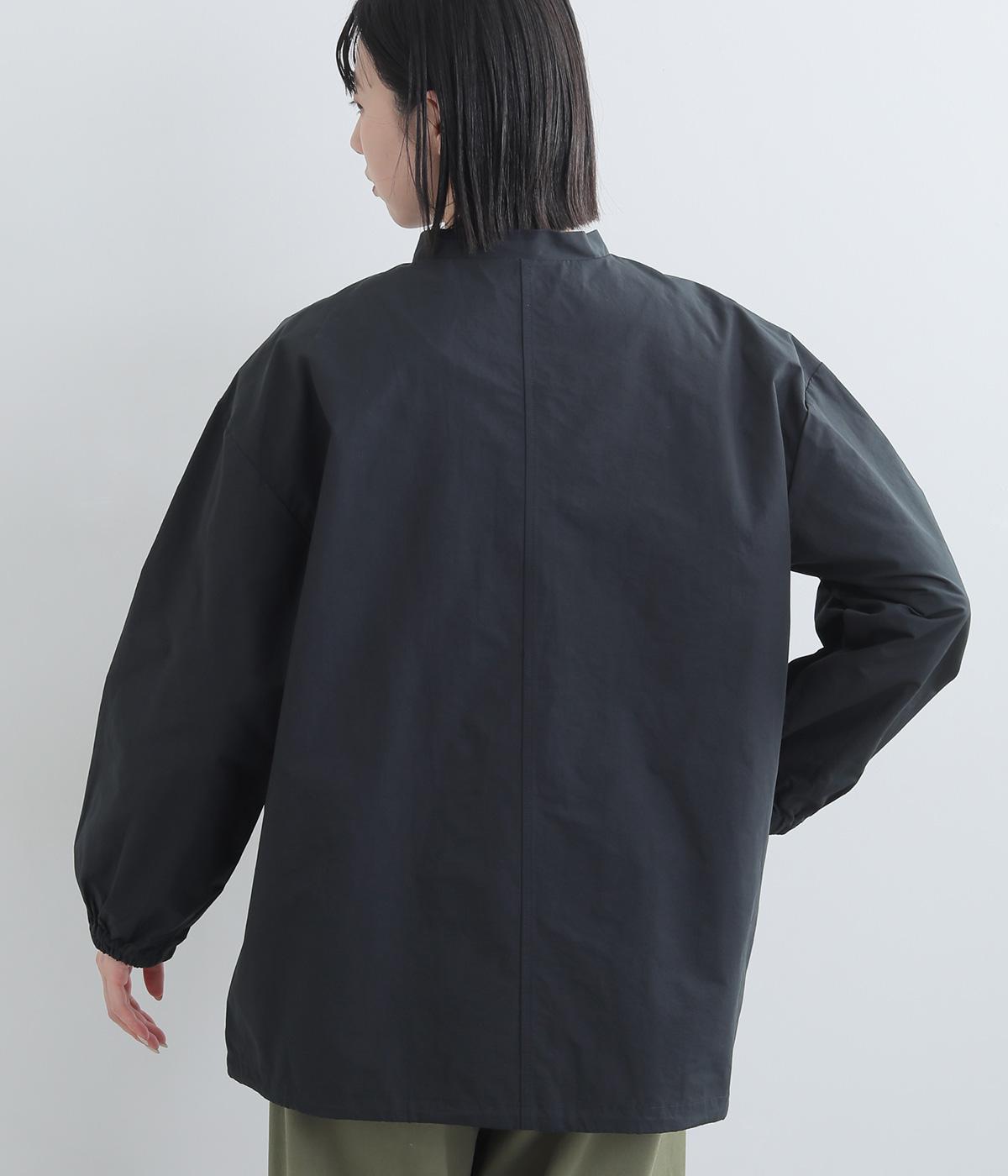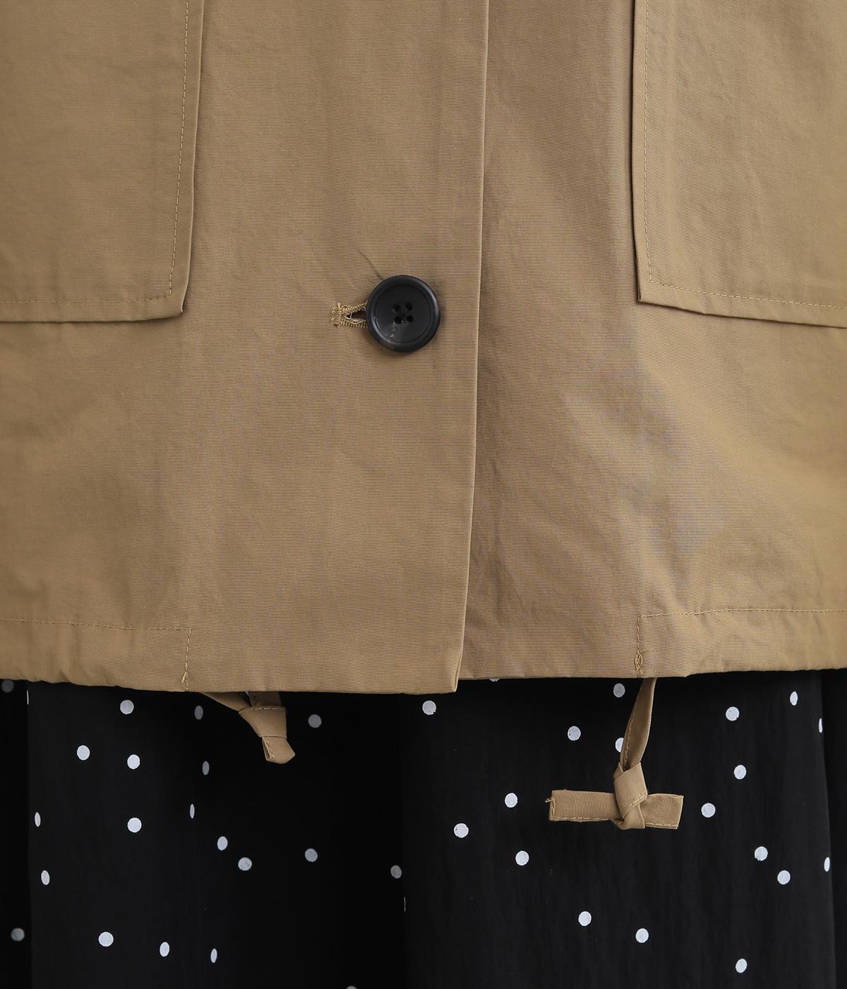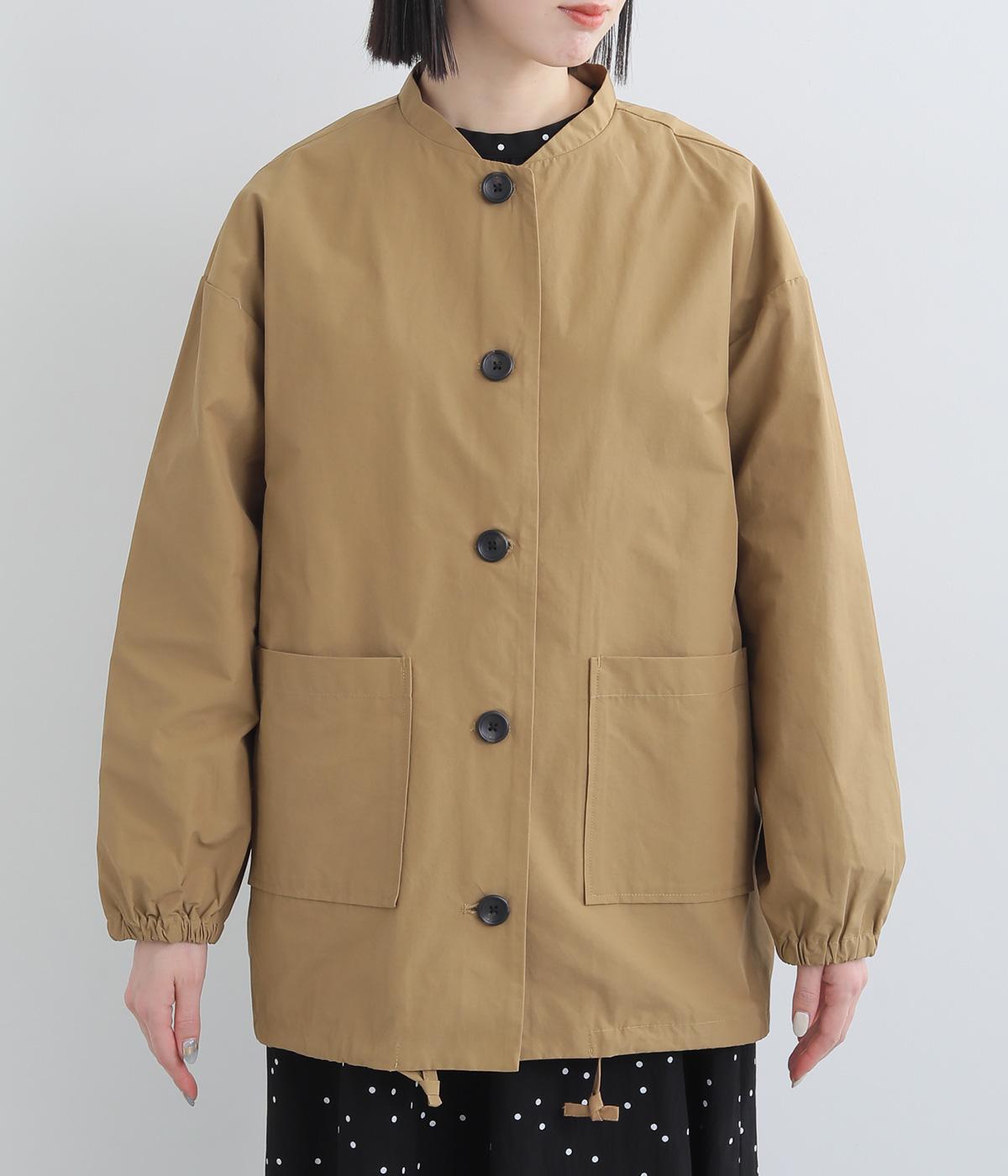 シンプルなデザインの薄手ジャケット。前ボタン仕様で、両サイドに便利なポケットつき。袖口にはゴムを入れて手首にほどよくフィットします。裾のドロスト紐を絞れば、シルエットをコンパクトに見せることもできます。