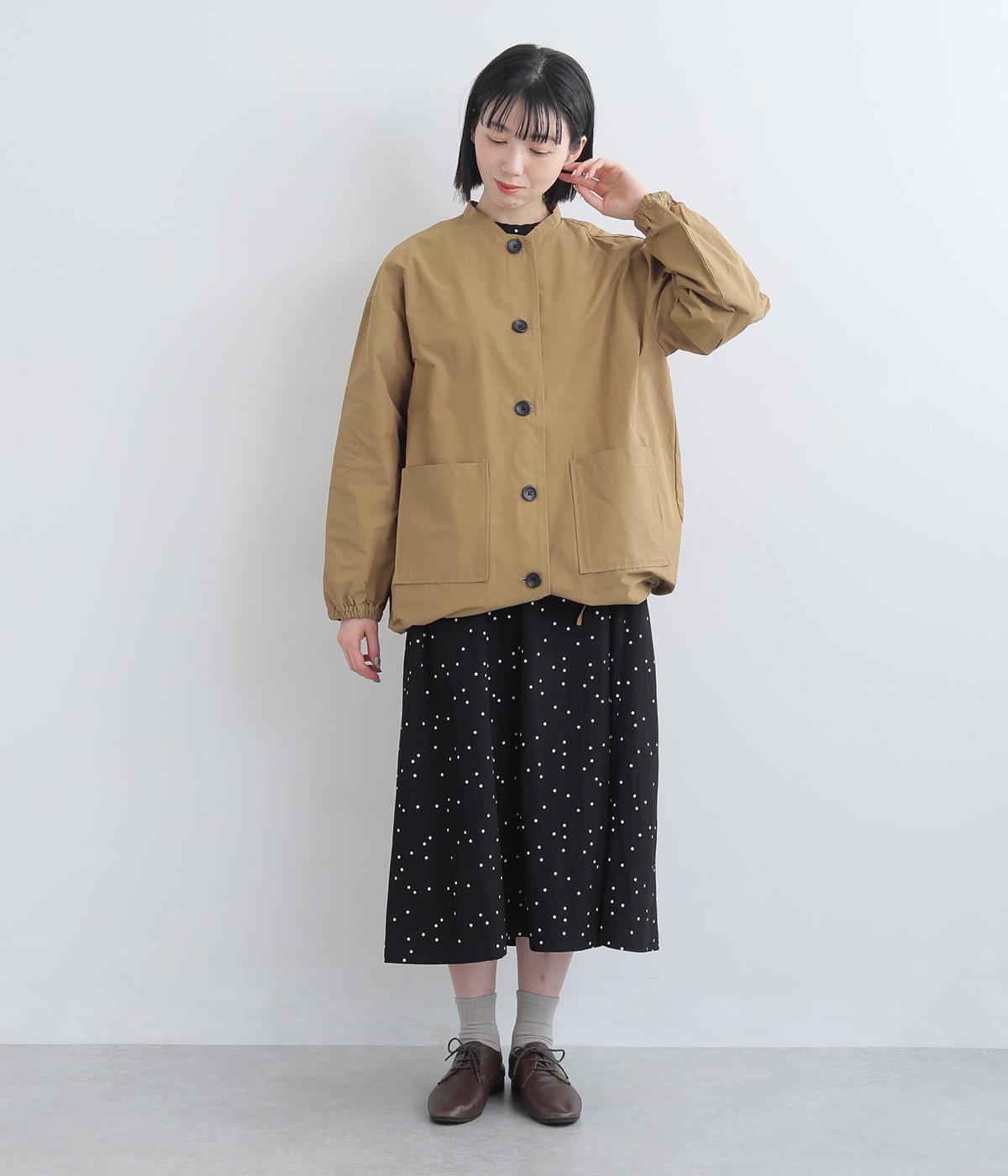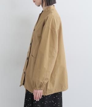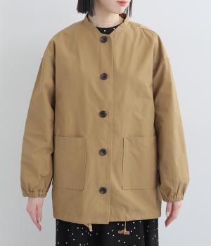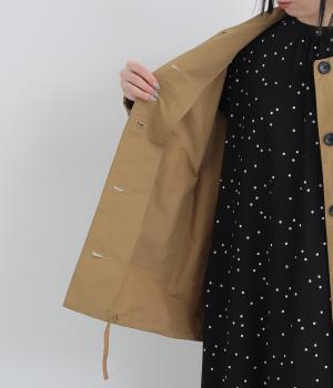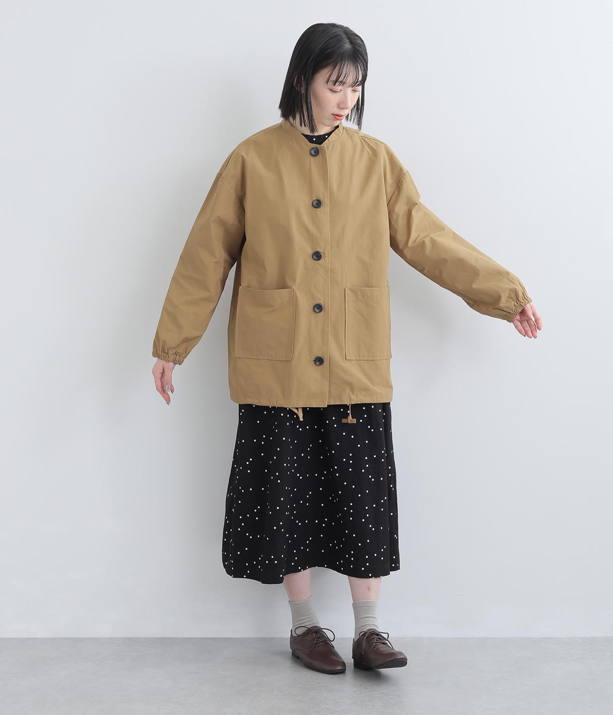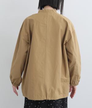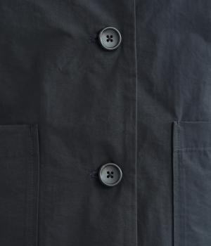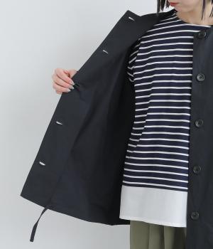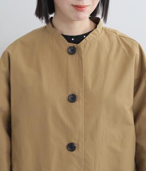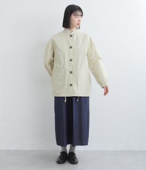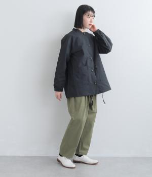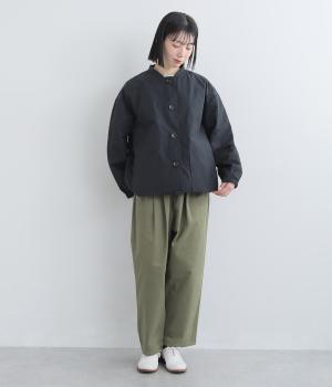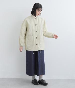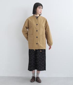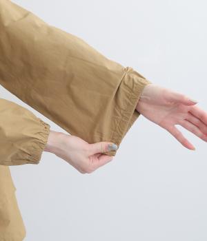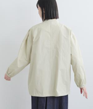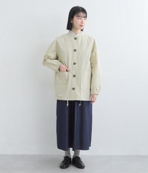 軽くて薄いコットンナイロン素材を使用しています。さらりとした手ざわりで、季節を問わず着まわせます。ほどよいハリ感がシルエットをきれいに見せてくれます。