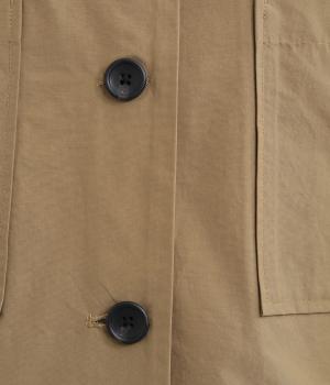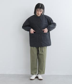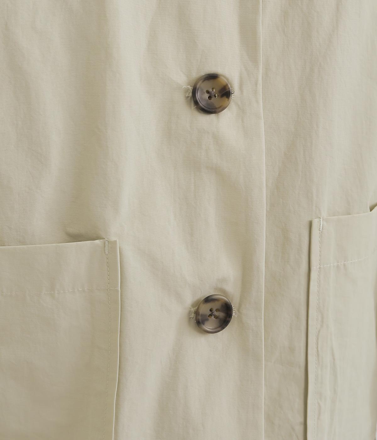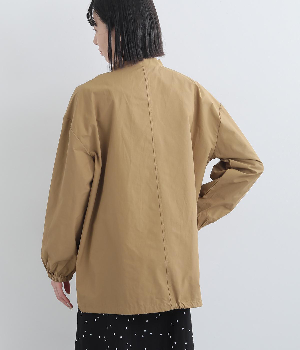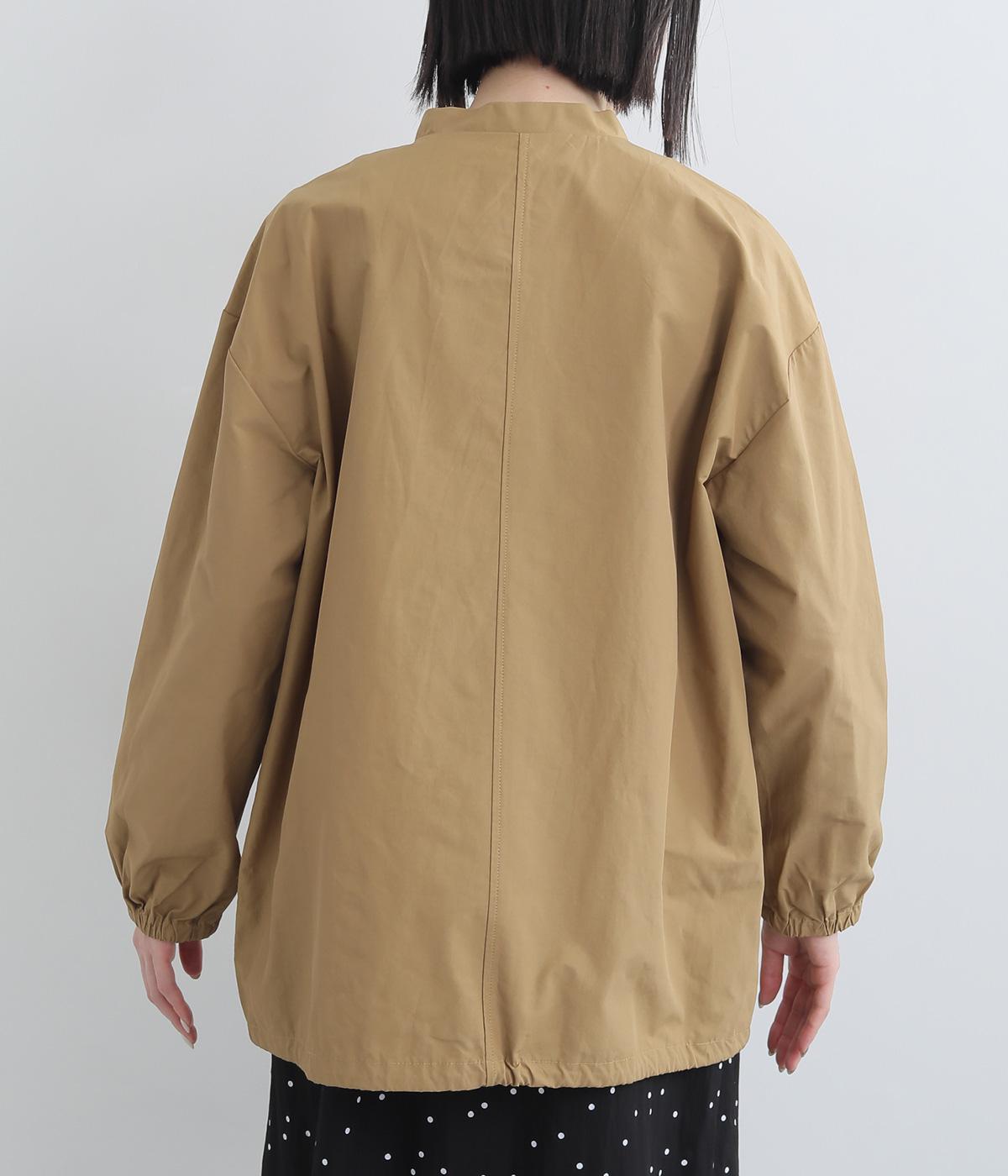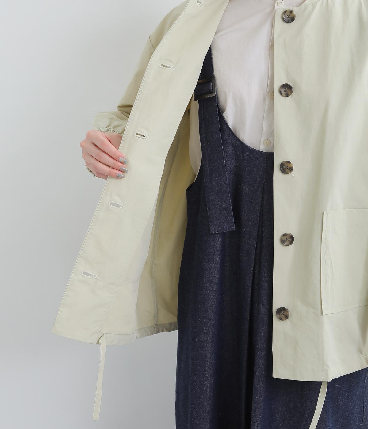 軽くて薄いコットンナイロン素材を使用しています。さらりとした手ざわりで、季節を問わず着まわせます。ほどよいハリ感がシルエットをきれいに見せてくれます。