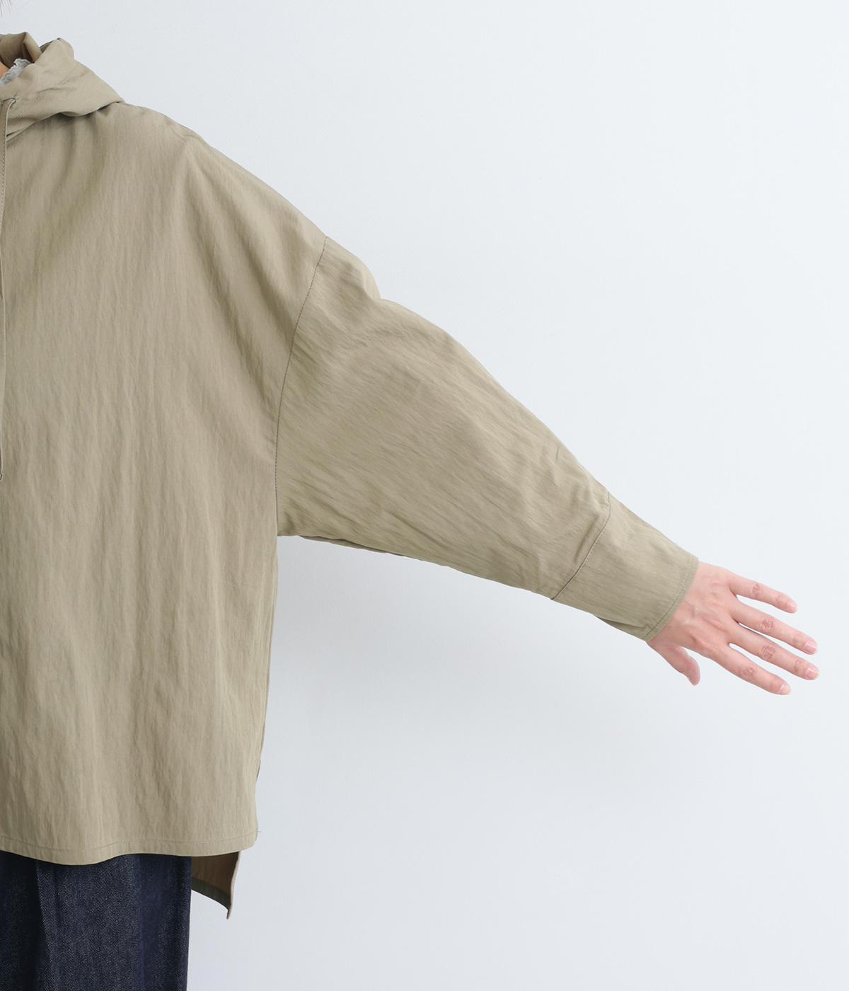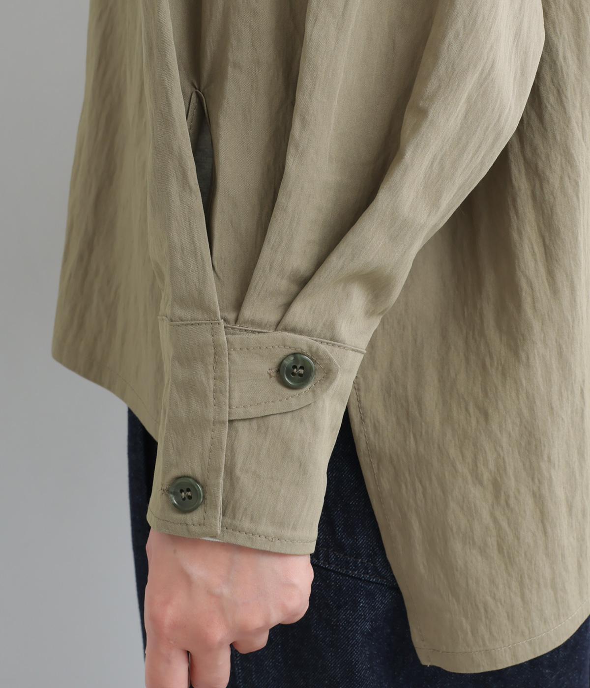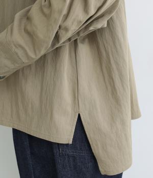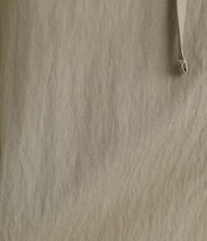 レーヨンのなめらかな光沢感とナイロンのタフさを併せ持った薄めの混紡生地を採用。ウォッシュ加工による風合いとナチュラルなシボ感が独特のこなれ感を生み出します。