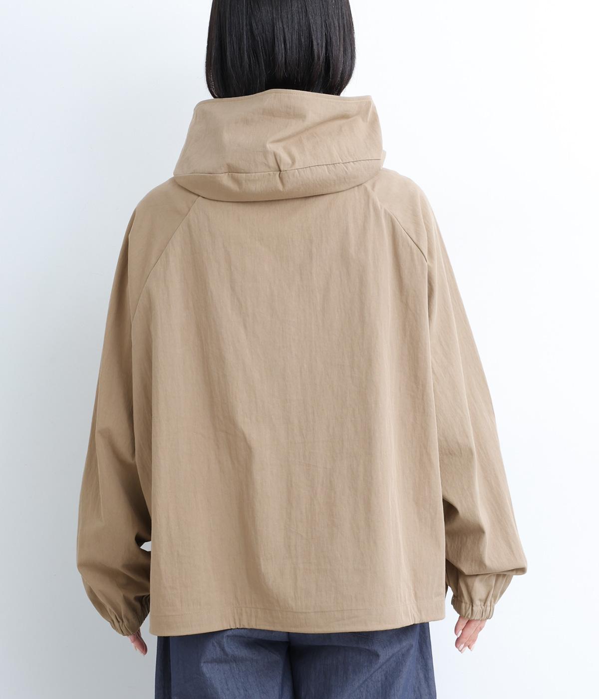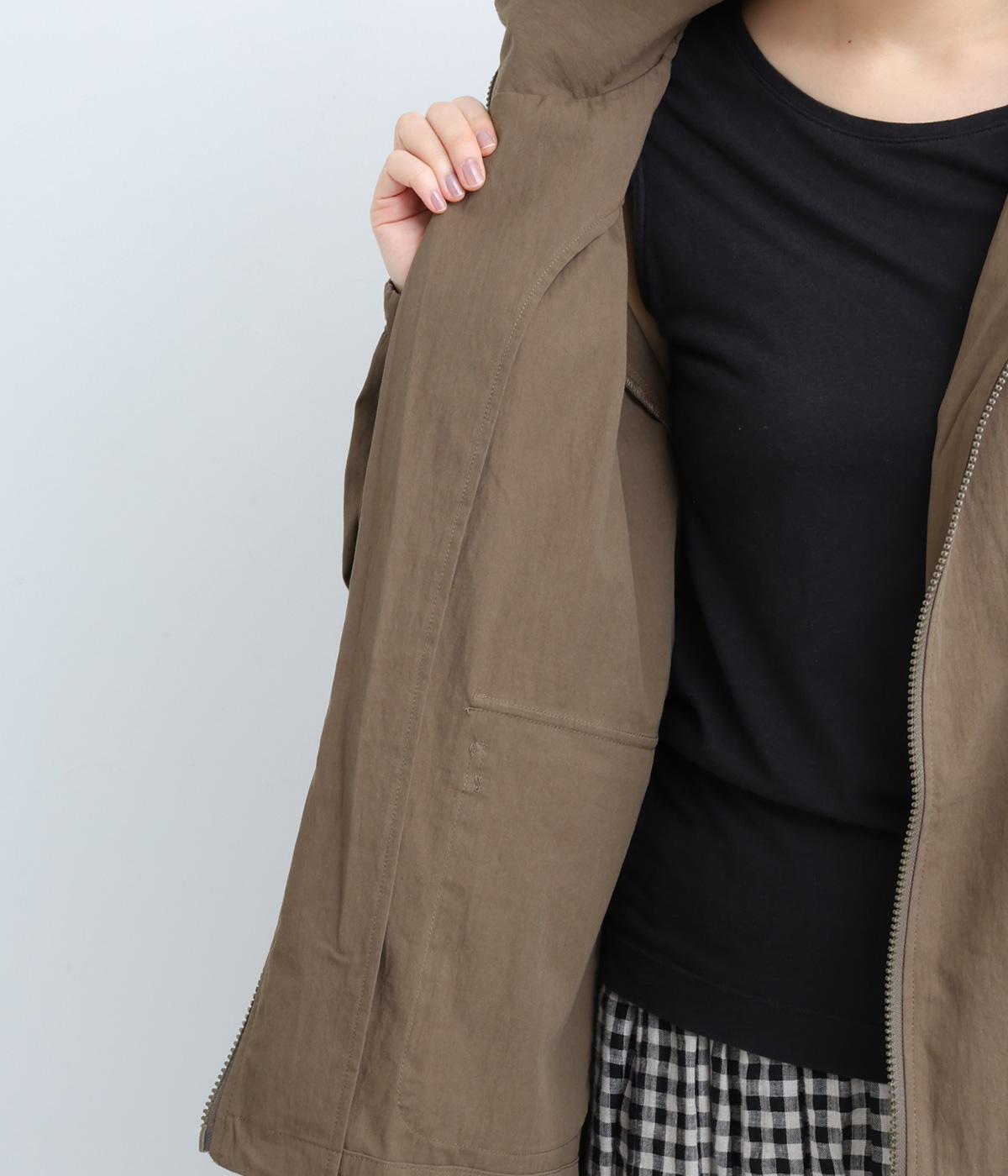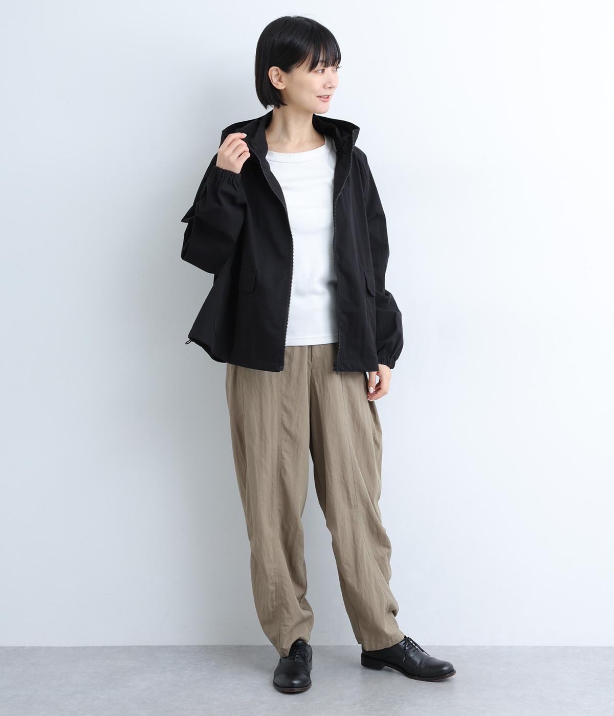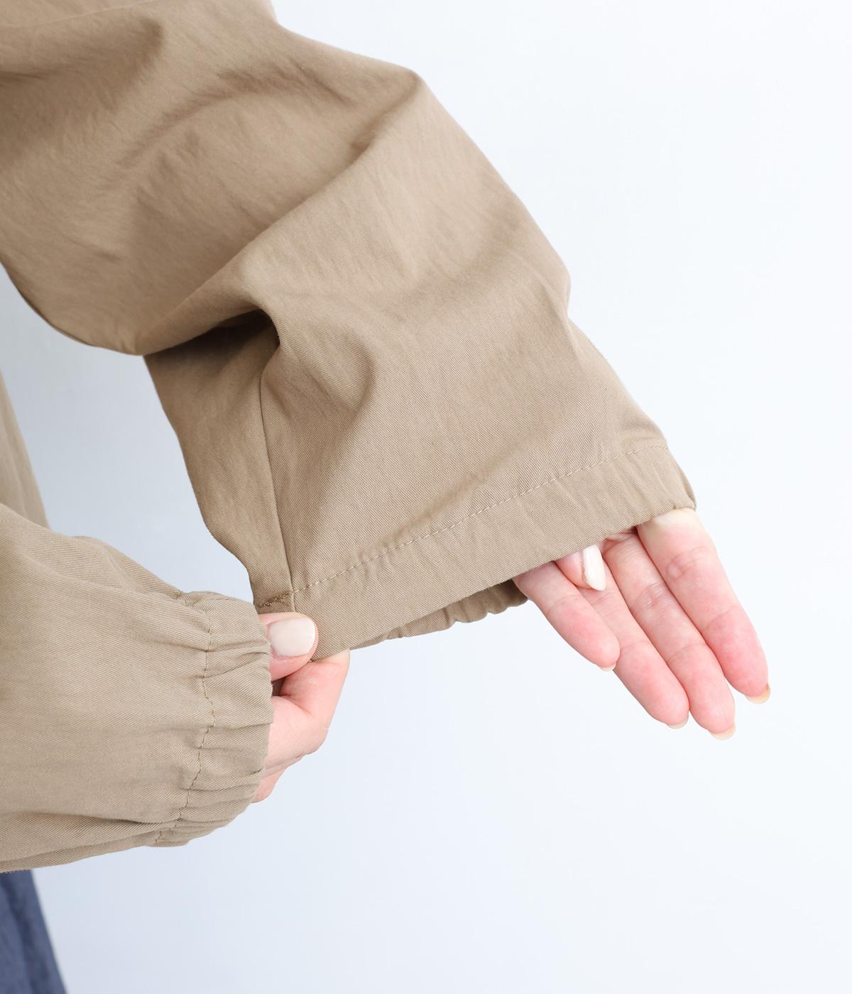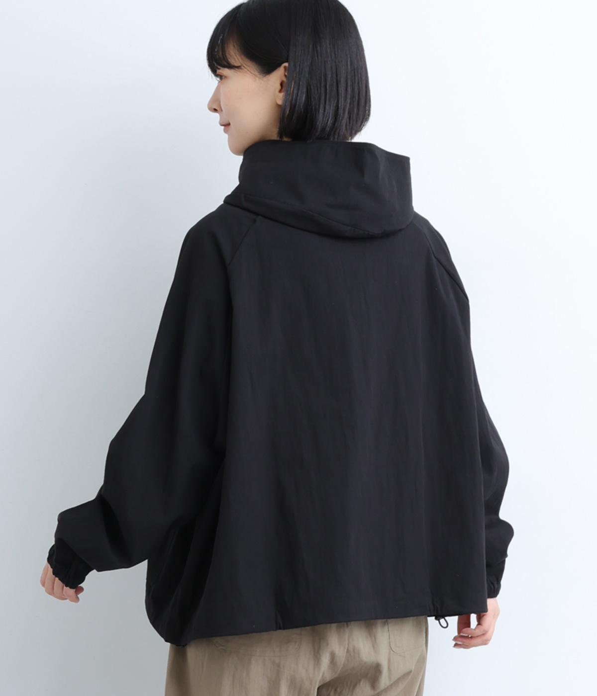 フード風のボリューム感やダブルでついた襟が特徴的。すっきり立ててスタンドネックにしたり、顔まわりにニュアンスをもたらしてくれます。裾はアジャスターコードでシルエットのアレンジが可能。袖口のゴムがすきま風を防ぎ、たくし上げもイージー。