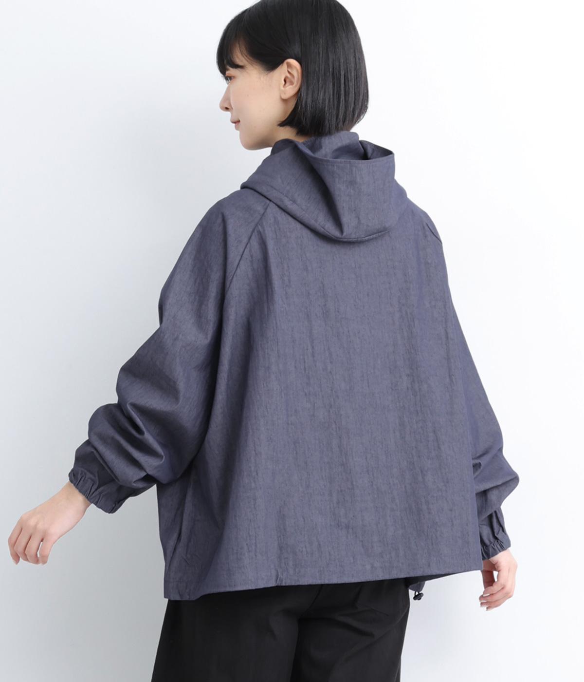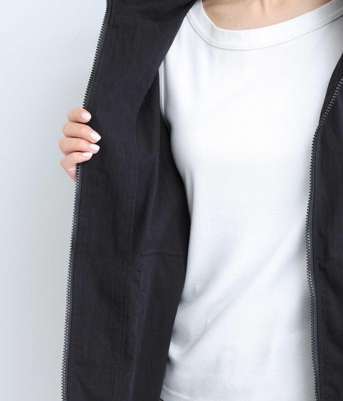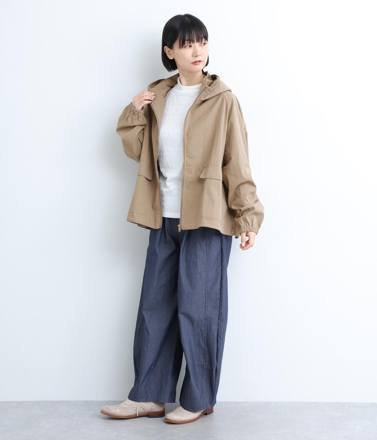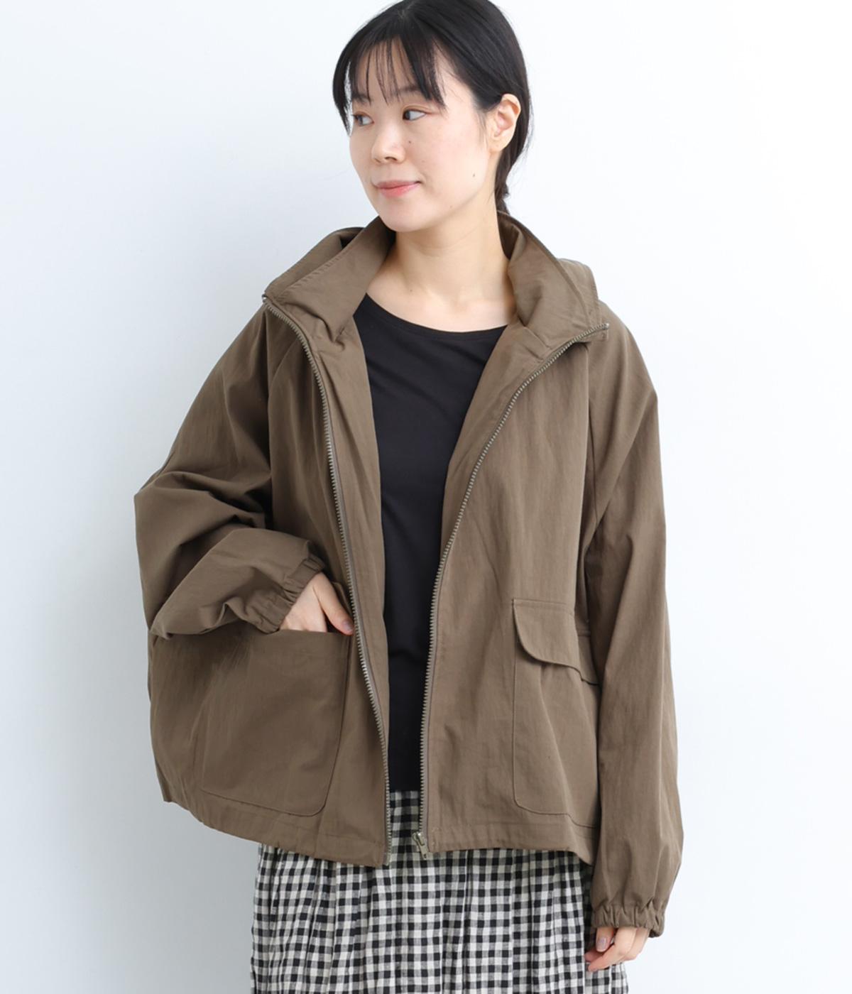 フード風のボリューム感やダブルでついた襟が特徴的。すっきり立ててスタンドネックにしたり、顔まわりにニュアンスをもたらしてくれます。裾はアジャスターコードでシルエットのアレンジが可能。袖口のゴムがすきま風を防ぎ、たくし上げもイージー。