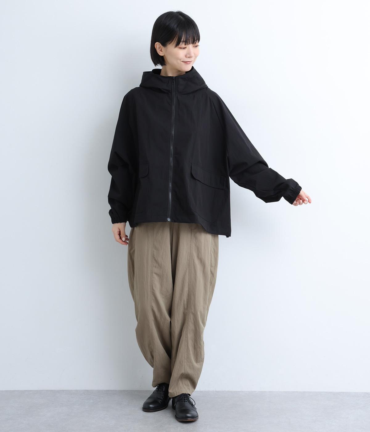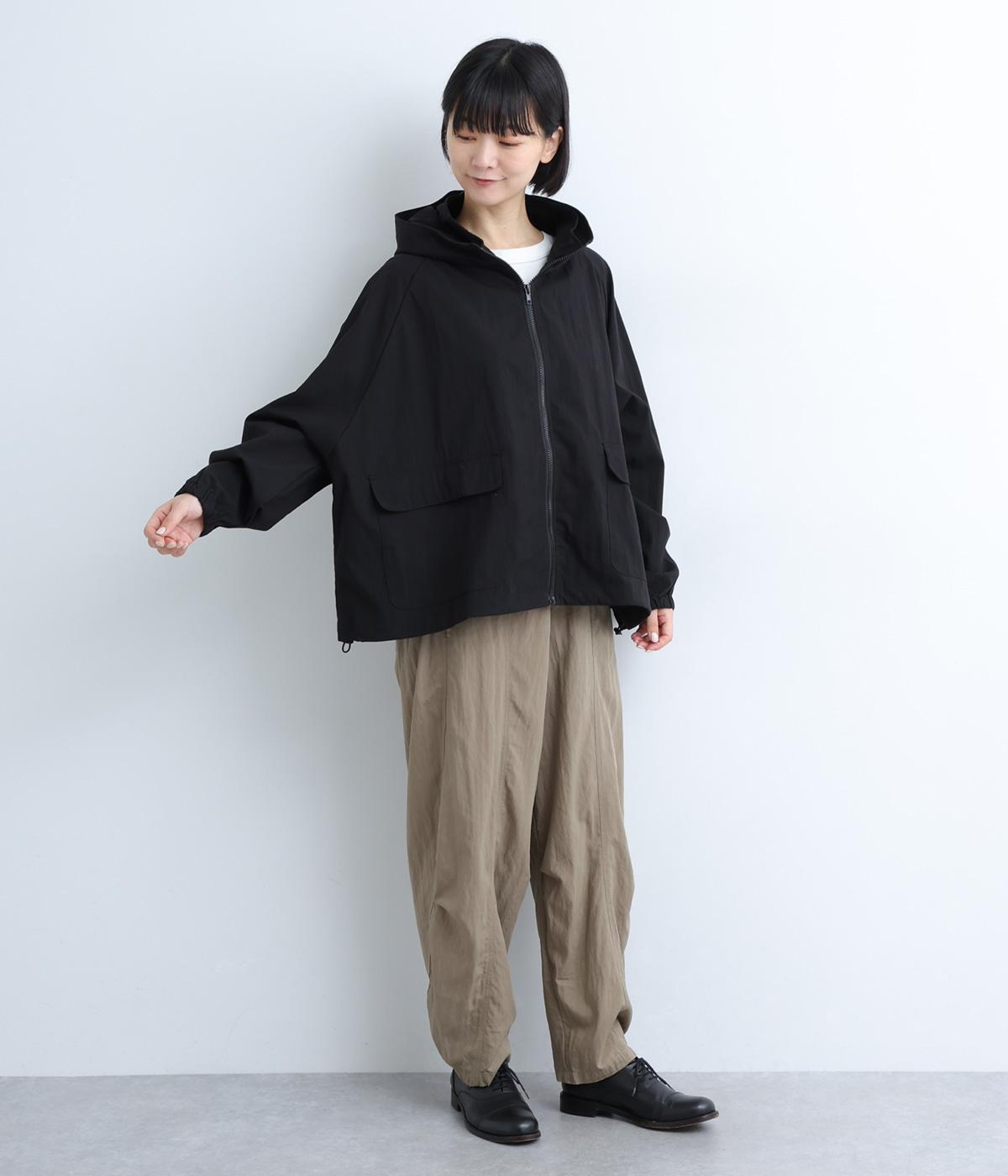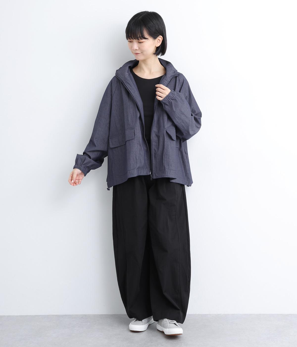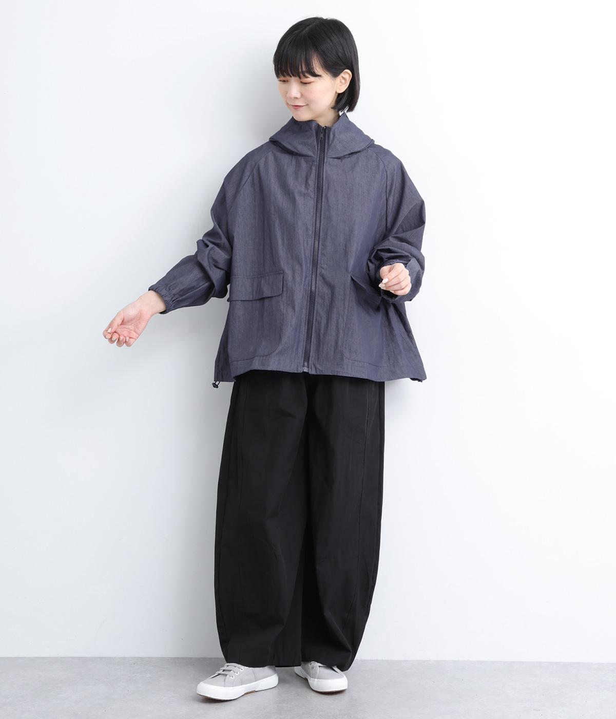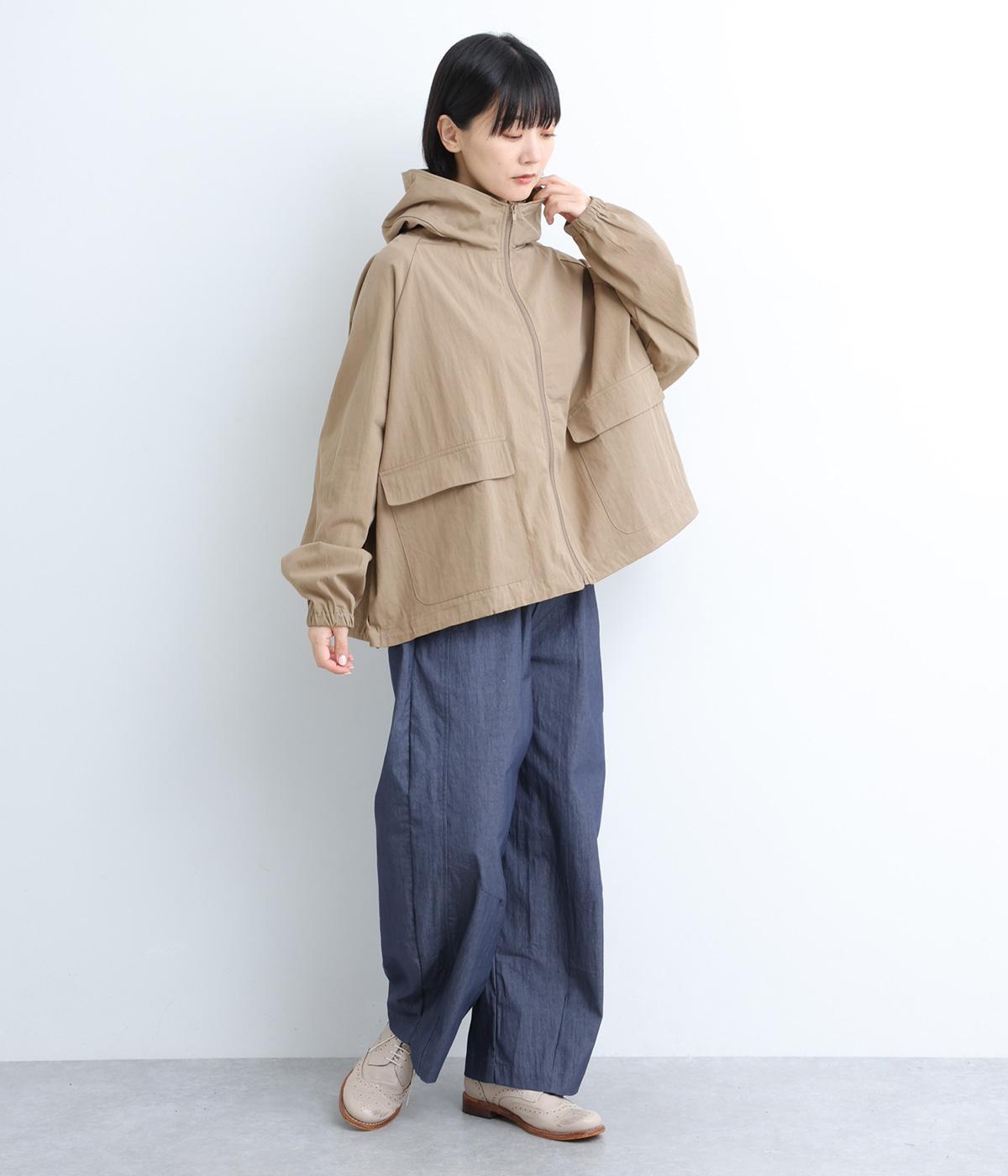 フード風のボリューム感やダブルでついた襟が特徴的。すっきり立ててスタンドネックにしたり、顔まわりにニュアンスをもたらしてくれます。裾はアジャスターコードでシルエットのアレンジが可能。袖口のゴムがすきま風を防ぎ、たくし上げもイージー。